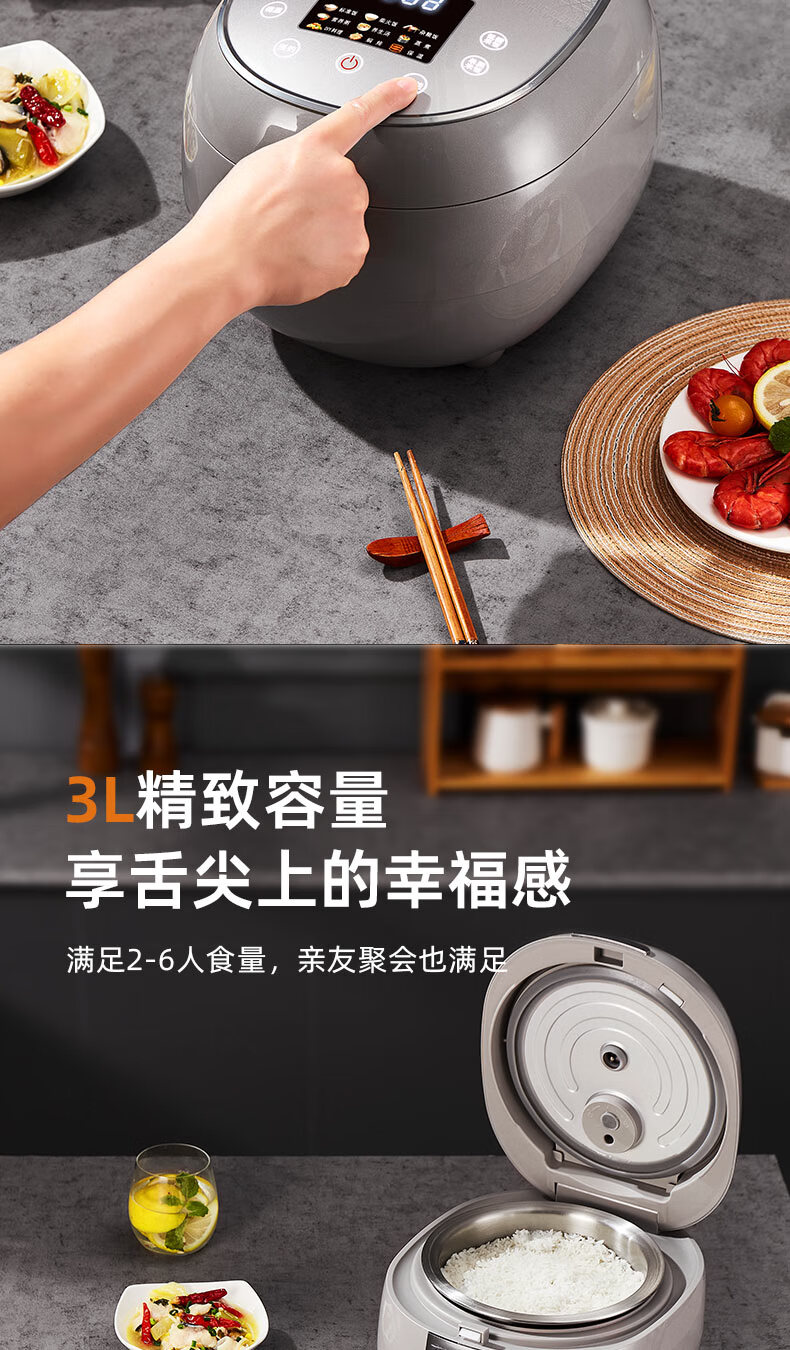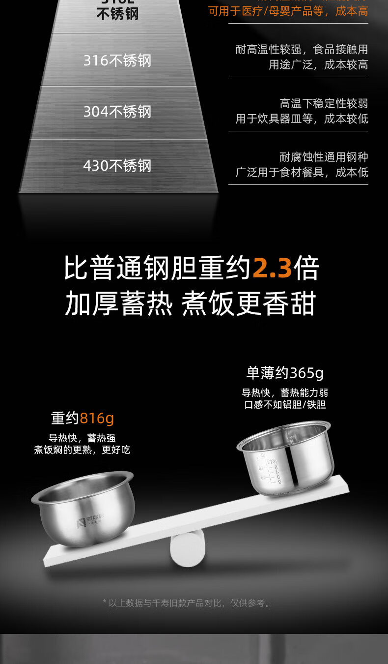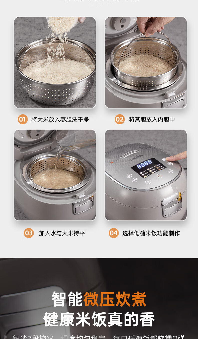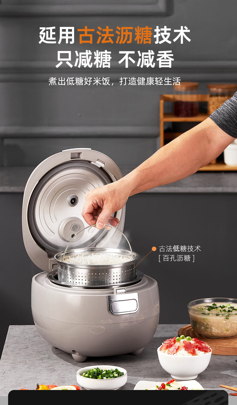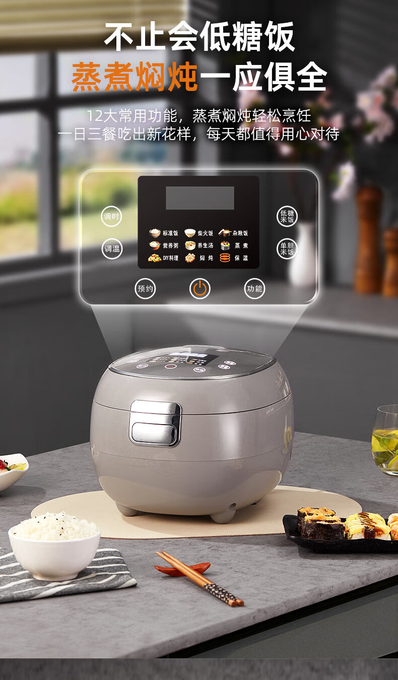 千寿QUASH0 低糖电饭煲 0涂层 柴火饭煲316不锈钢球釜内胆 1-2-3-4个人家用3L沥米饭锅控降减糖电饭锅 红色 升级304不锈钢内盖 3L 1-4人适用 【316L球釜内胆】