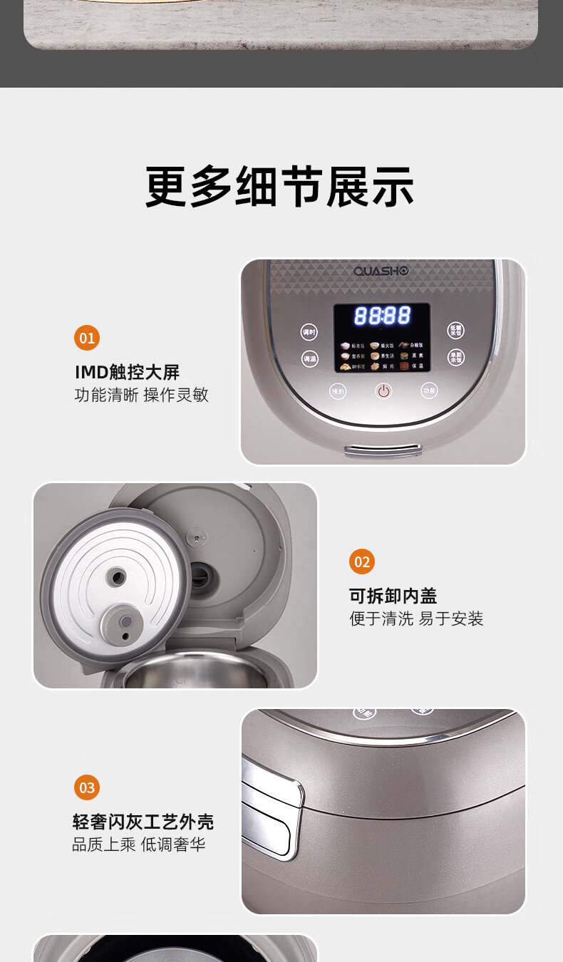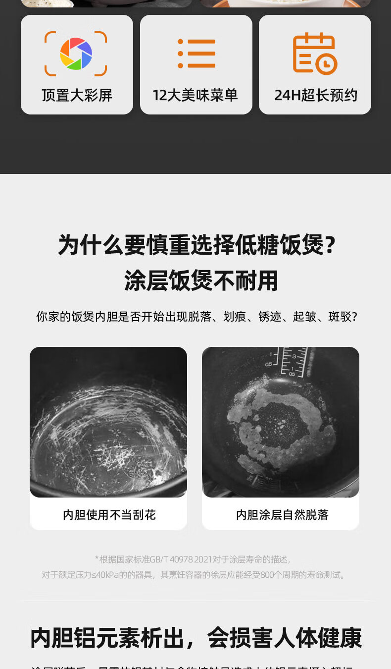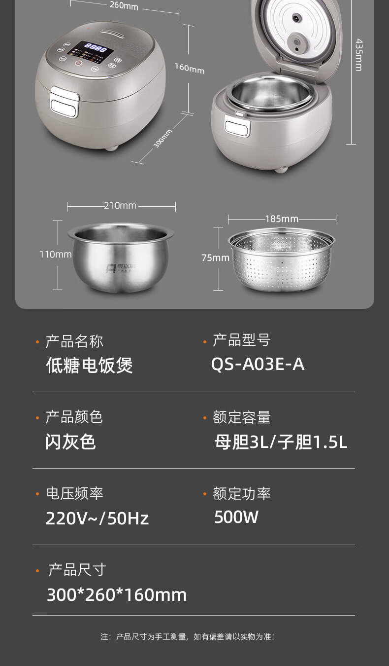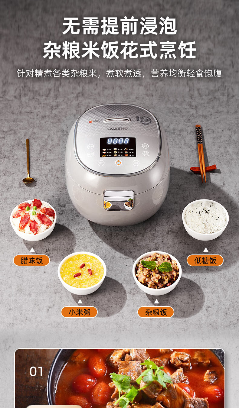 千寿QUASH0 低糖电饭煲 0涂层 柴火饭煲316不锈钢球釜内胆 1-2-3-4个人家用3L沥米饭锅控降减糖电饭锅 红色 升级304不锈钢内盖 3L 1-4人适用 【316L球釜内胆】