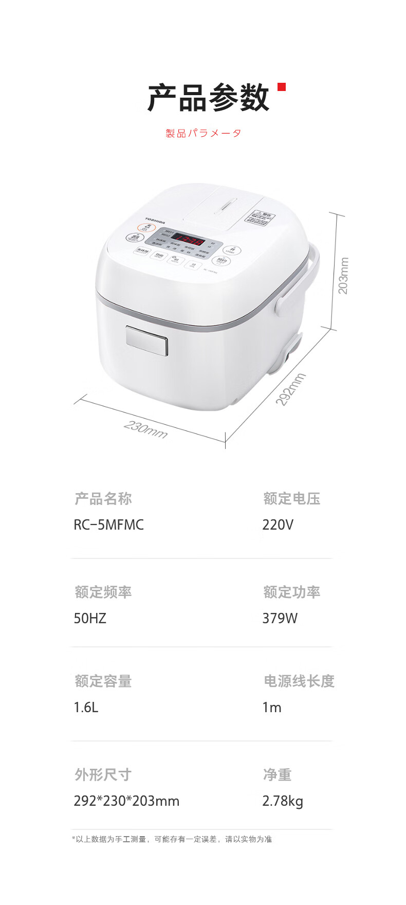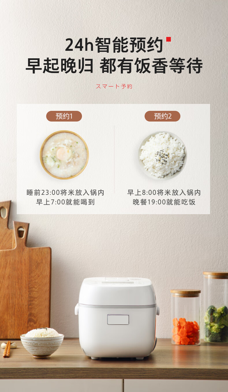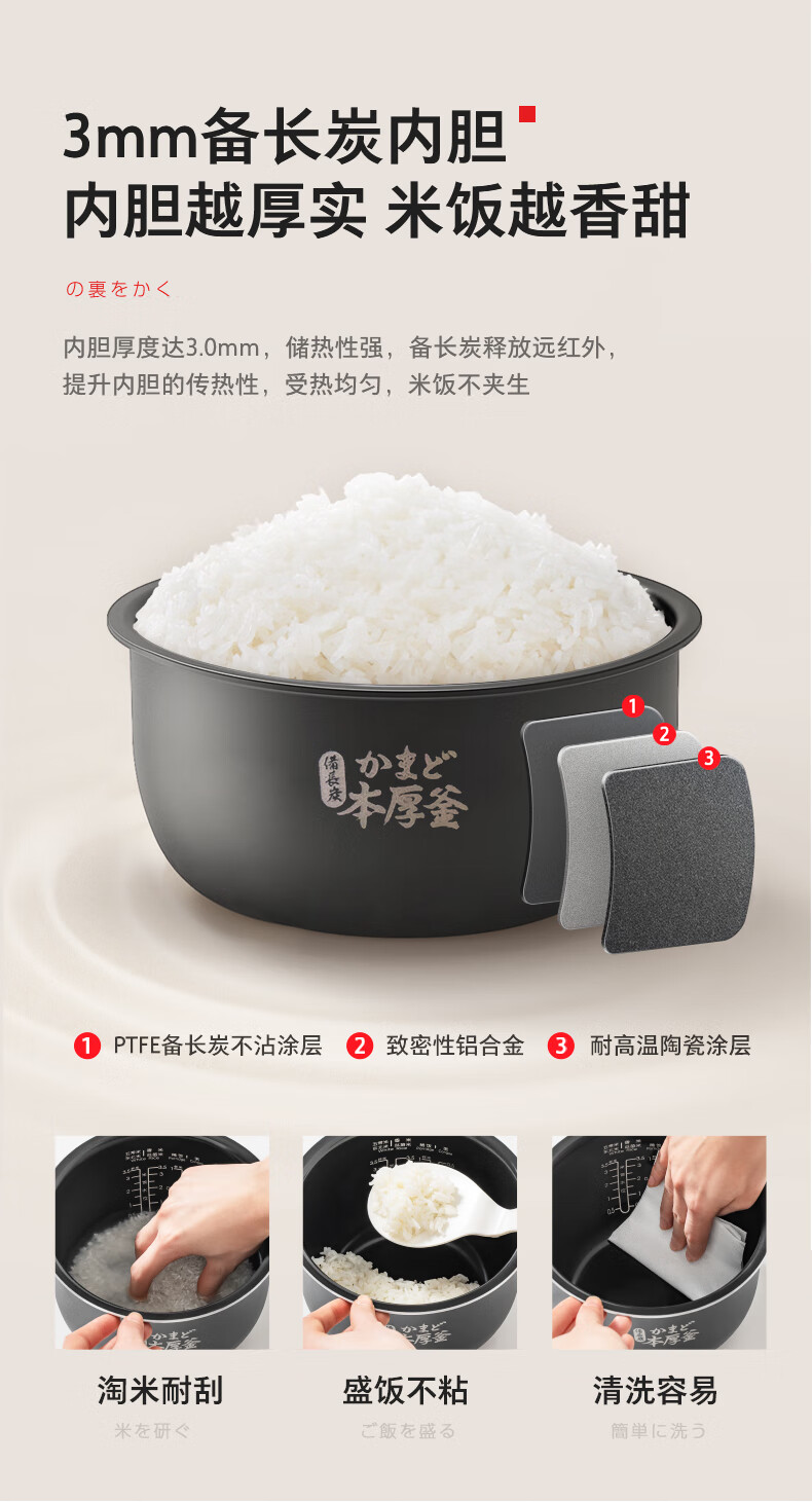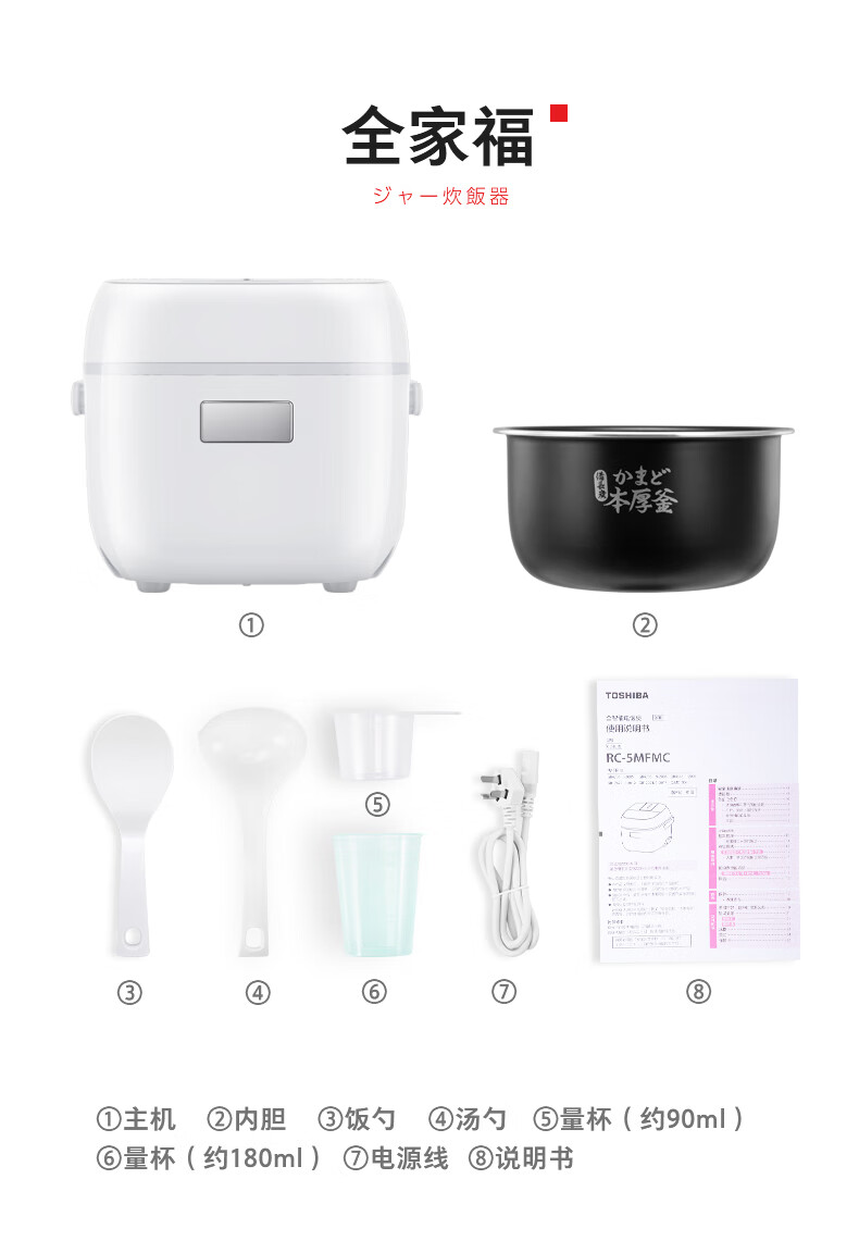 东芝(TOSHIBA)电饭煲家用小型1.6L迷你备长炭本厚釜电饭锅智能预约定时宝宝粥不粘锅3mm备长炭内胆多功能煮饭锅 小小白RC-5MFMC(W) 1.6L