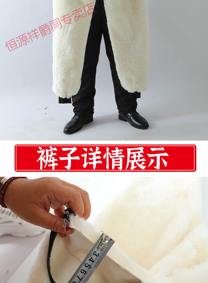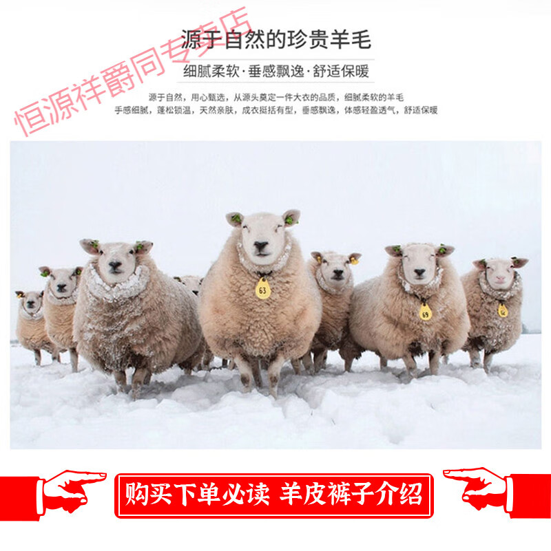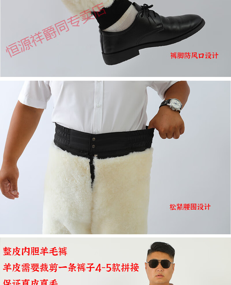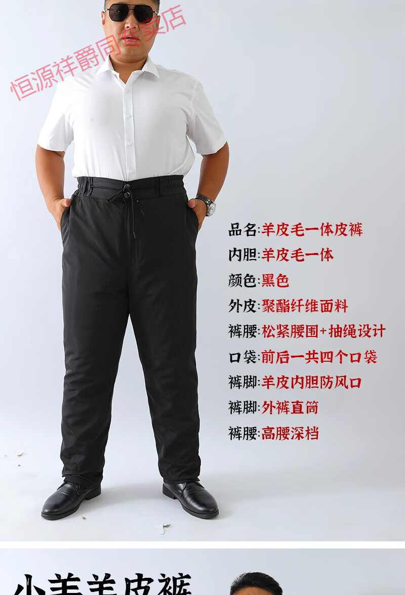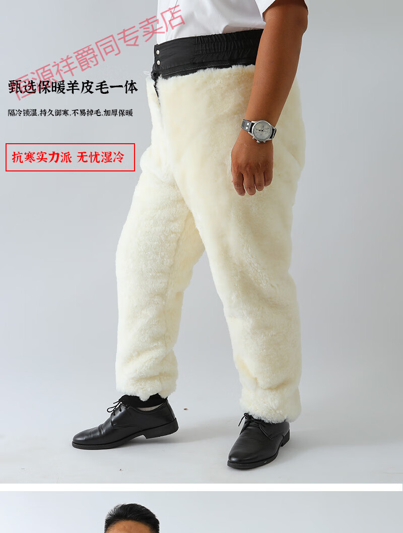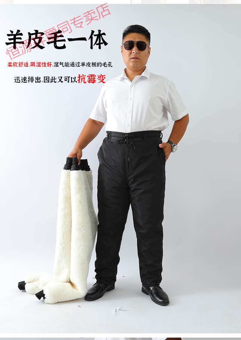 恒源祥冬季羊皮裤皮毛一体棉裤中老年男女保暖防寒高腰加厚真皮保暖皮裤 整皮款羔羊毛内胆 XL 建议130-160斤