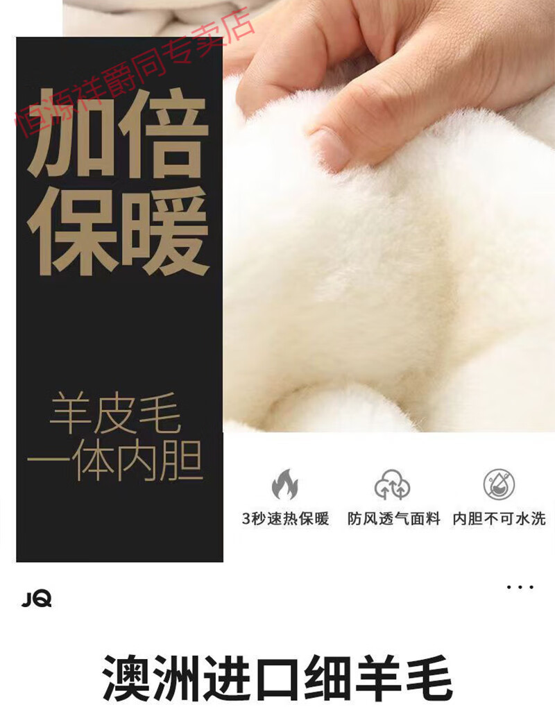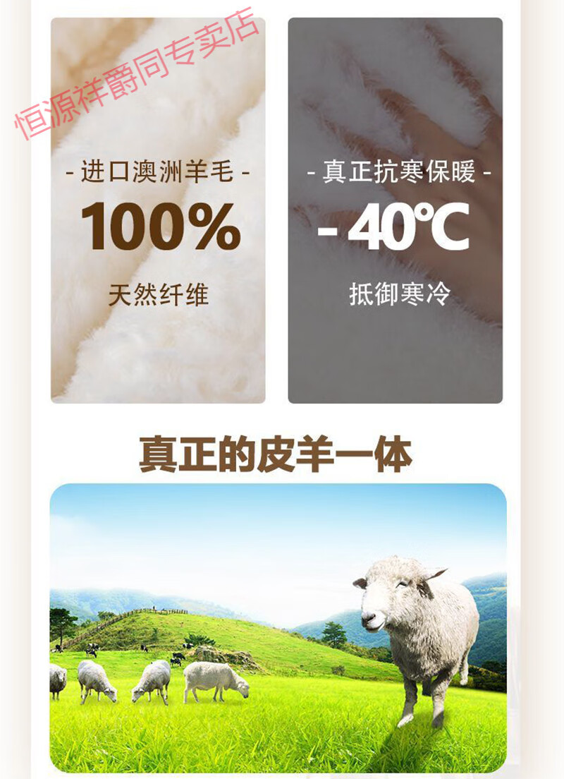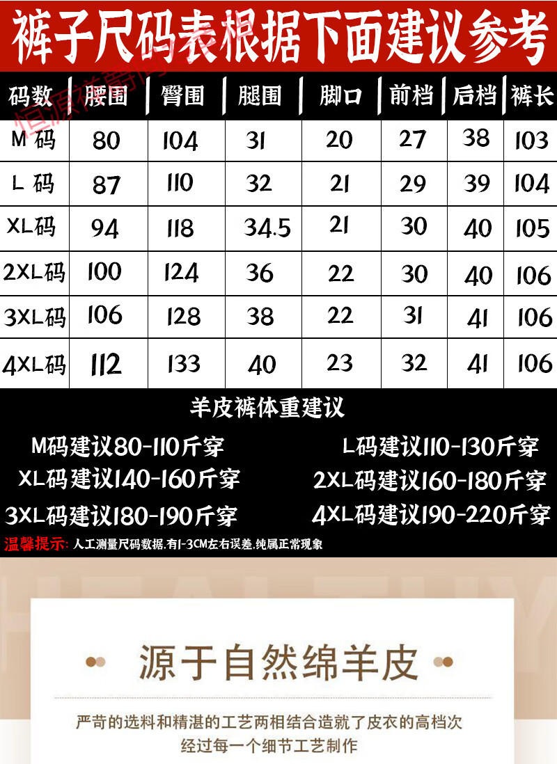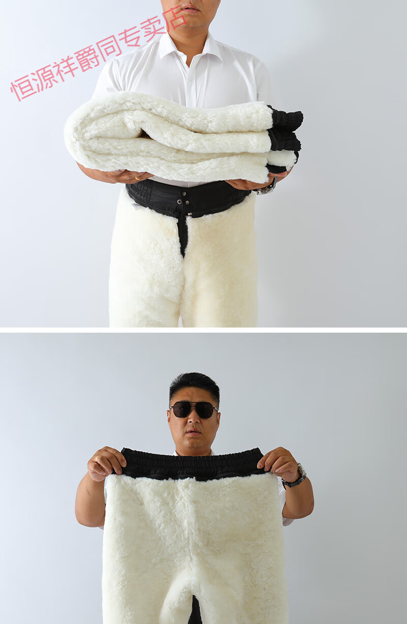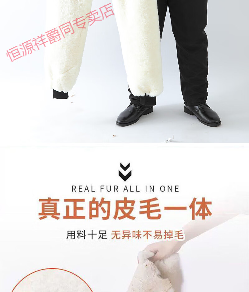 恒源祥冬季羊皮裤皮毛一体棉裤中老年男女保暖防寒高腰加厚真皮保暖皮裤 整皮款羔羊毛内胆 XL 建议130-160斤