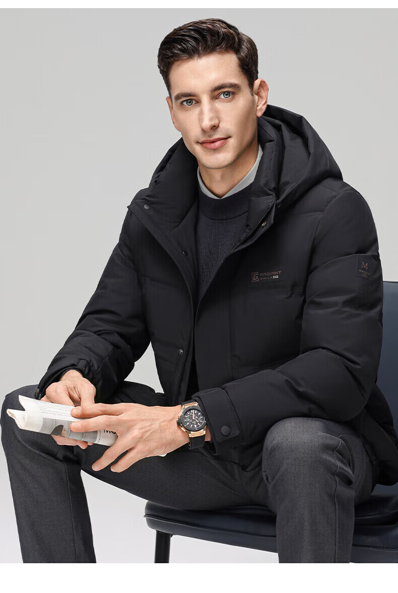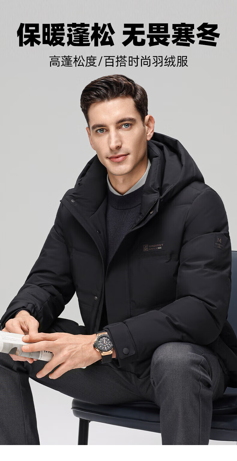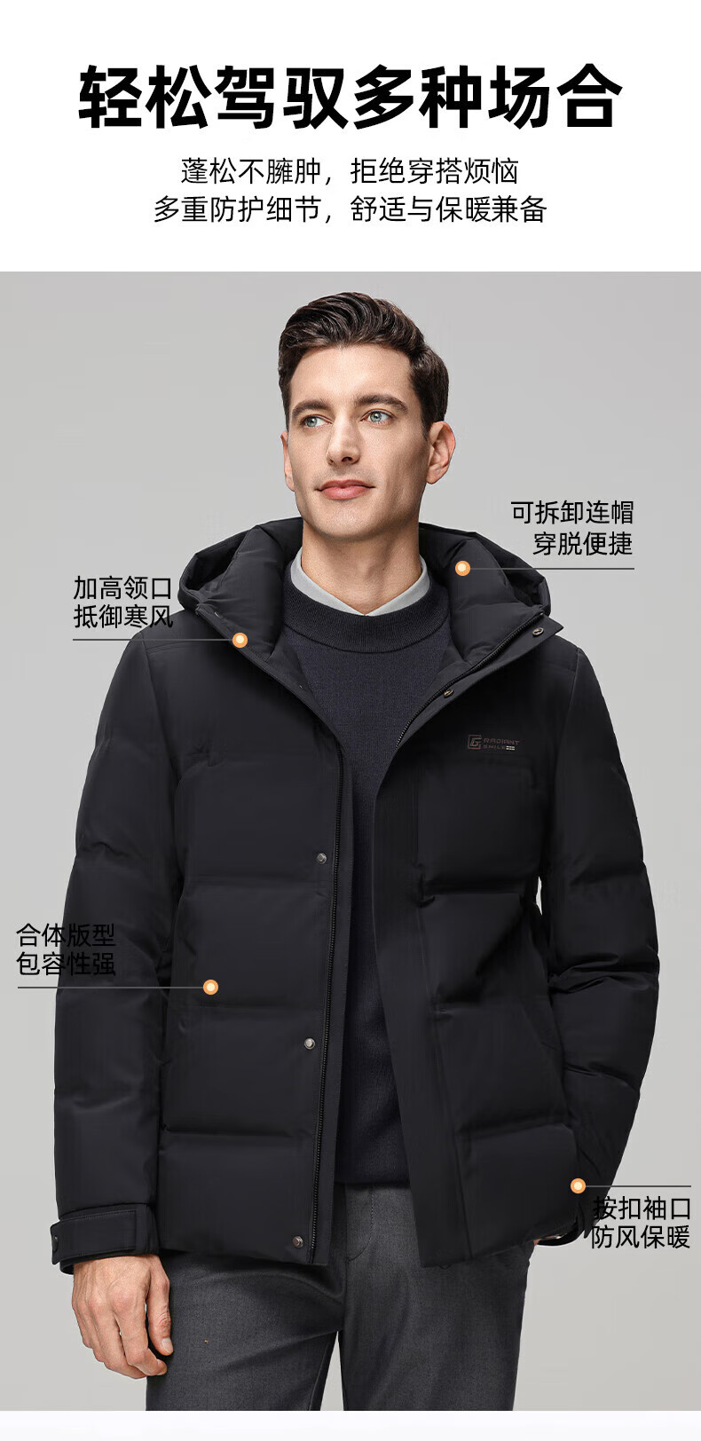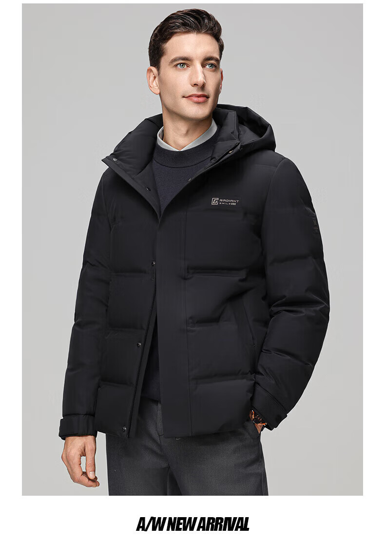 鸭鸭(YAYA)羽绒服男连帽短款厚款高蓬松保暖2025冬季新款中青年休闲百搭外套 黑色 2XL 185【建议160-180斤】