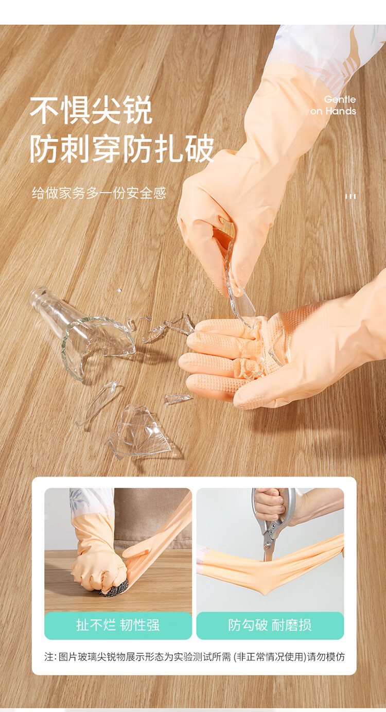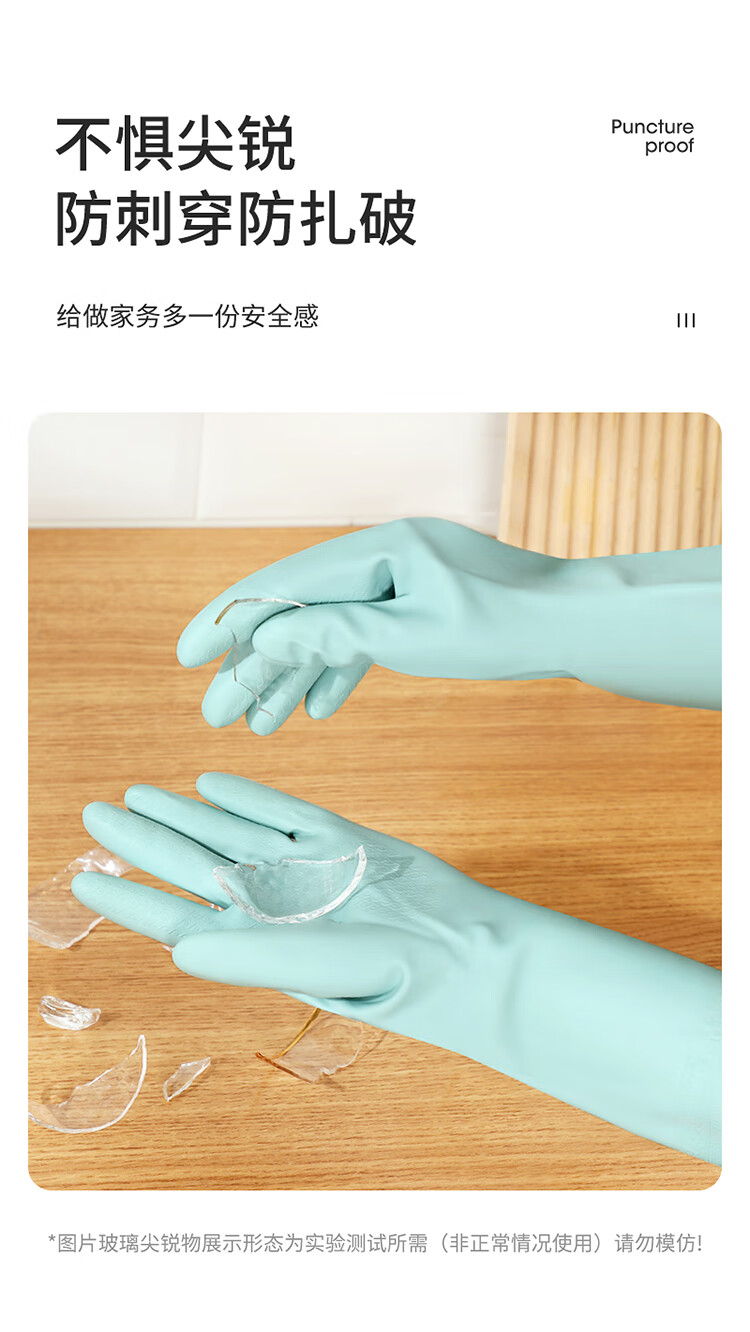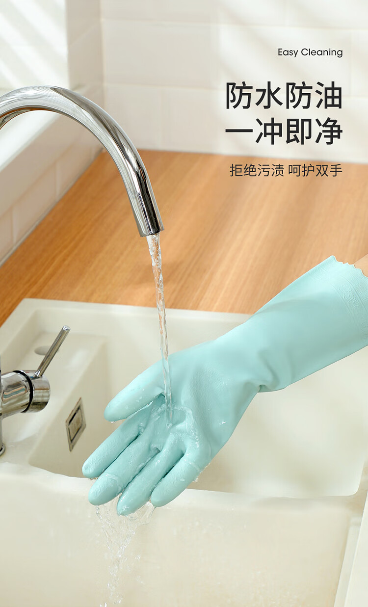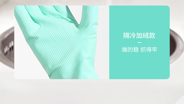 美丽雅(MARYYA)加绒手套 家用防护厚绒双层保暖洗碗洗衣服家务防水护手套男女 加长保暖型手套 颜色随机 2双 均码