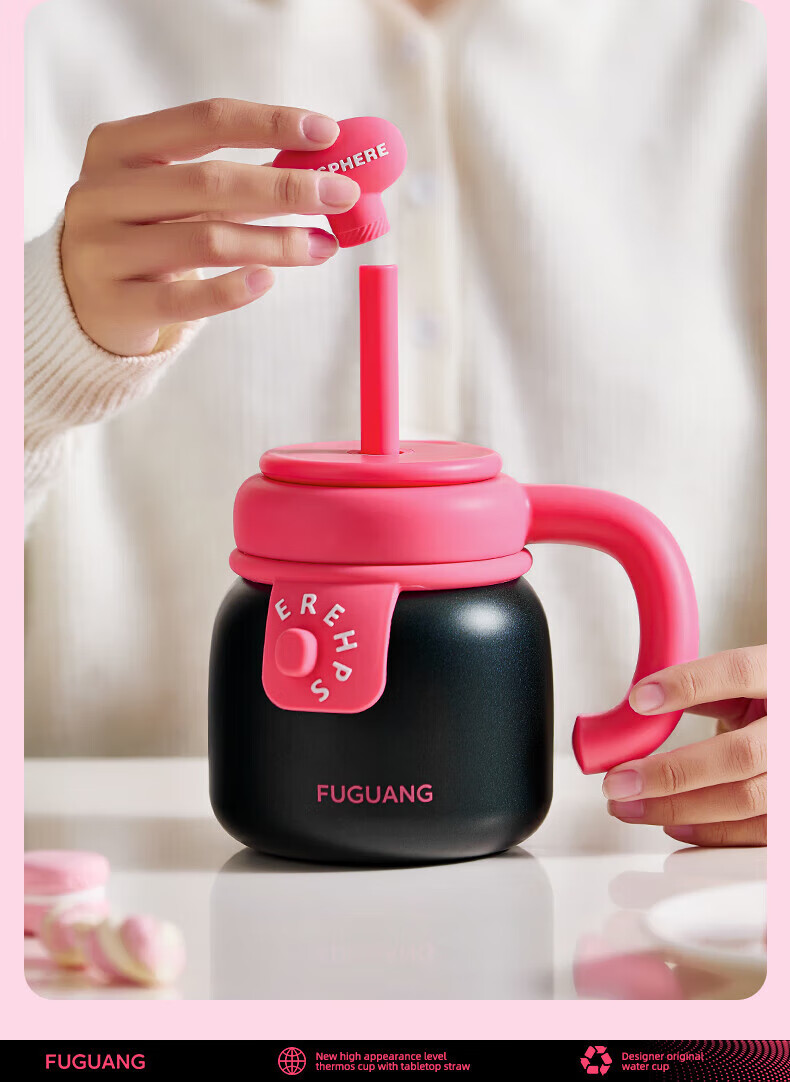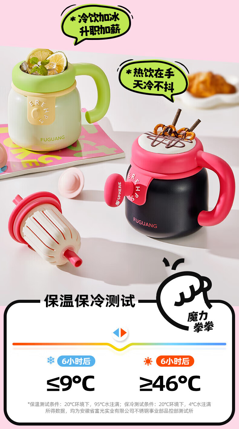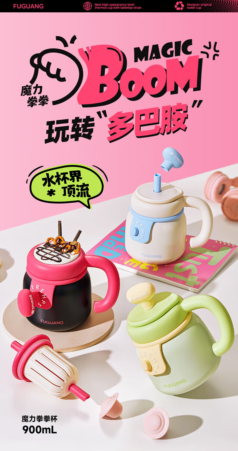 富光保温杯女生多巴胺吸管水杯高颜值大容量泡茶情人节礼物杯子咖啡杯 耶耶奶盐900ml