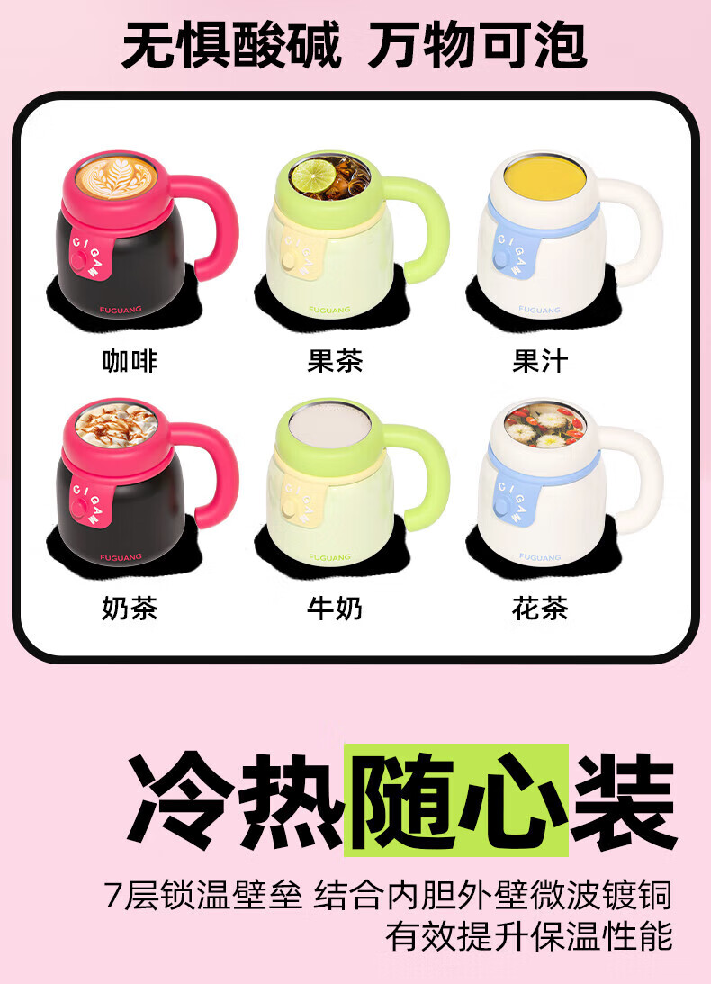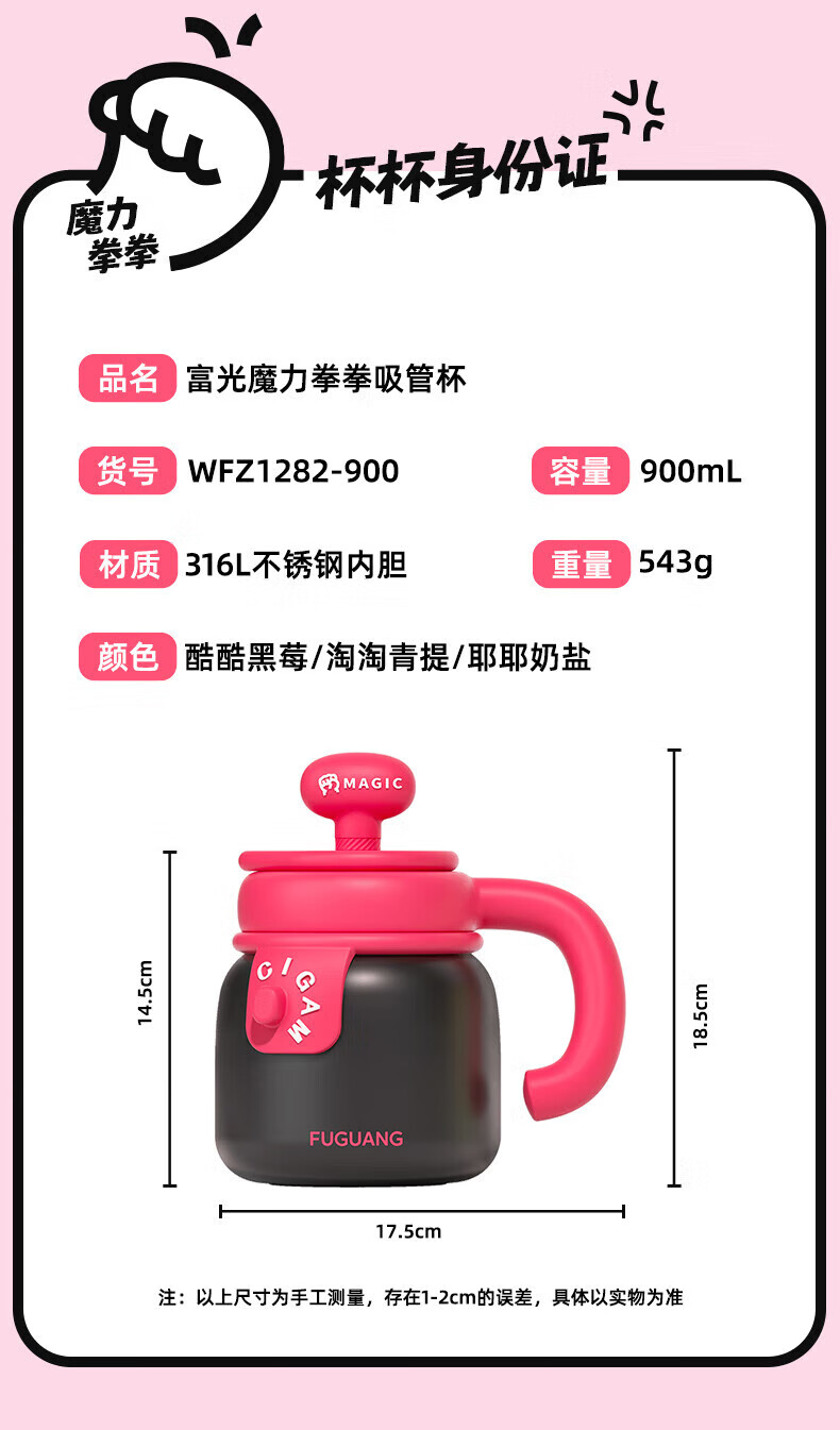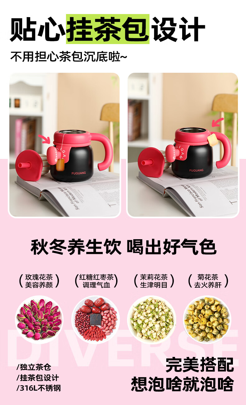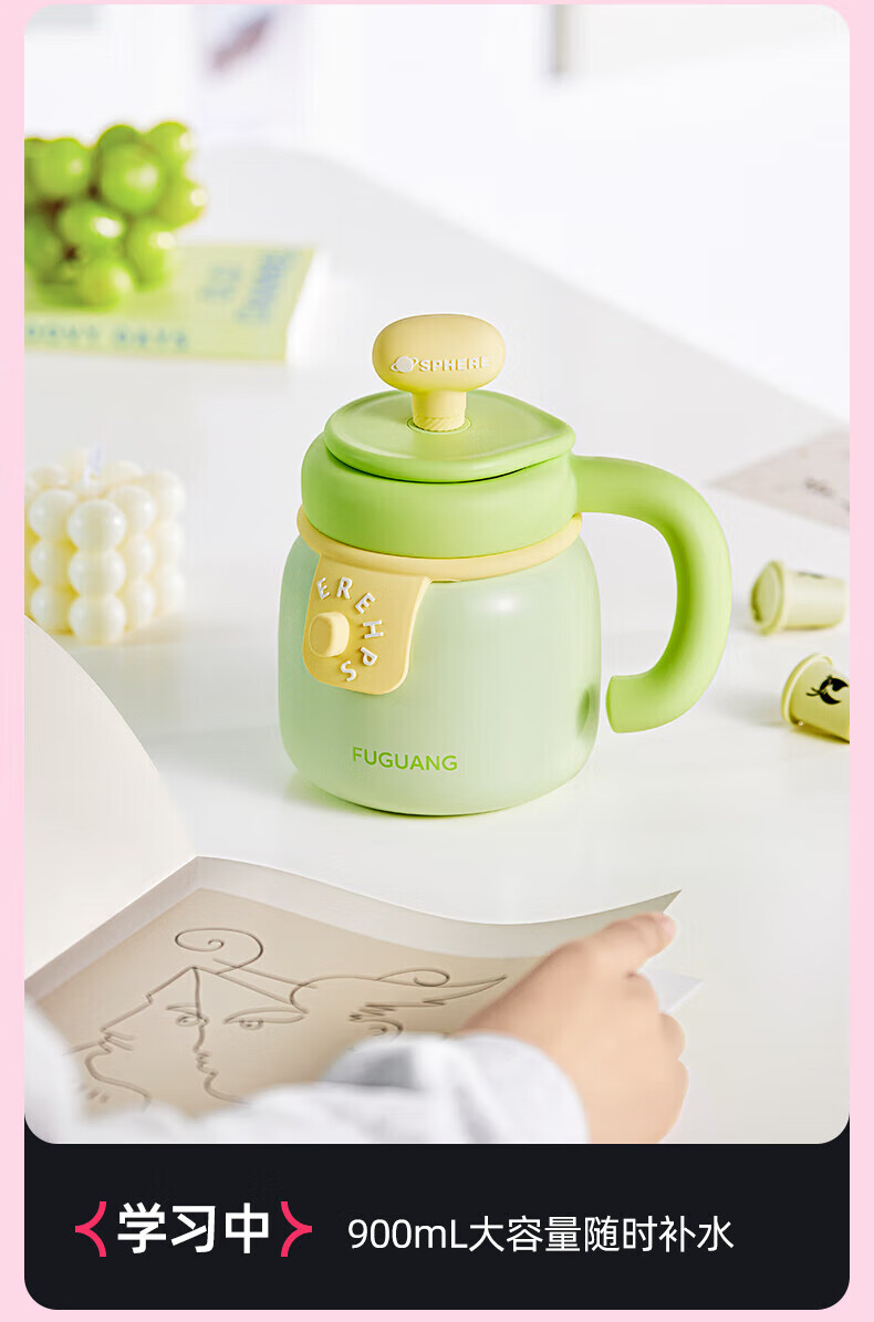 富光保温杯女生多巴胺吸管水杯高颜值大容量泡茶情人节礼物杯子咖啡杯 耶耶奶盐900ml
