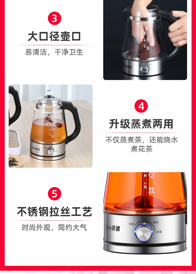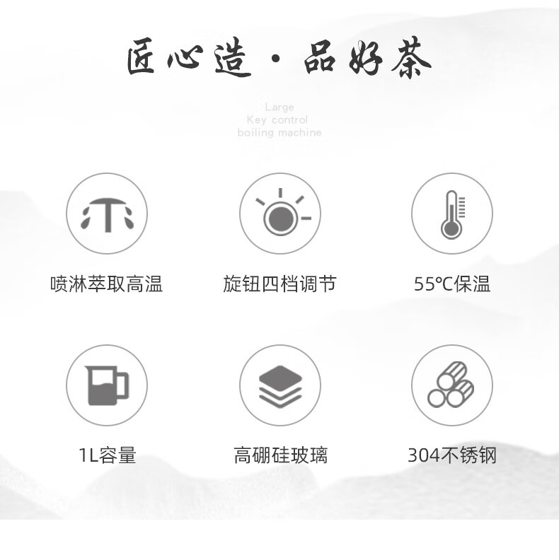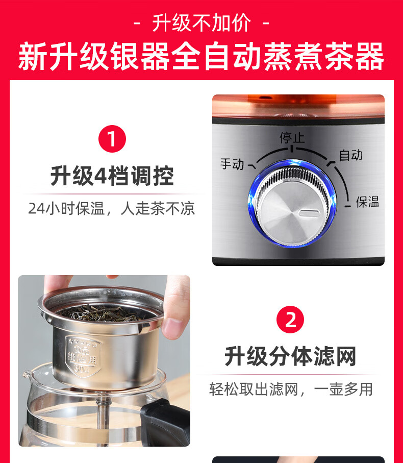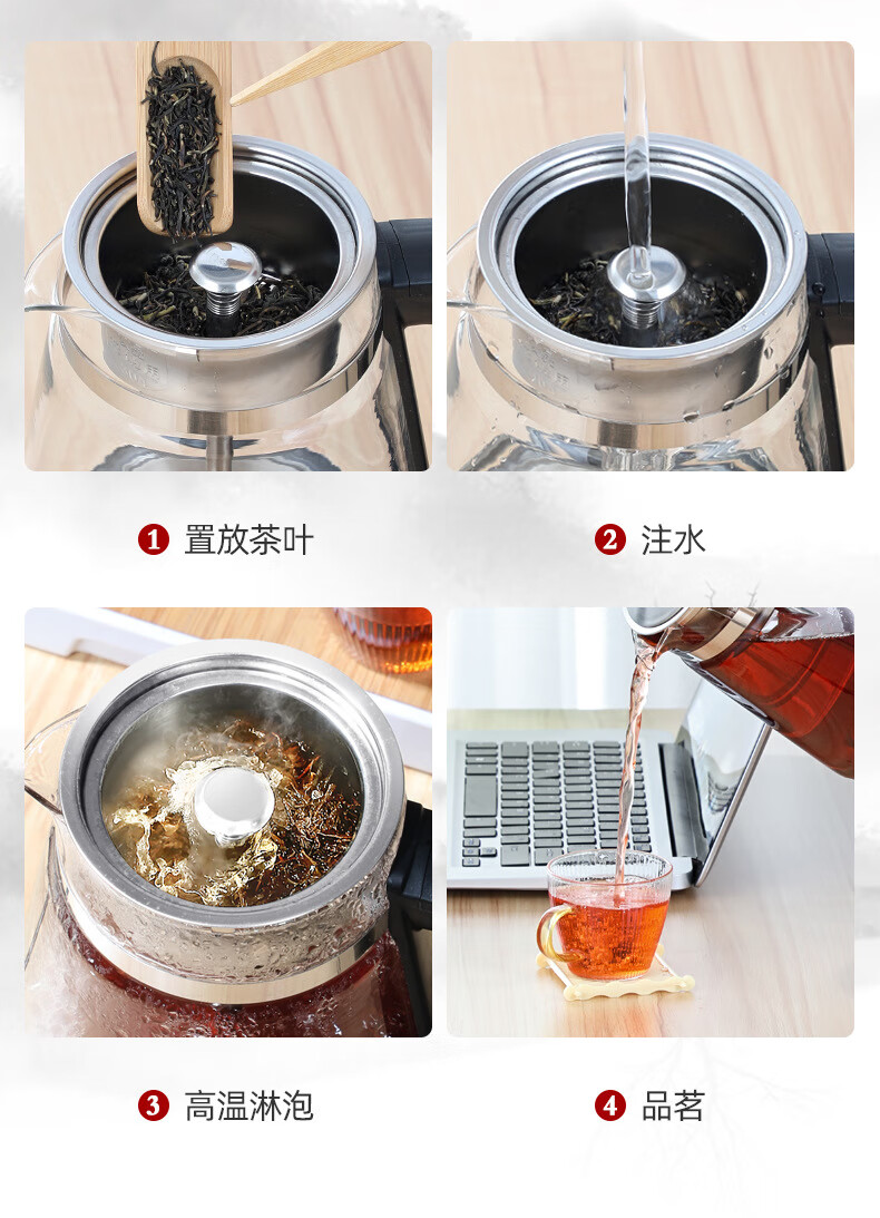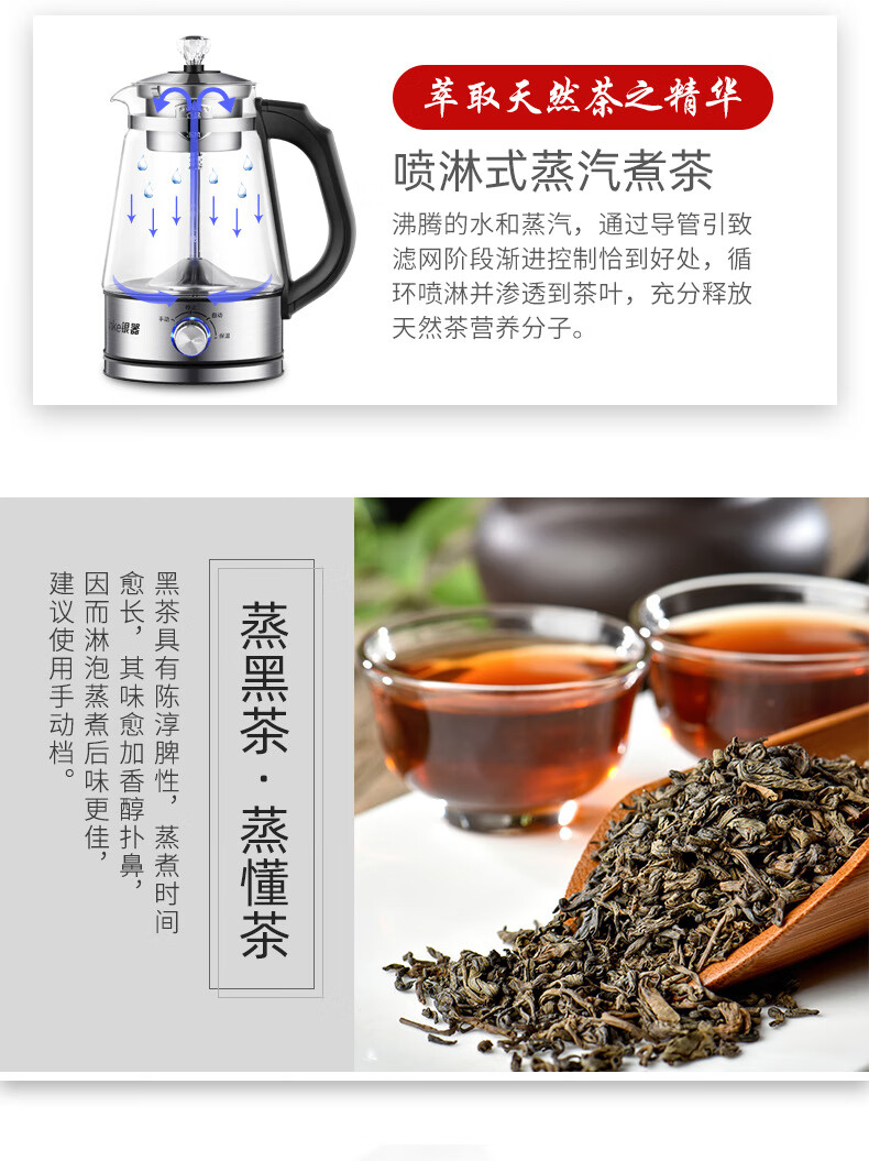 110V美规跨境全自动家用煮茶器蒸汽喷淋煮黑茶壶玻璃电茶壶咖啡壶 220V国标插头【中文国内使用】 煮茶器