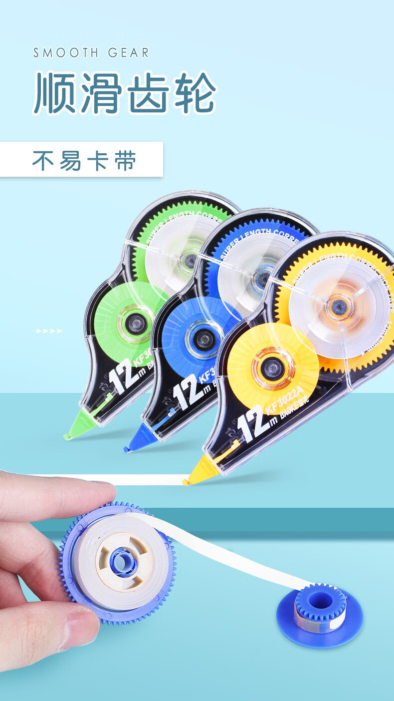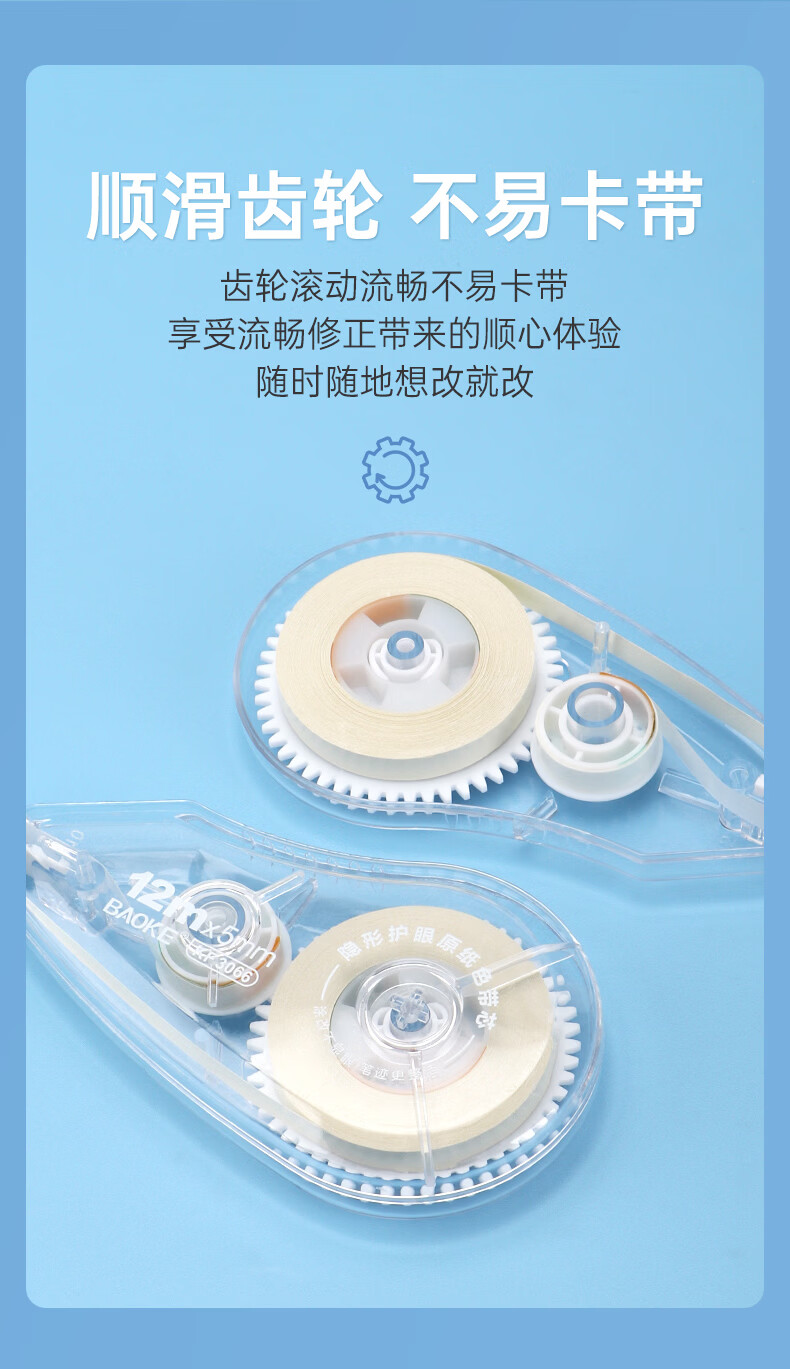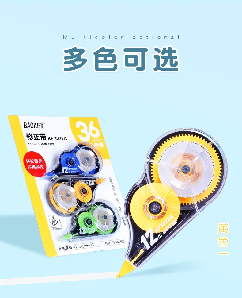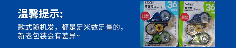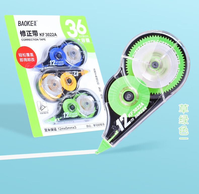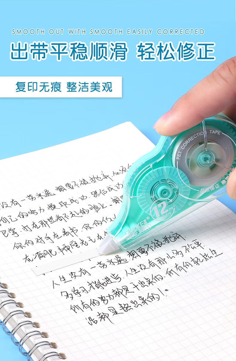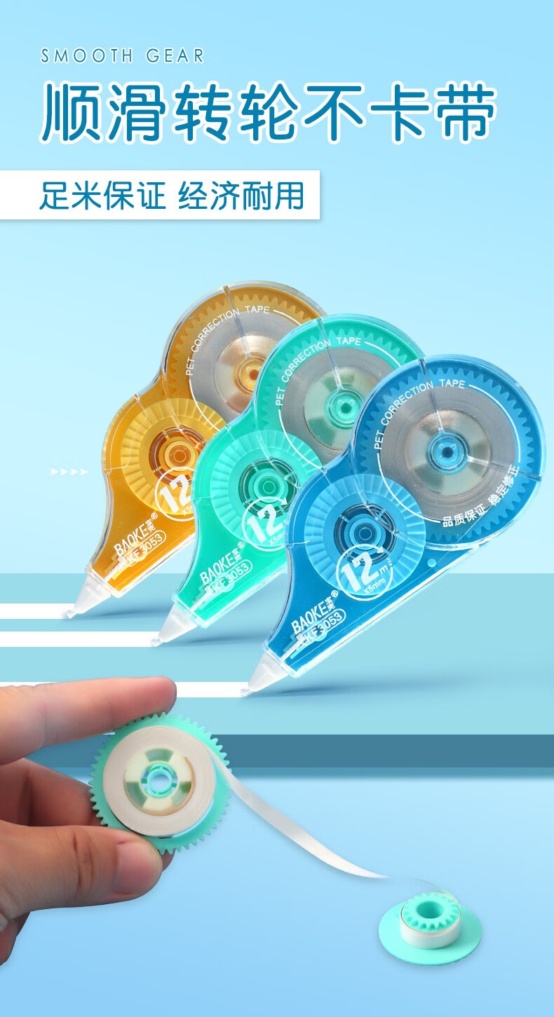 宝克(BAOKE)修正带 学生办公通用 改正带 涂改带 大中小学生儿童读书写字学习用品文具 12米*6支 原纸色带芯 KF3066 款式颜色随机发 包邮