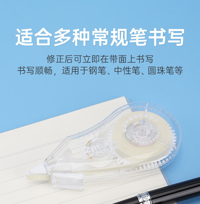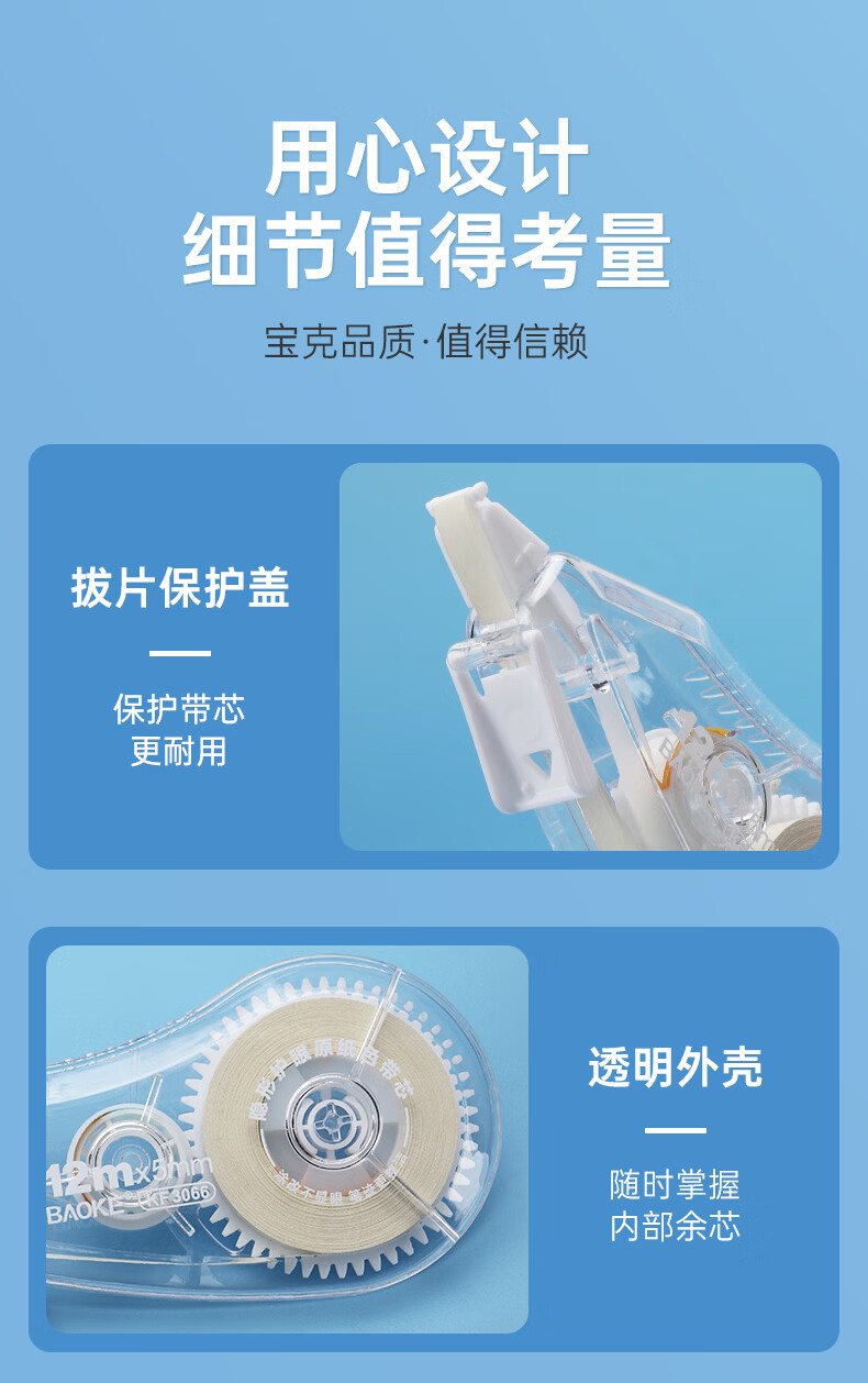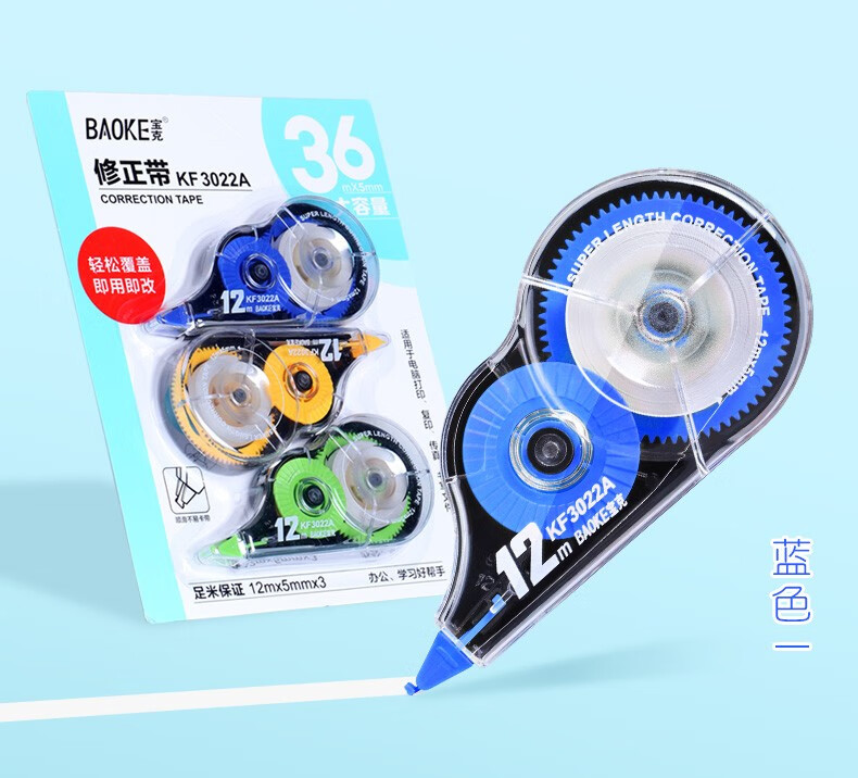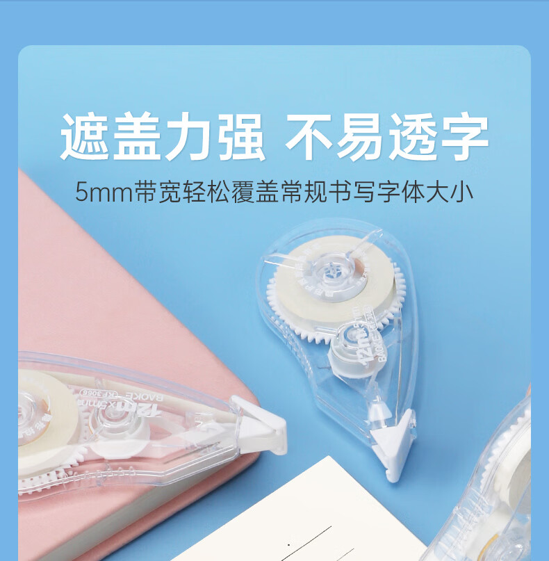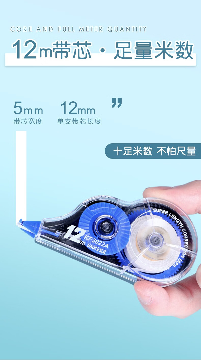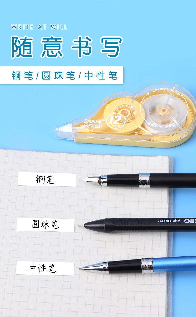 宝克(BAOKE)修正带 学生办公通用 改正带 涂改带 大中小学生儿童读书写字学习用品文具 12米*6支 原纸色带芯 KF3066 款式颜色随机发 包邮