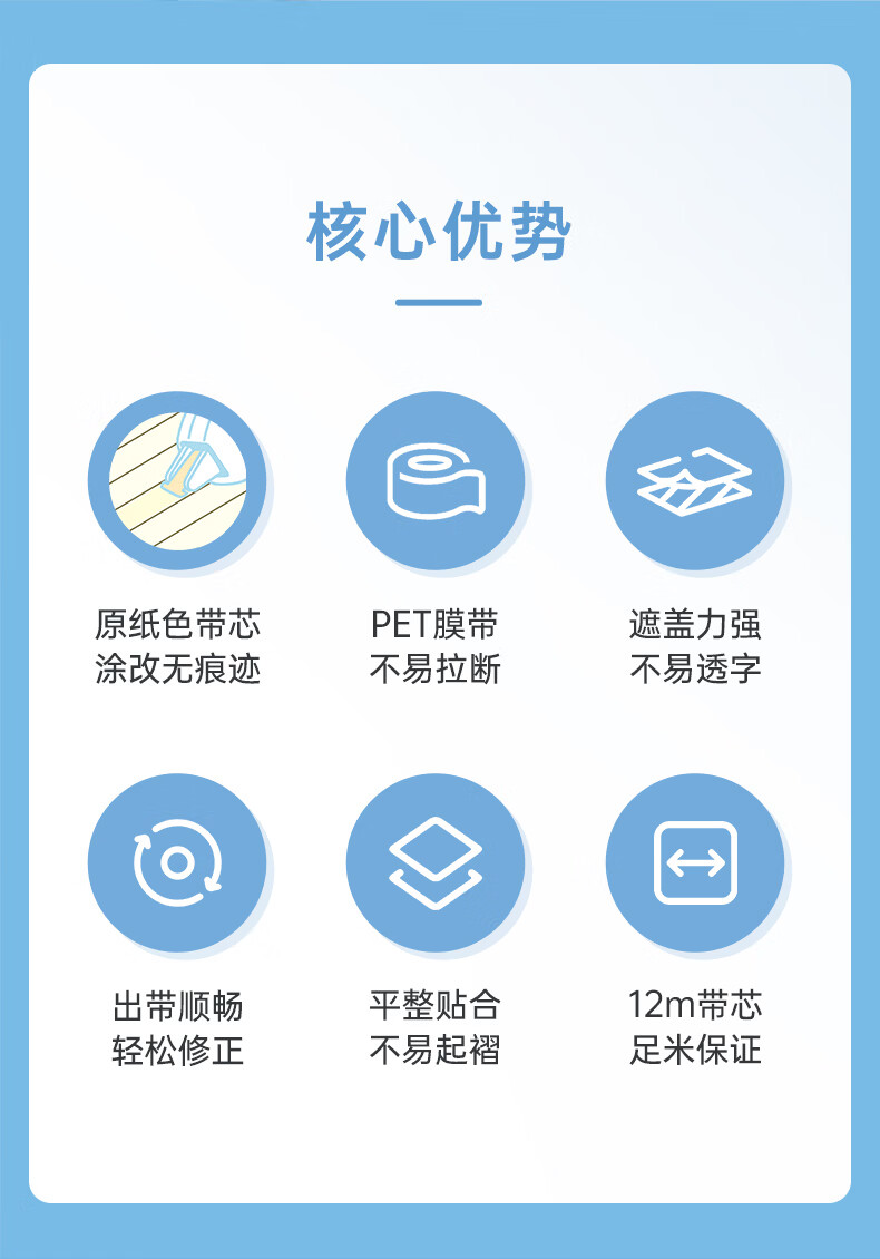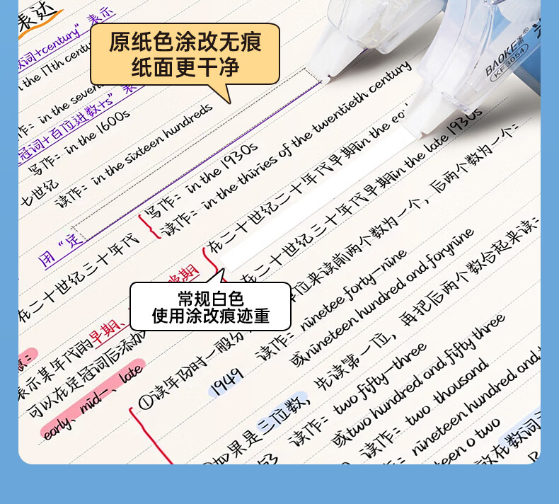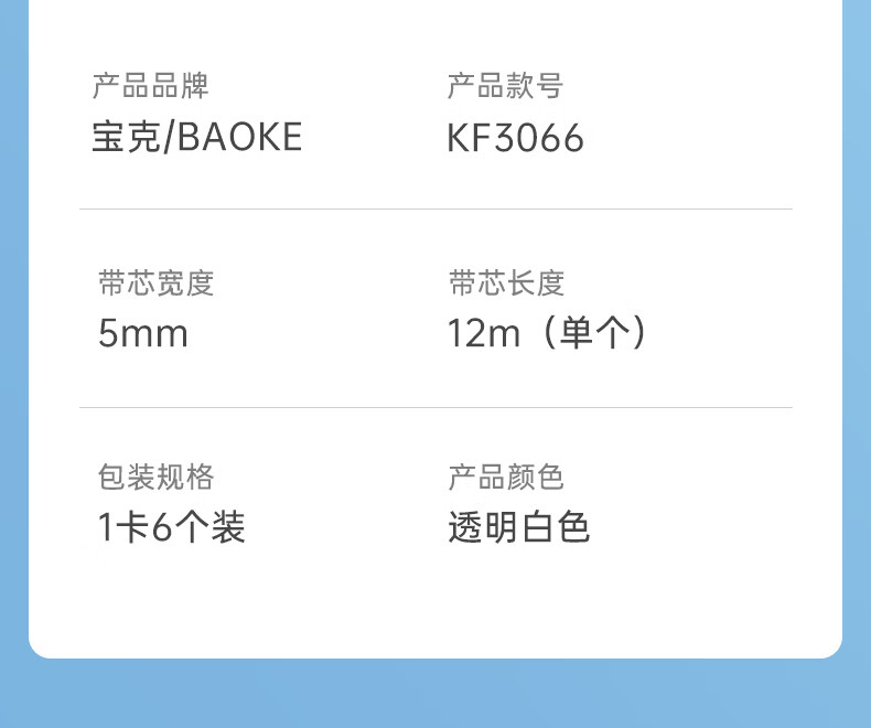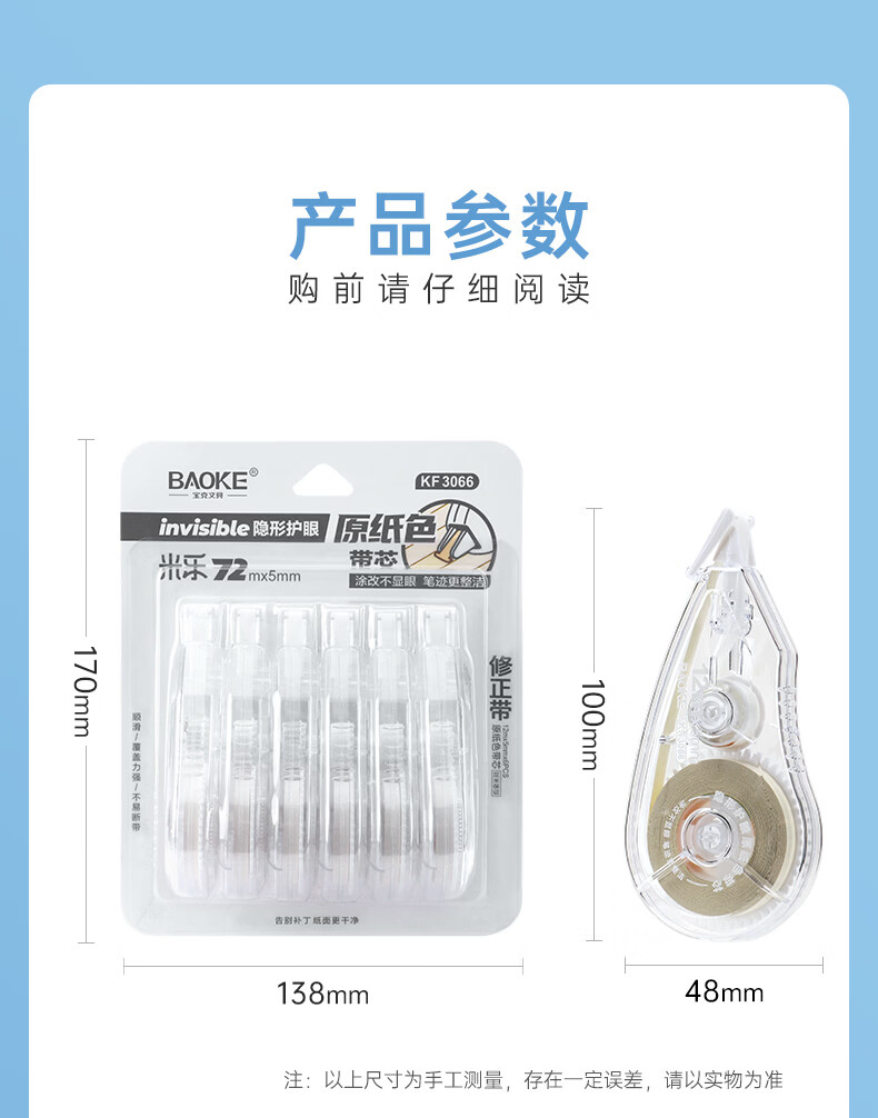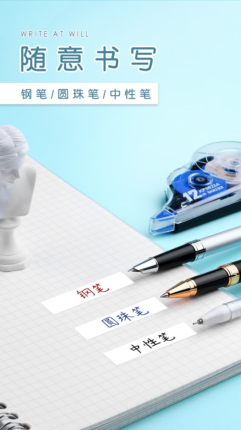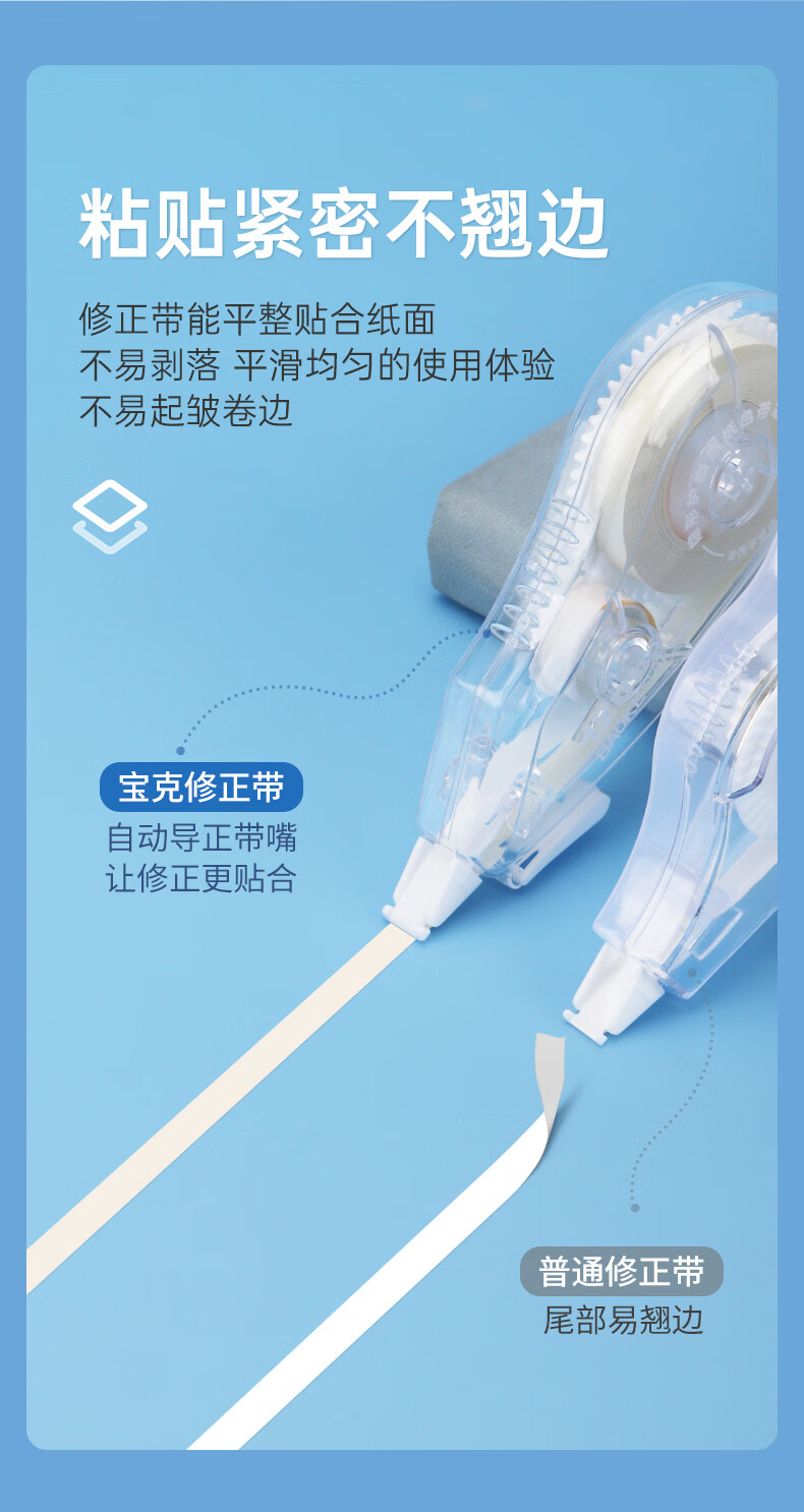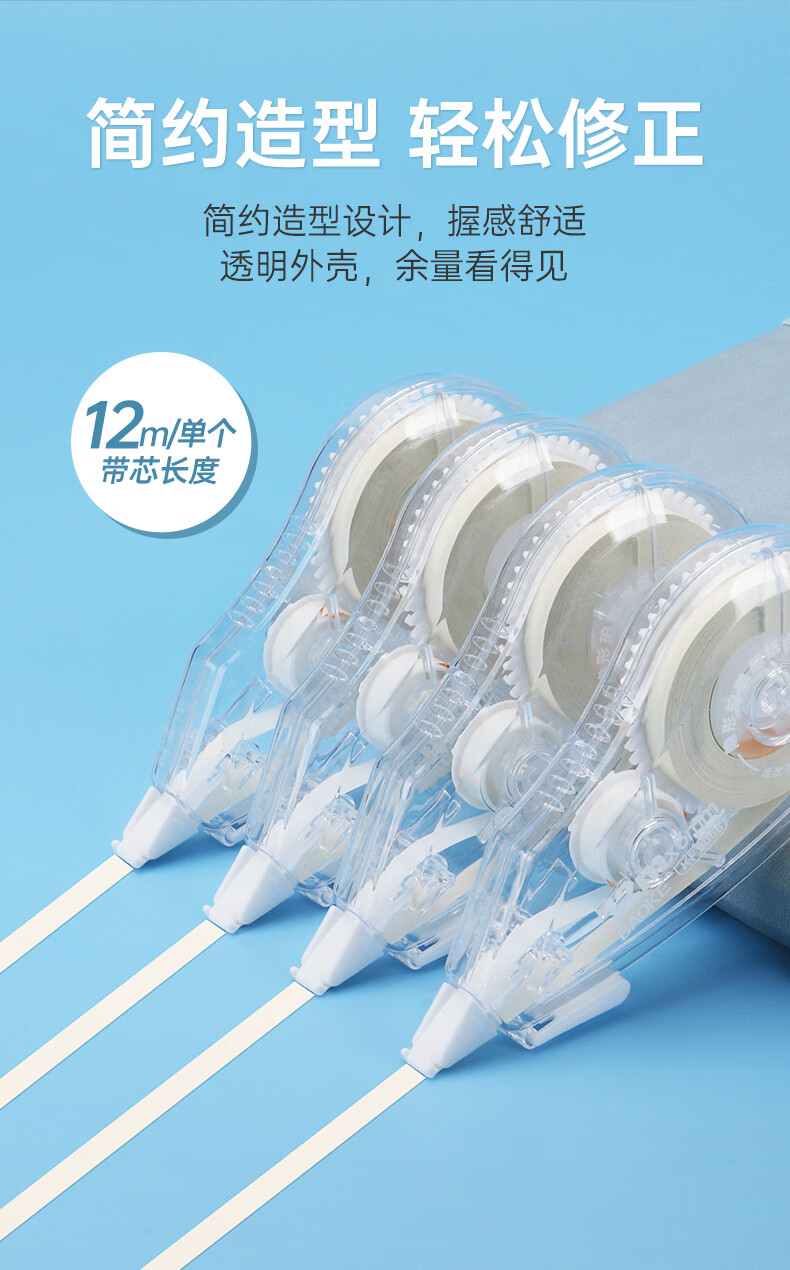 宝克(BAOKE)修正带 学生办公通用 改正带 涂改带 大中小学生儿童读书写字学习用品文具 12米*6支 原纸色带芯 KF3066 款式颜色随机发 包邮