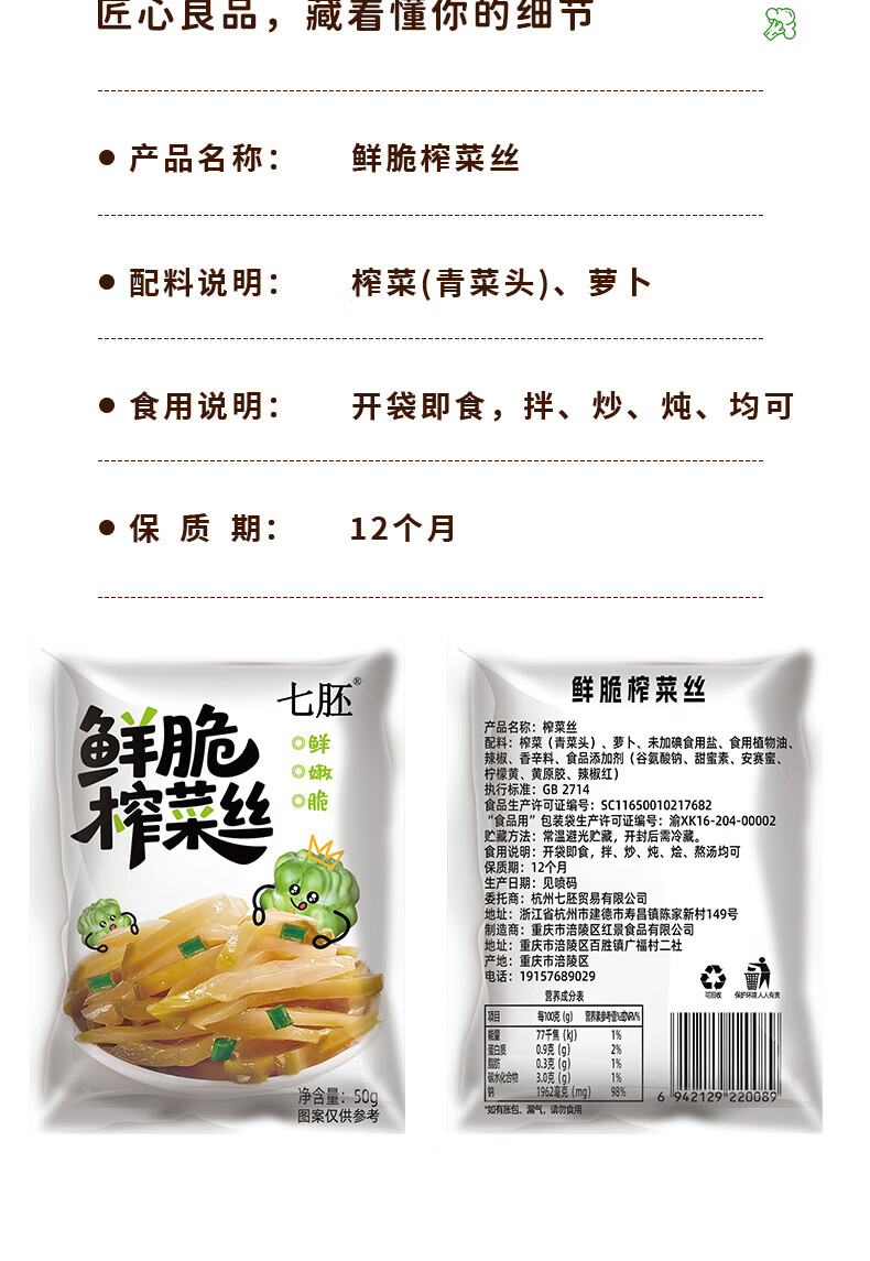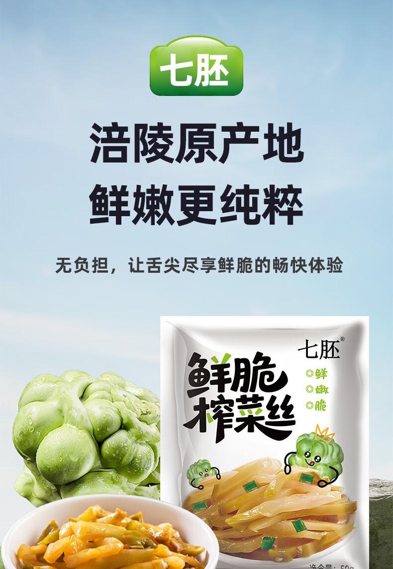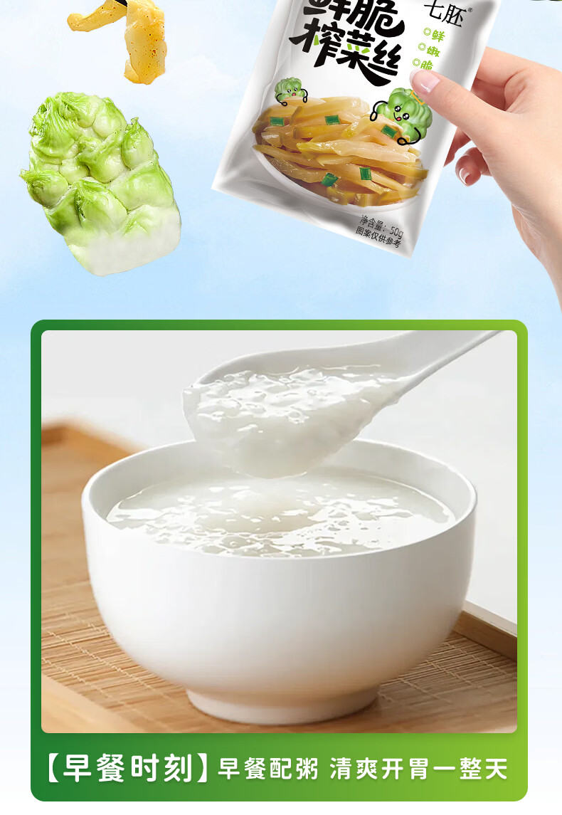 榨菜丝开味小菜50g/袋鲜嫩脆爽下饭菜腌菜清淡去皮小包配粥咸菜 榨菜丝50g*2包《活动》