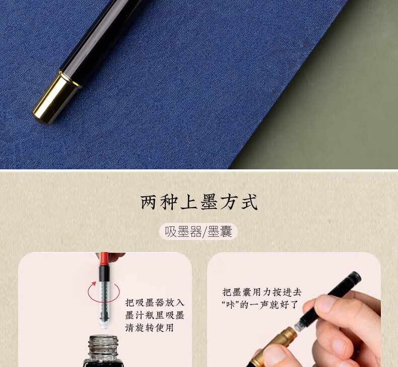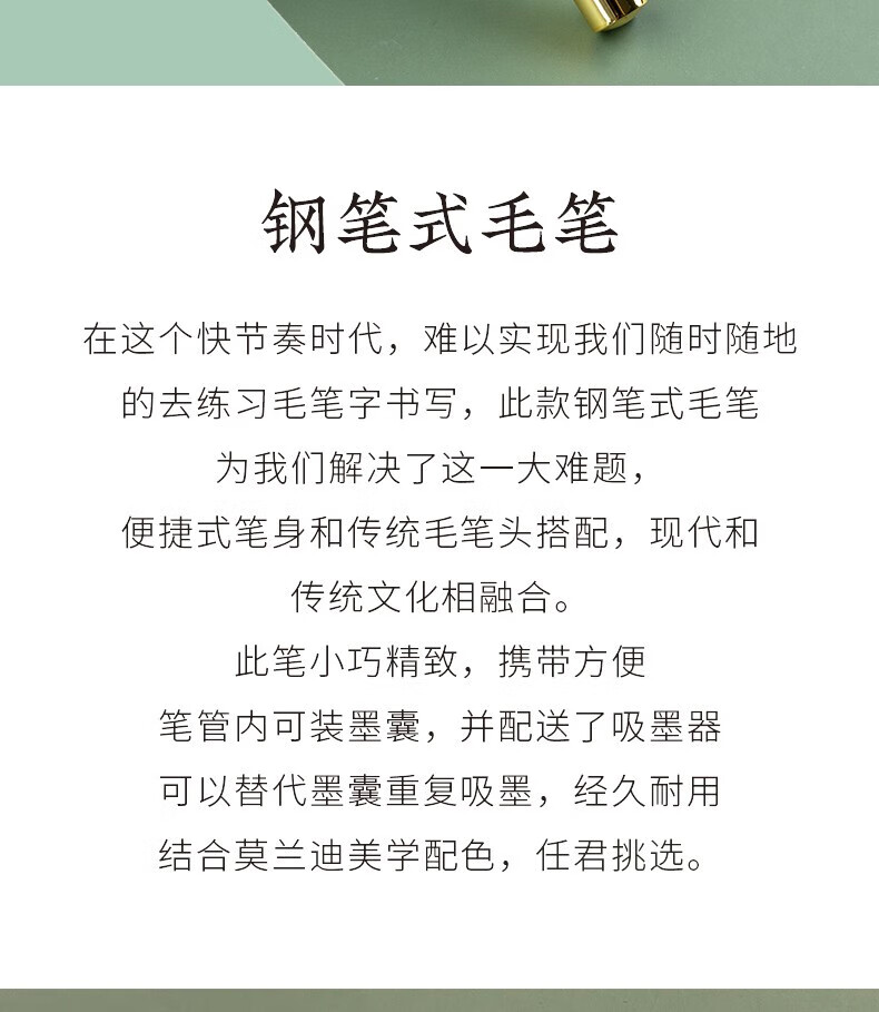 善琏湖笔钢笔式毛笔 软笔头书法笔狼毫小楷套装科学秀丽笔便携式可加墨自带墨水软头文房四宝