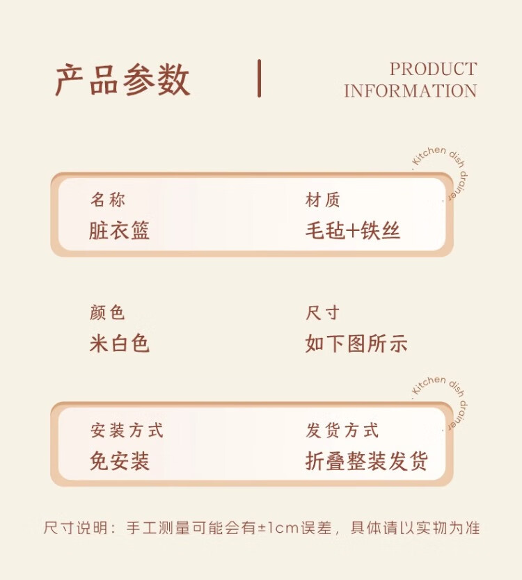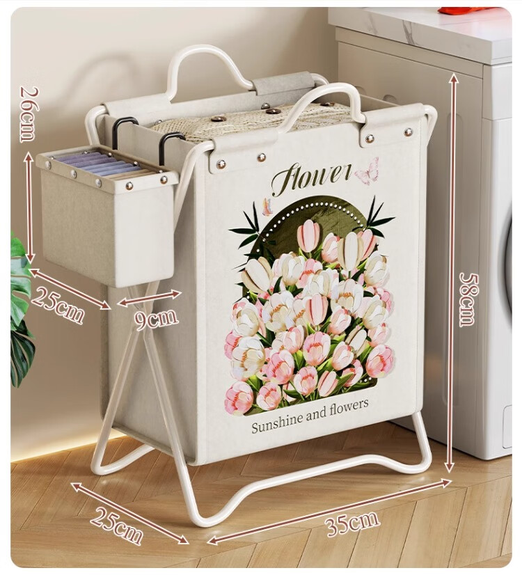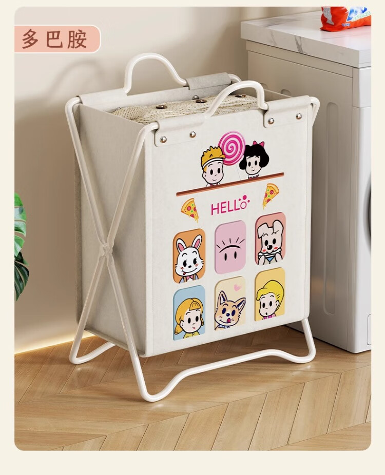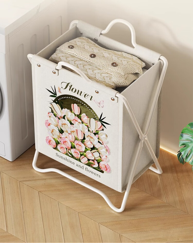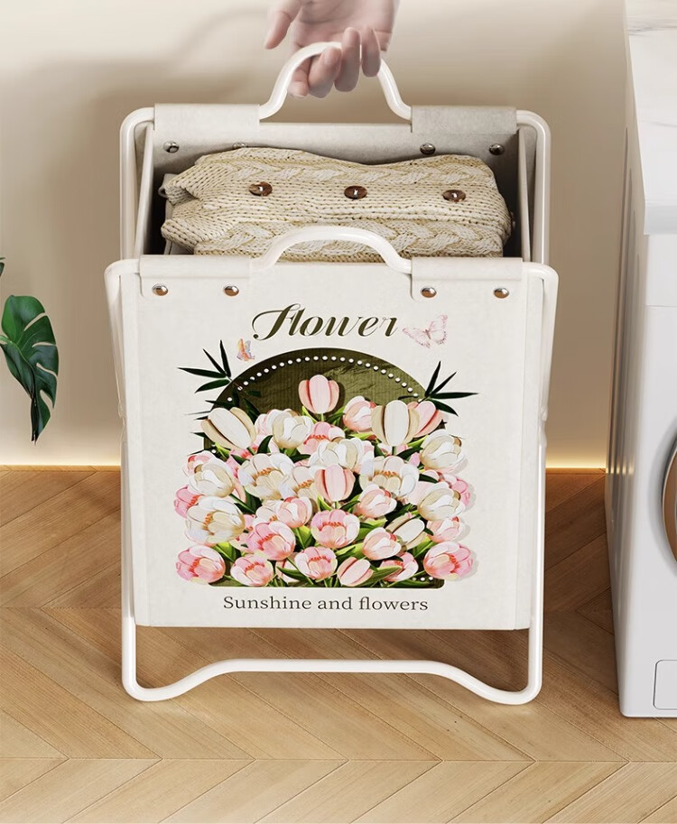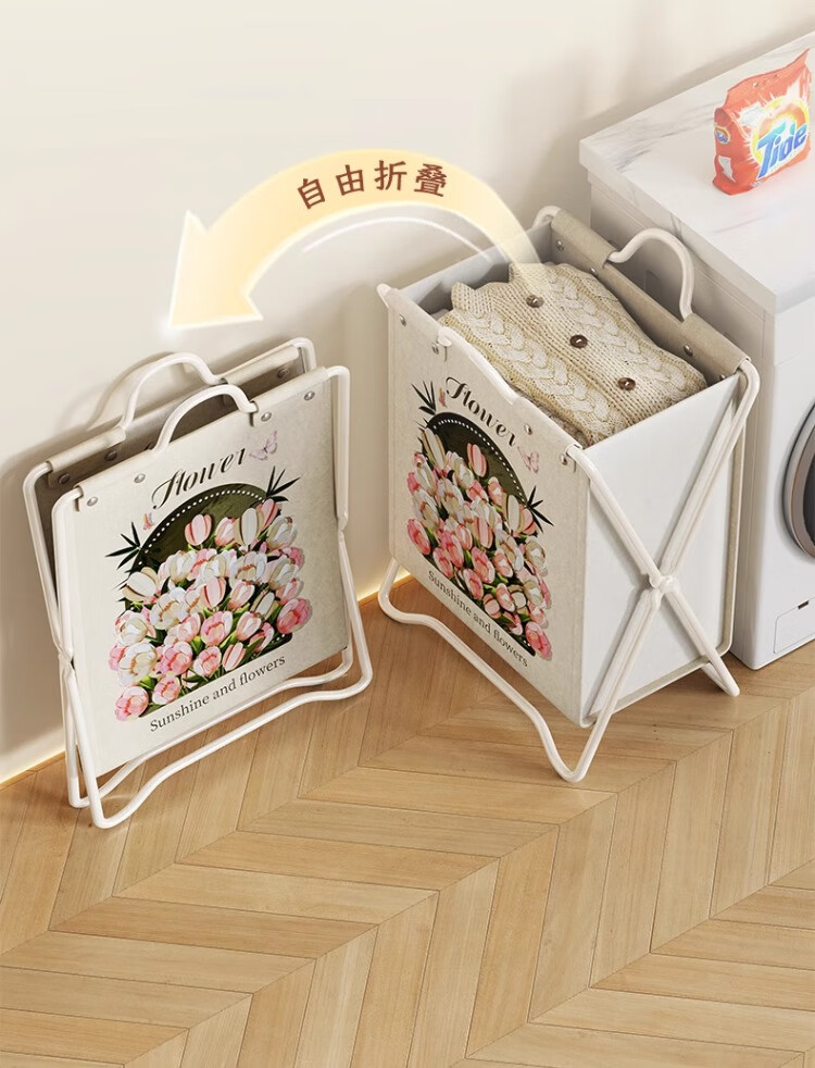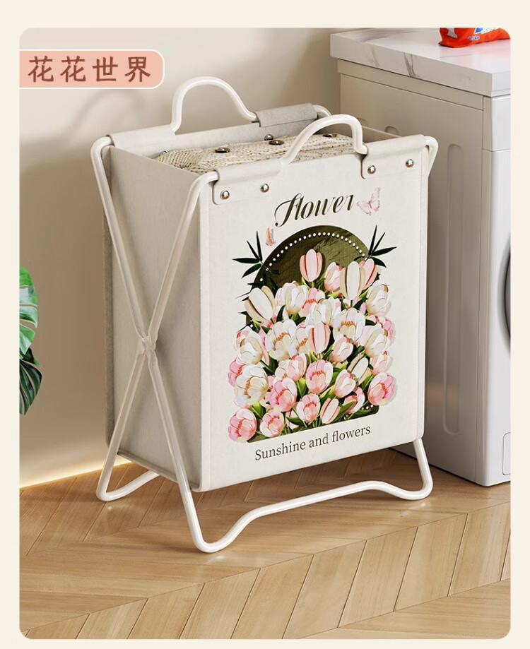 尔思家脏衣篓收纳筐高颜值轻奢家用可折叠收纳桶大容量家用可折叠洗衣篮 花花世界 米白色