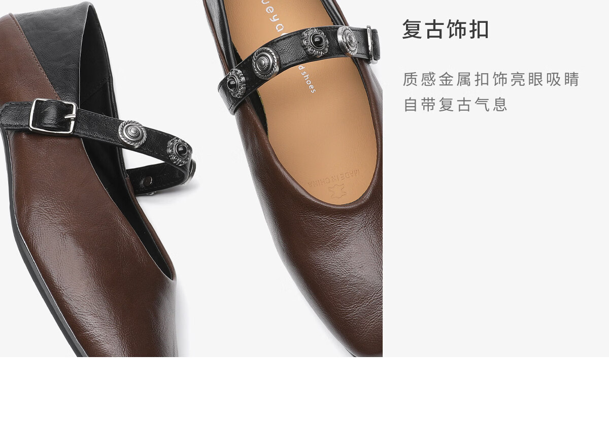 月芽儿玛丽珍鞋女法式复古风浅口单鞋气质 黑色01S 34