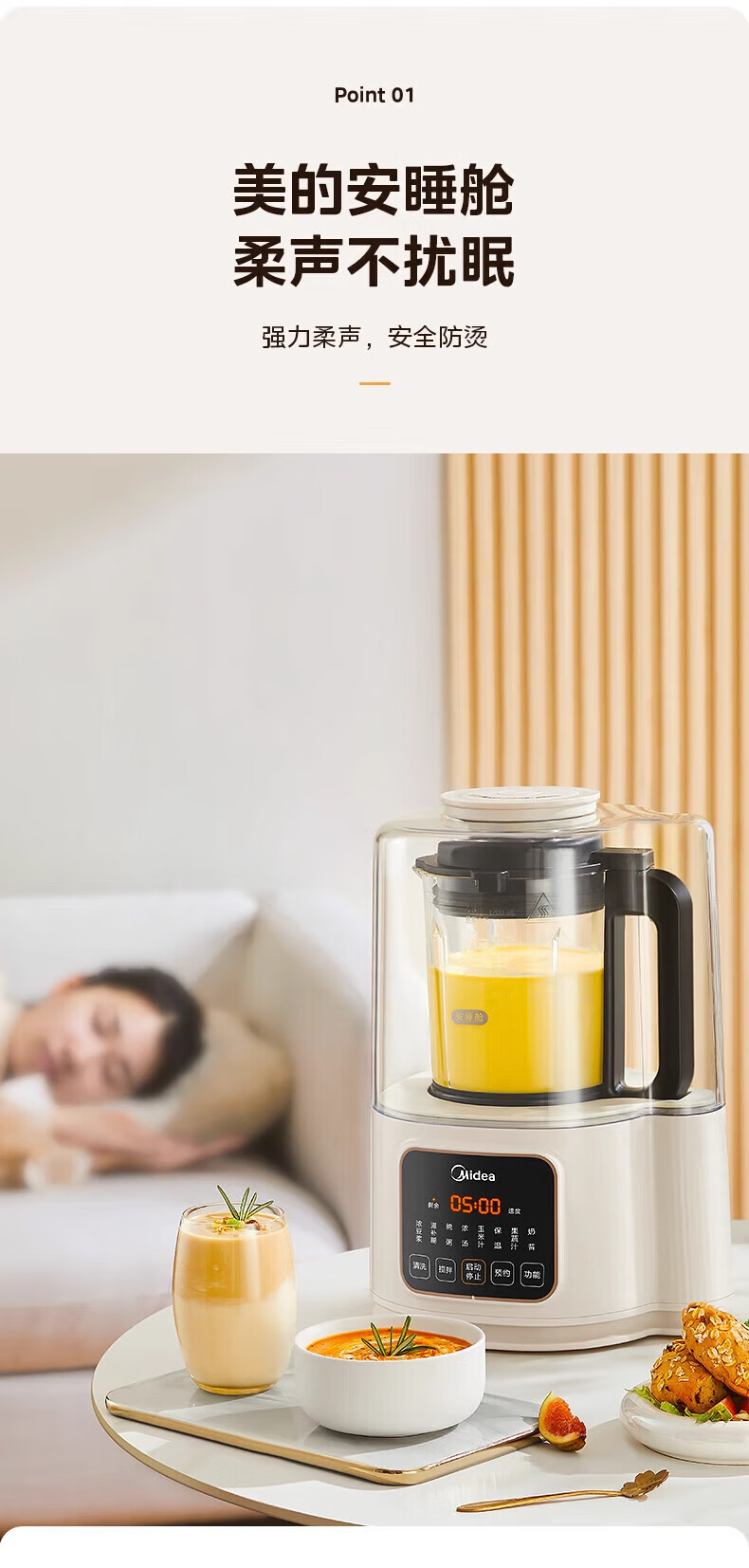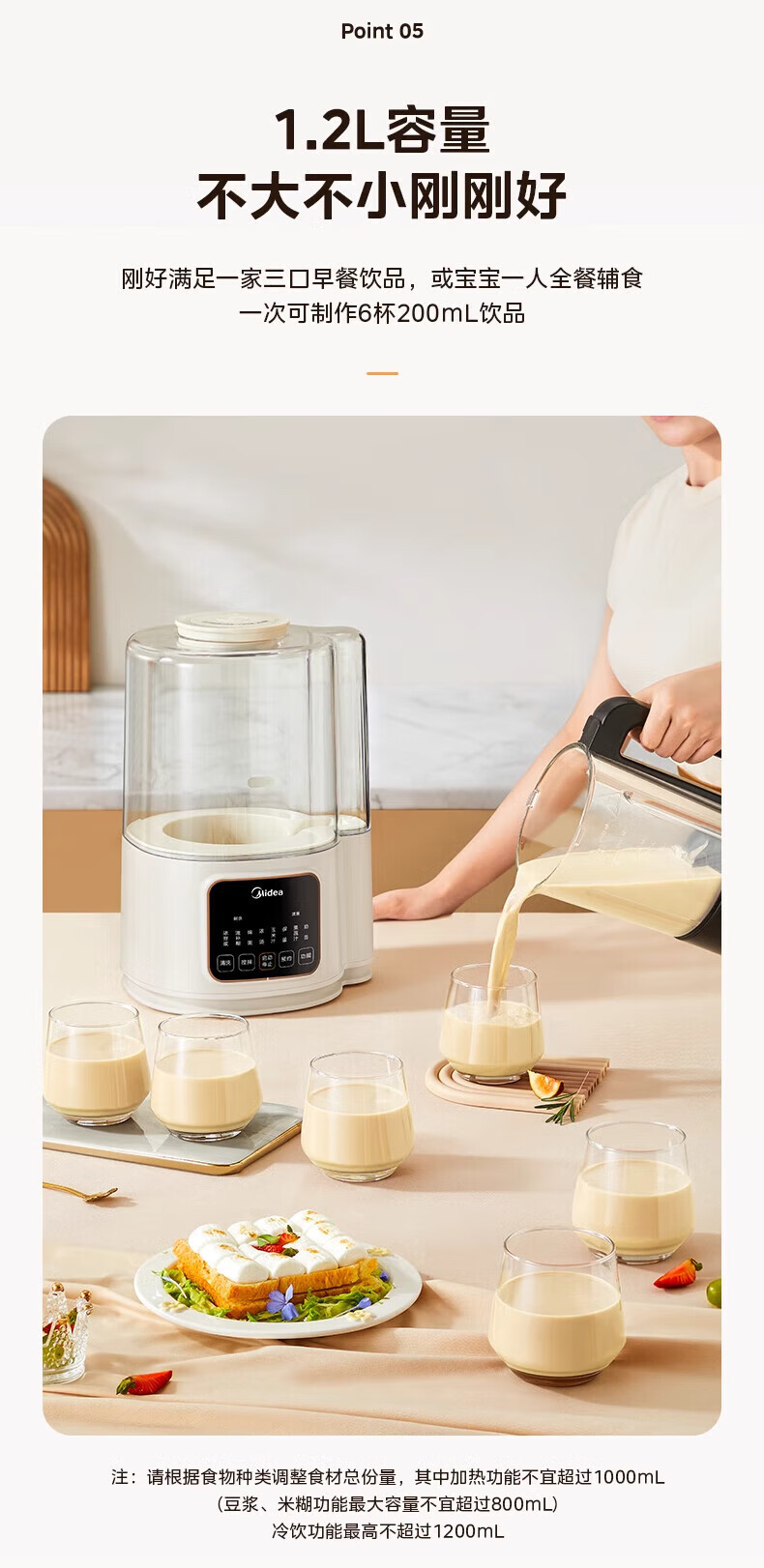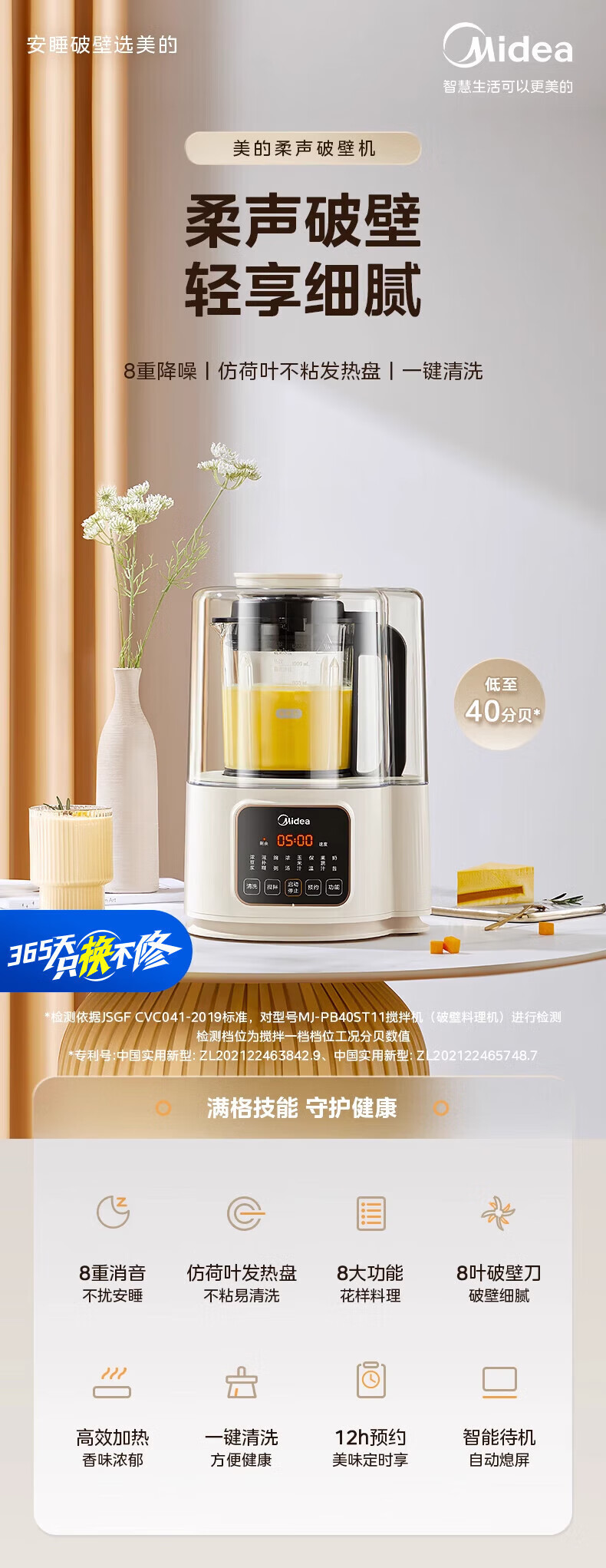 美的(Midea)破壁机家用豆浆机自动清洗1.2L小型轻音多功能降噪榨汁料理机2-3人用五谷杂粮辅食机 MJ-PB40ST11 【爆款】40d安睡~细腻免滤1.2L
