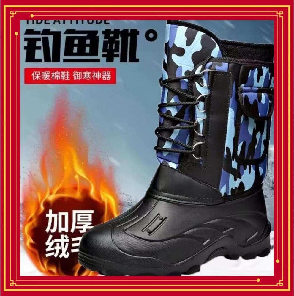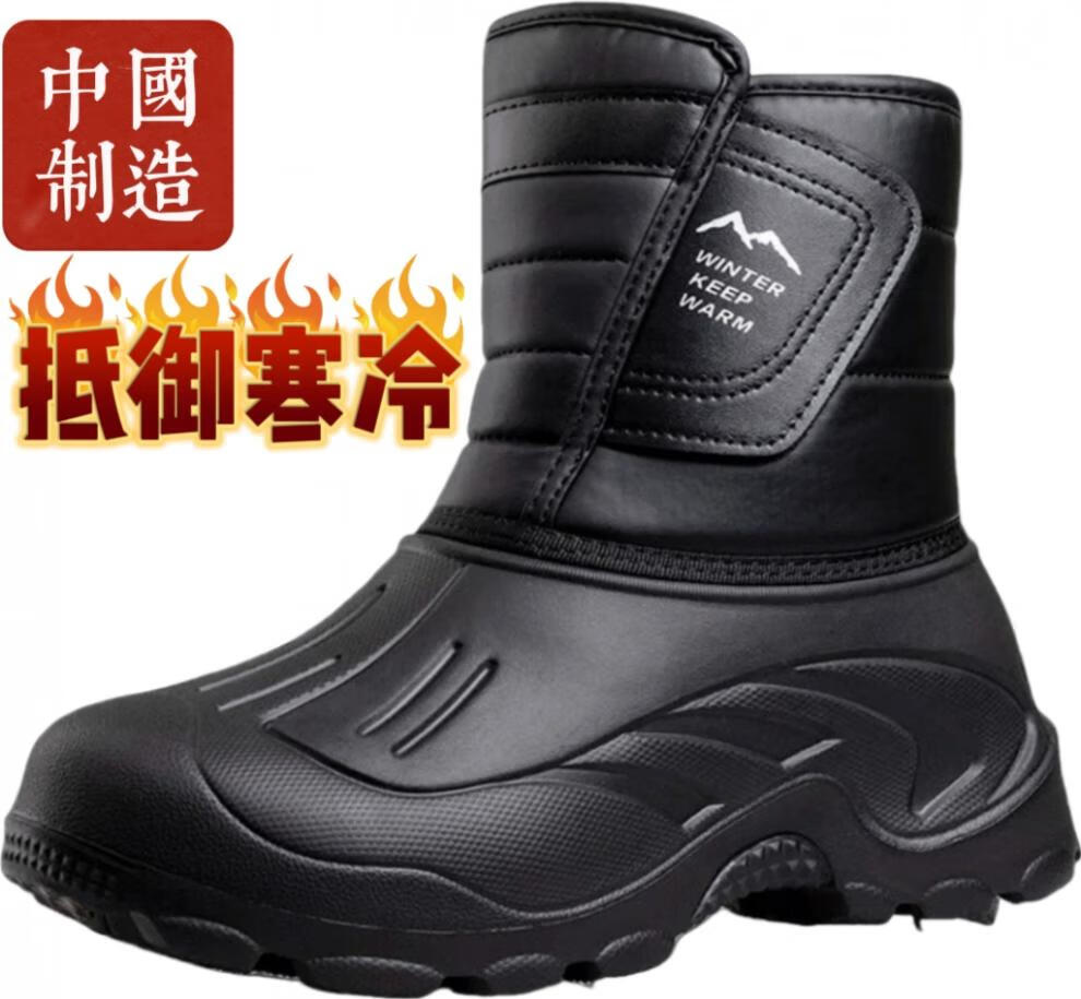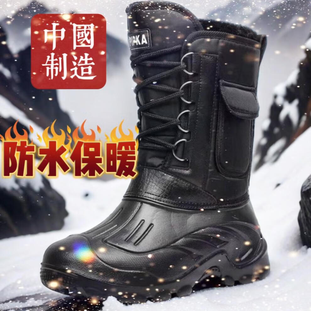 稻草人(MEXICAN)雪地靴男厚底雪地靴防寒挡风高帮鞋男款外卖骑手冬季鞋高档钓鱼鞋 中筒粘扣钓鱼鞋 不可拆卸内胆 38