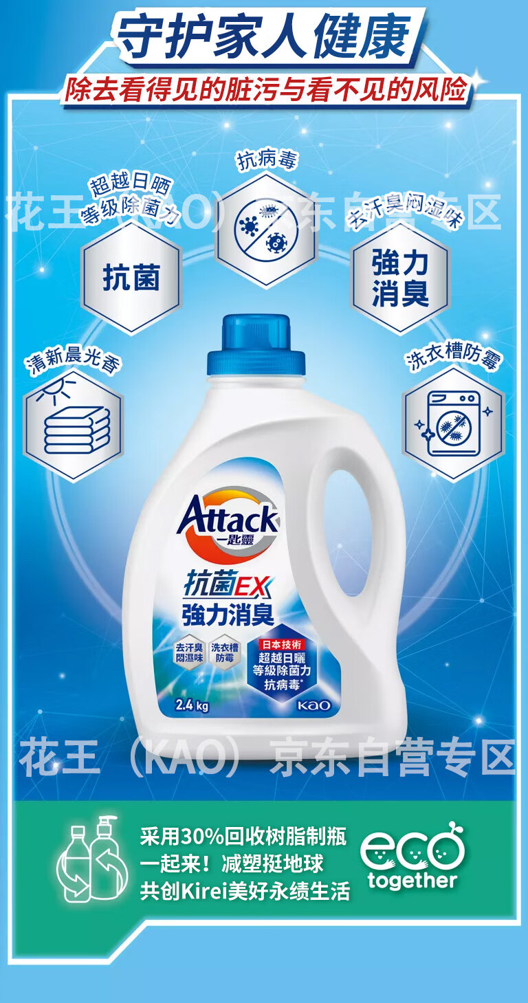 花王(KAO)抗菌消臭洗衣液4.8斤 进口洗衣精洁霸除菌内衣裤可用香味持久