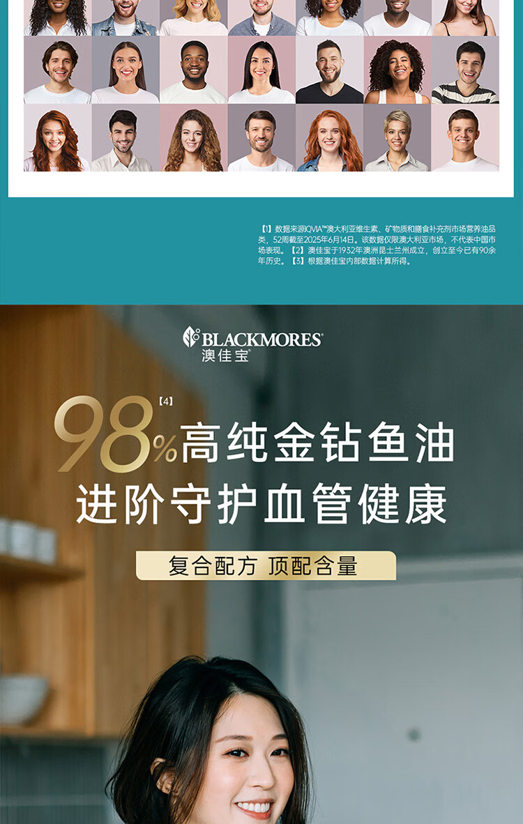 澳佳宝Blackmores金钻鱼油98%高浓度澳洲进口DHAEPA增强记忆60粒