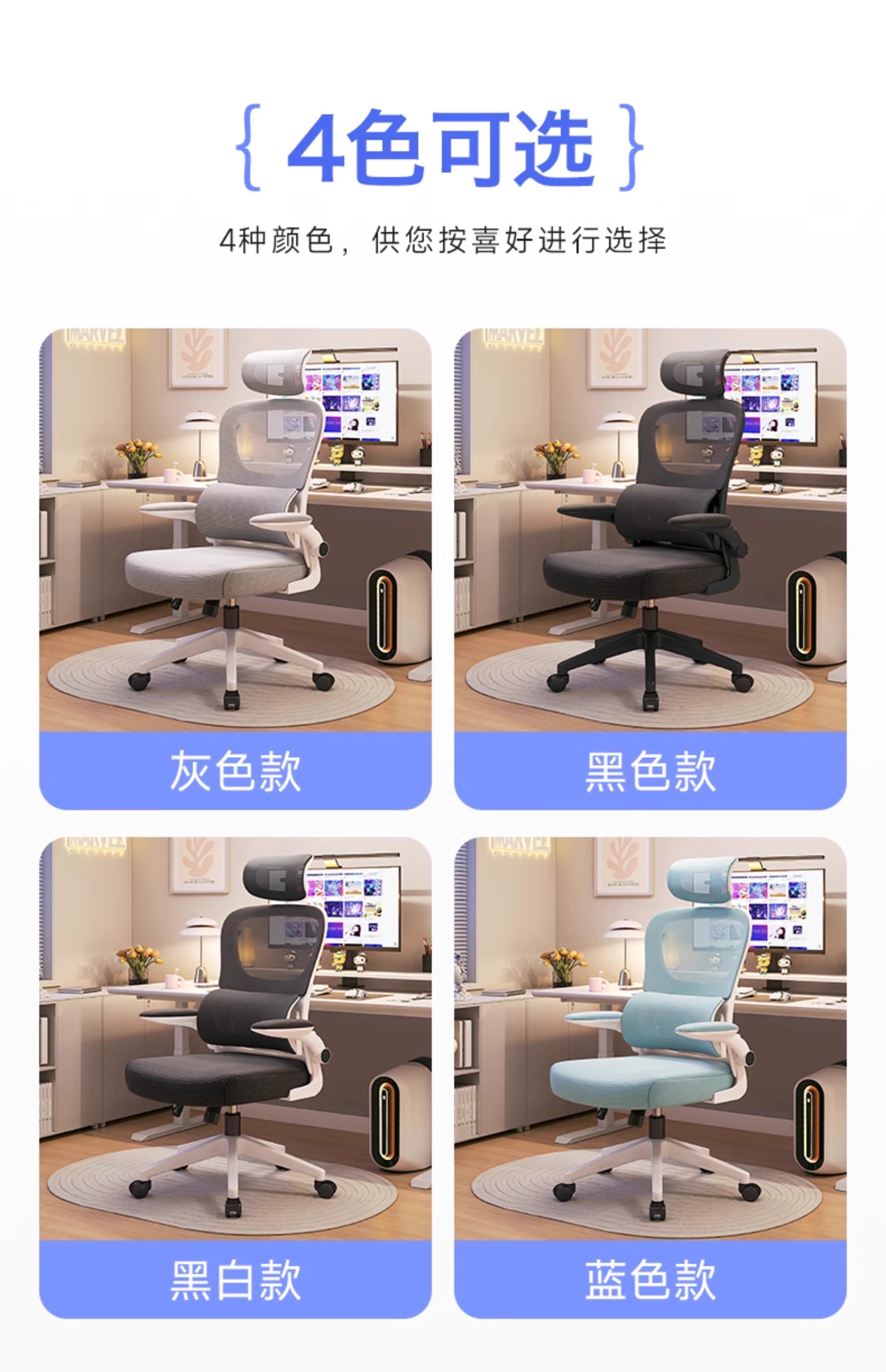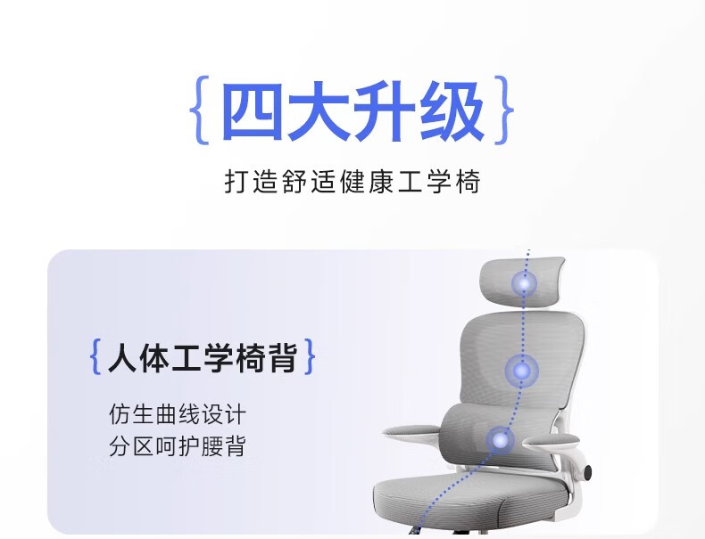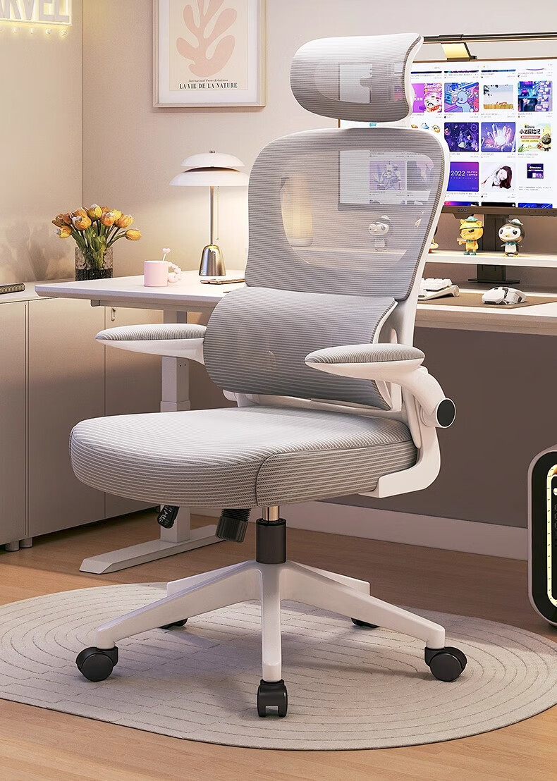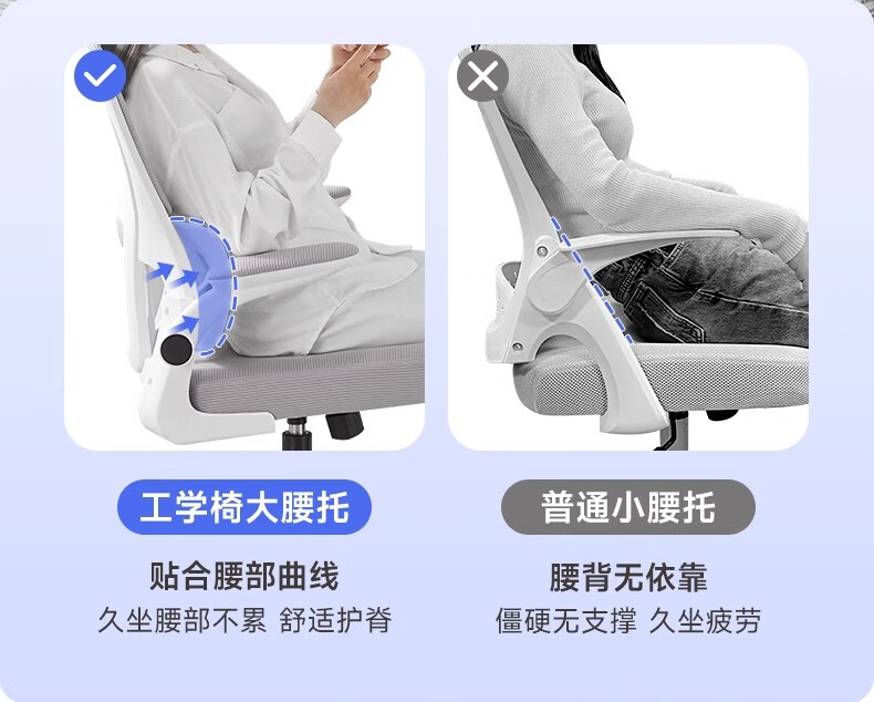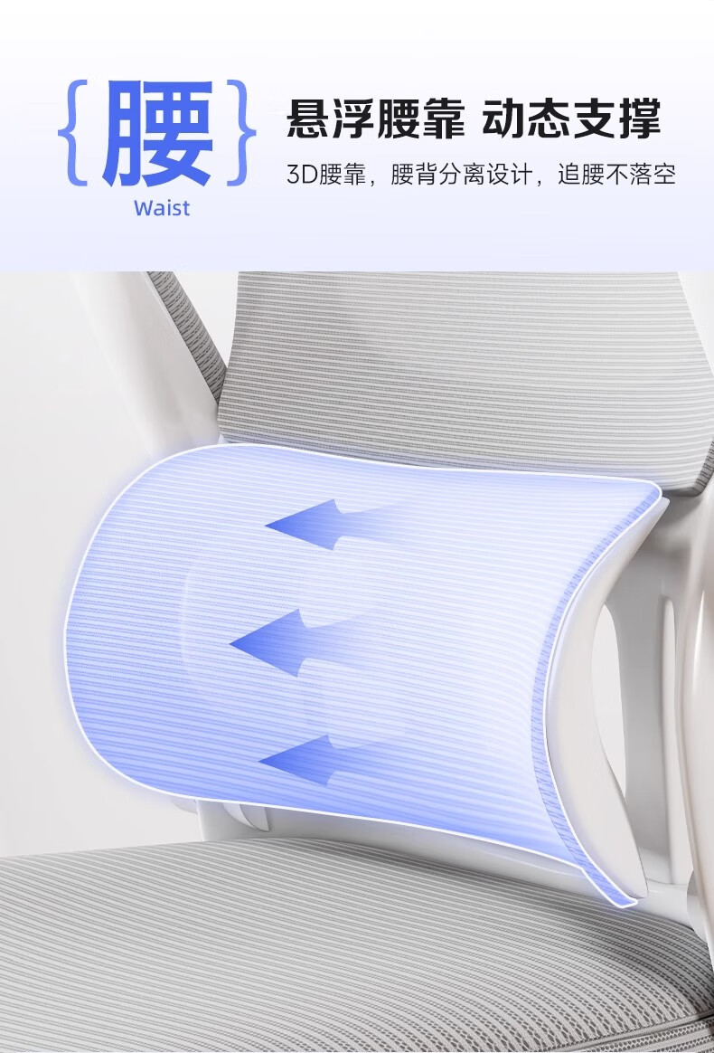 【京喜甄选】人体工学椅子护腰电脑椅靠背椅电竞椅学习办公椅座椅 雅灰色【悬浮腰托+头枕】乳胶款