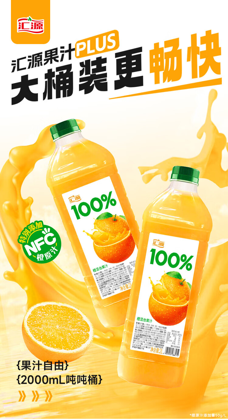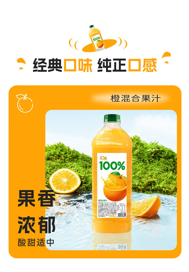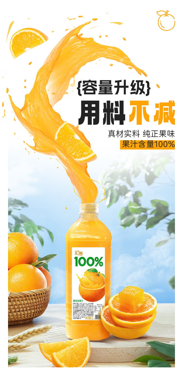 汇源100%橙混合果汁2000ml*1瓶2L尝鲜大桶装节日年货节送礼宴请