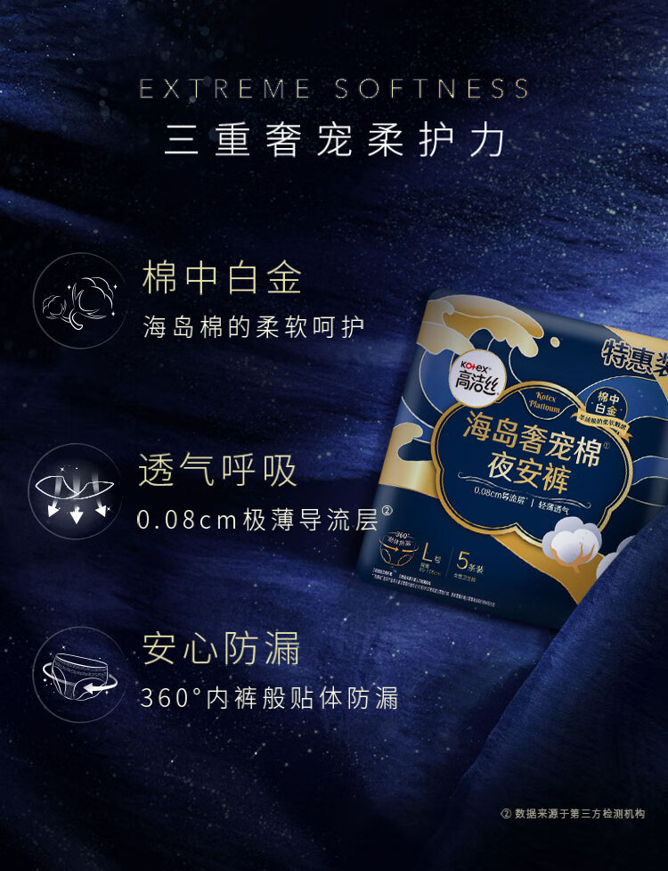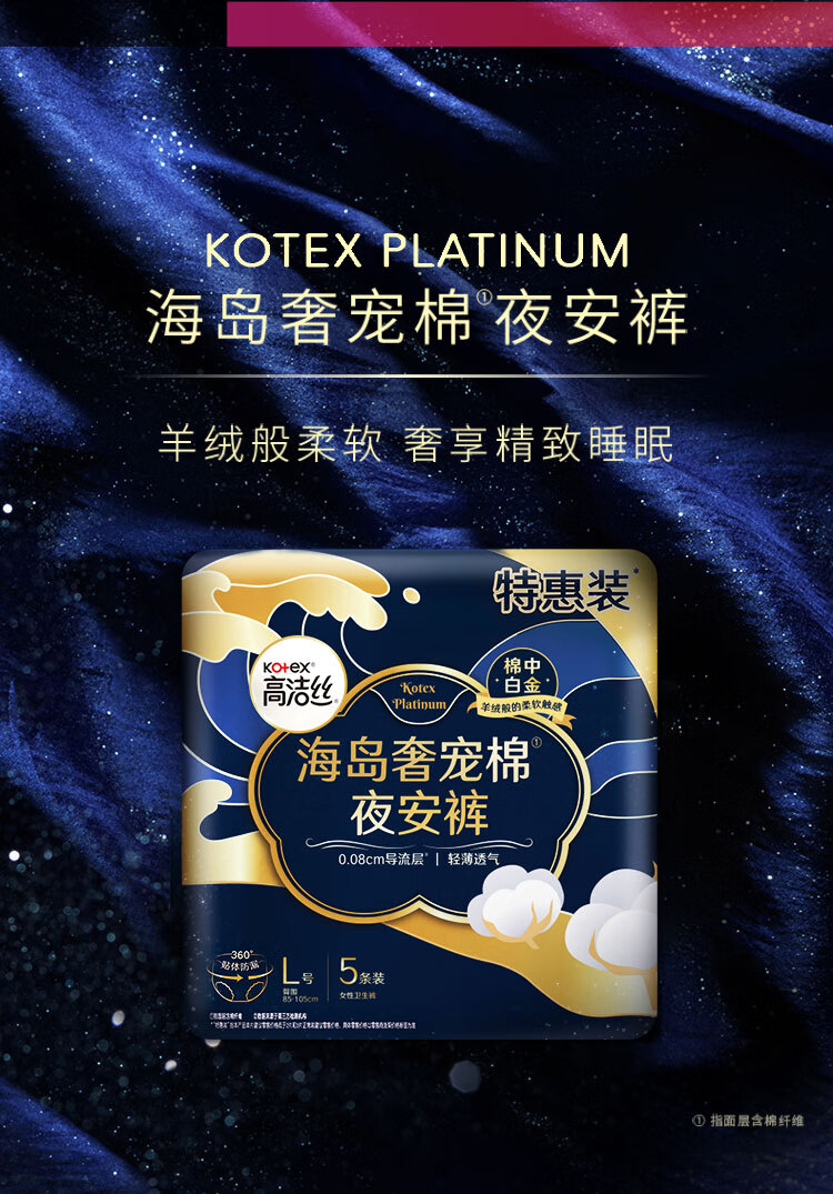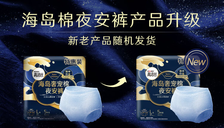 高洁丝【近0敏海岛棉】夜安裤L号5条100-140斤裤型卫生巾安睡裤京东自营