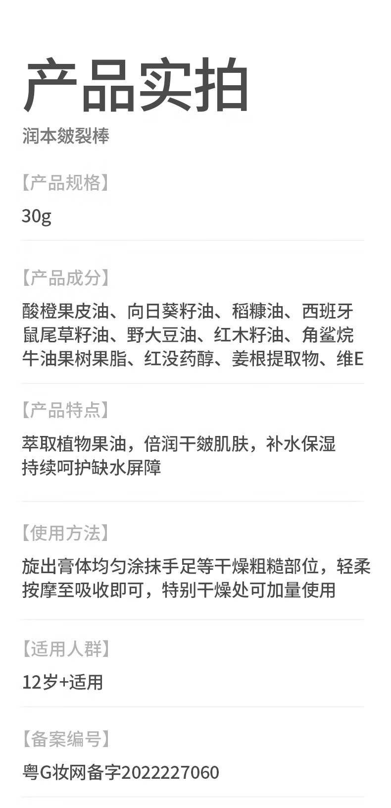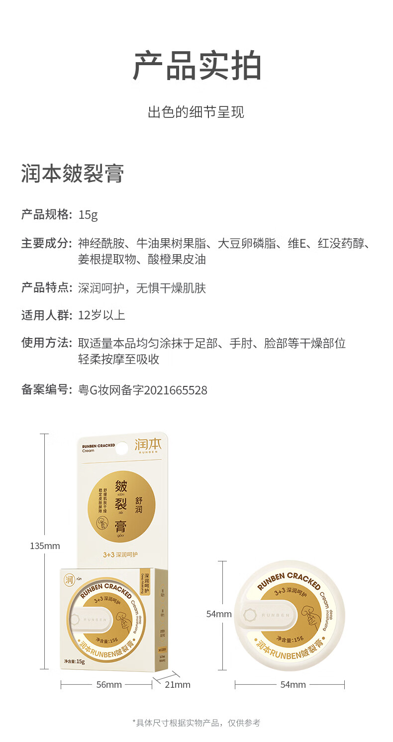 润本(RUNBEN)皲裂膏皴裂膏保湿滋润补水防裂护手足霜滋润肌肤秋冬嫩足 15g 1盒 皴裂膏