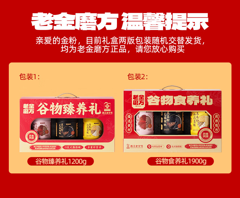 老金磨方黑芝麻糊礼盒营养代餐粉年货送礼送亲友企业团购送礼 【新年安康】谷物食养礼黑红黄粉 1.9kg*1盒