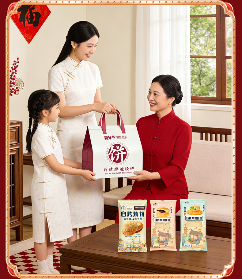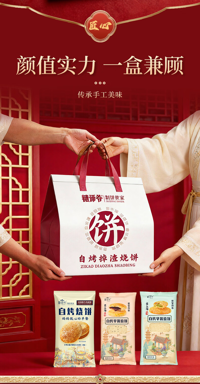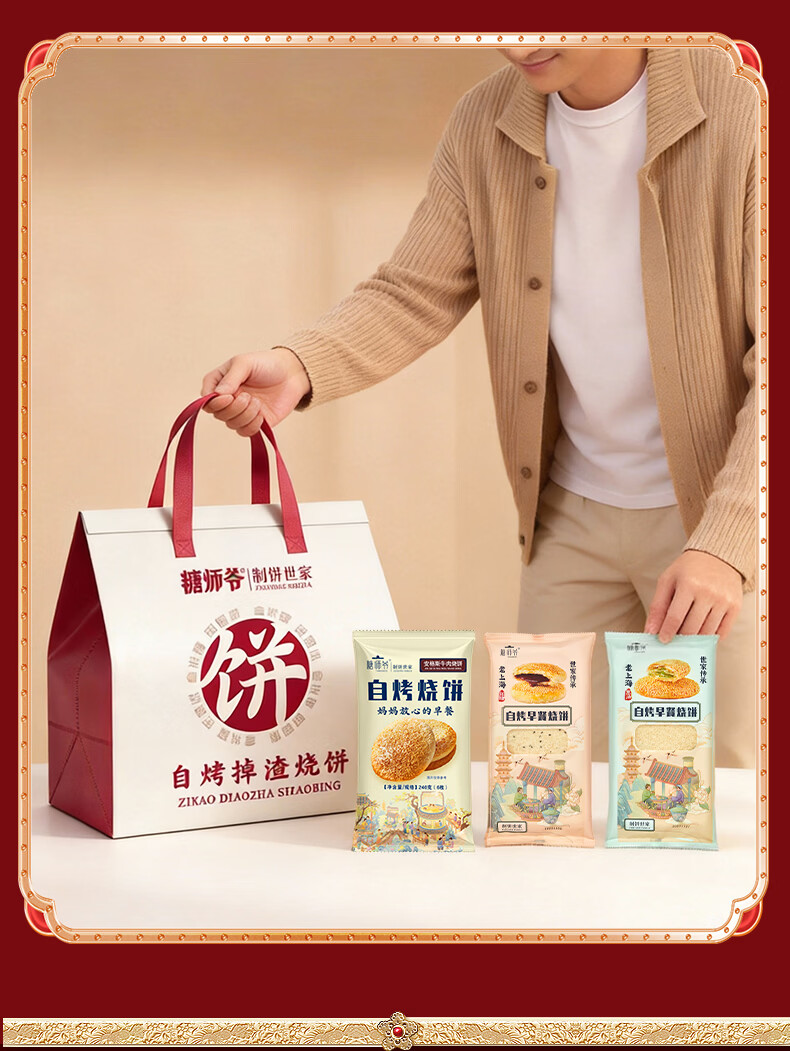 糖师爷新年礼盒烧饼半成品葱油饼牛肉饼酥饼空气炸锅半成品送礼佳品 新礼盒葱油2袋+黑椒牛肉2袋