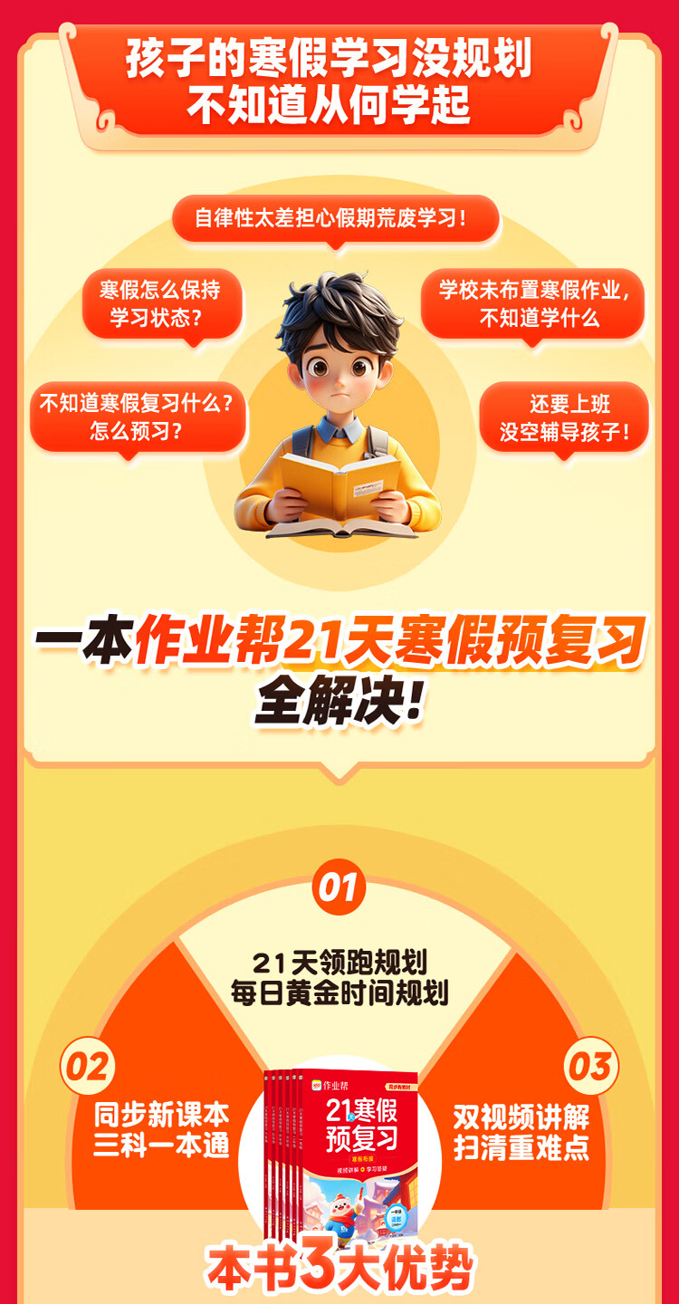 作业帮2026新版21天寒假预复习 小学语文数学英语 1-6年级全国通用人教版 寒假衔接一本通 【拍一发二】21天寒假预复习(赠寒假领跑册) 二年级