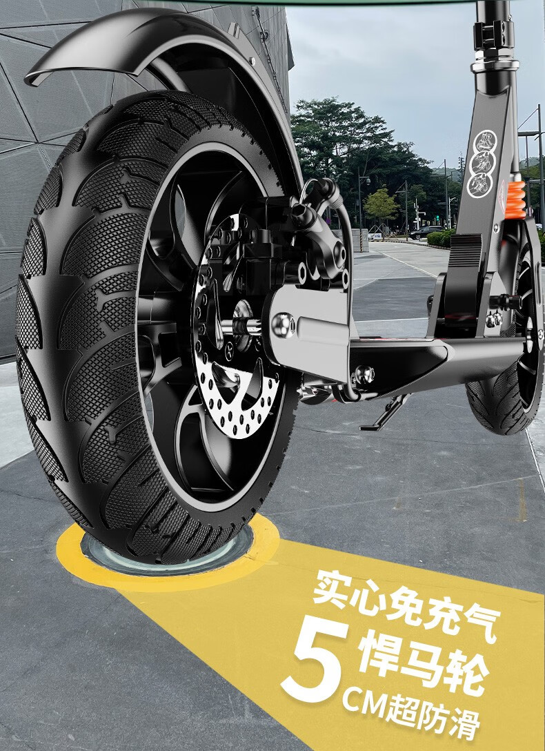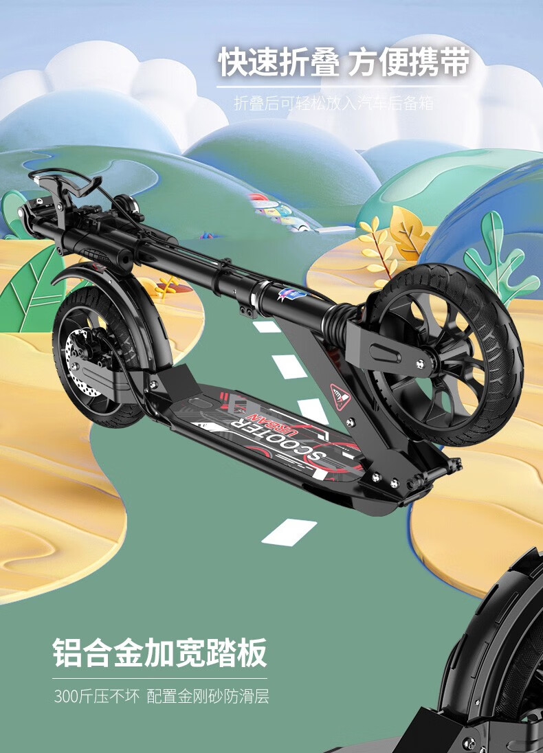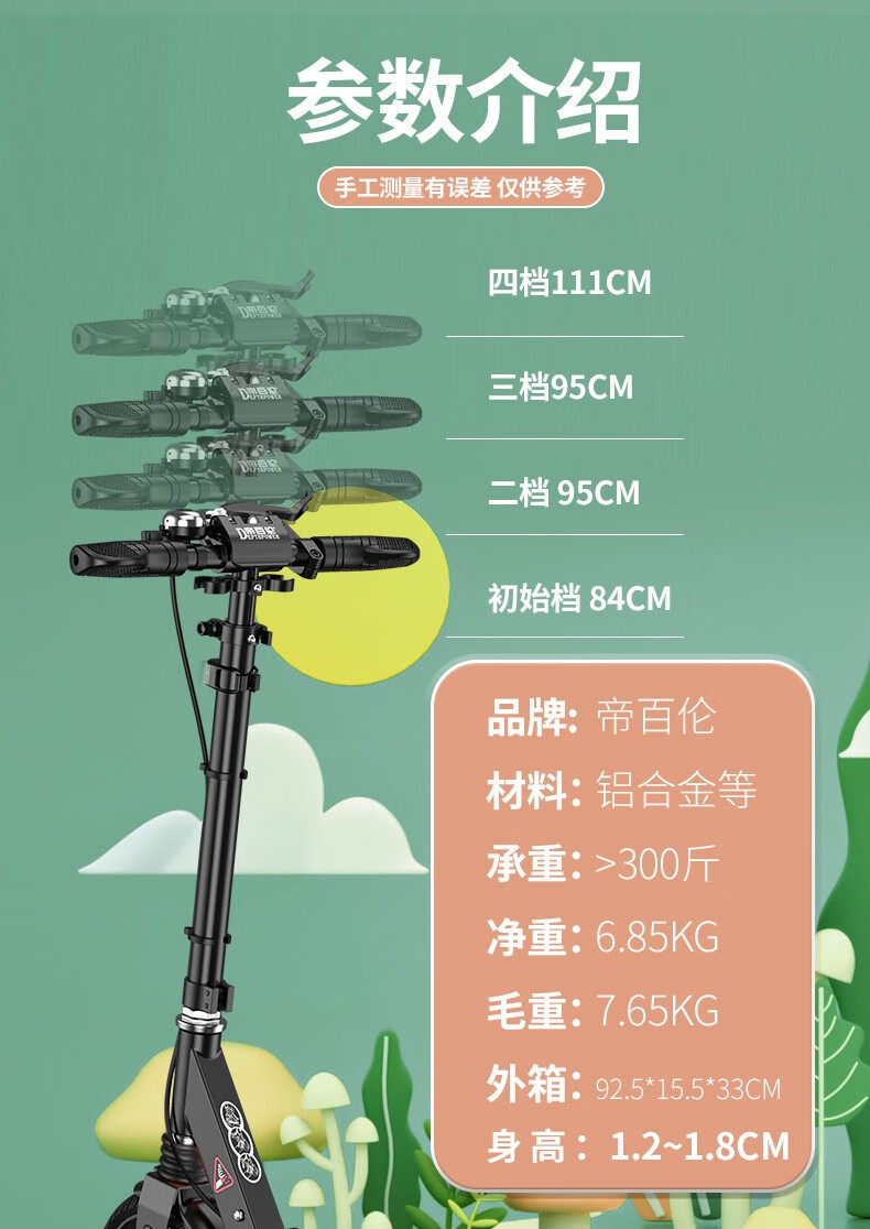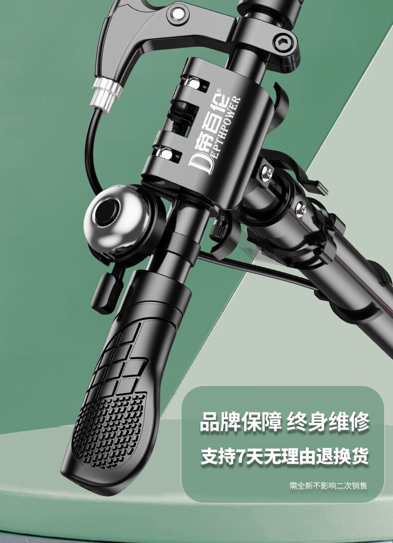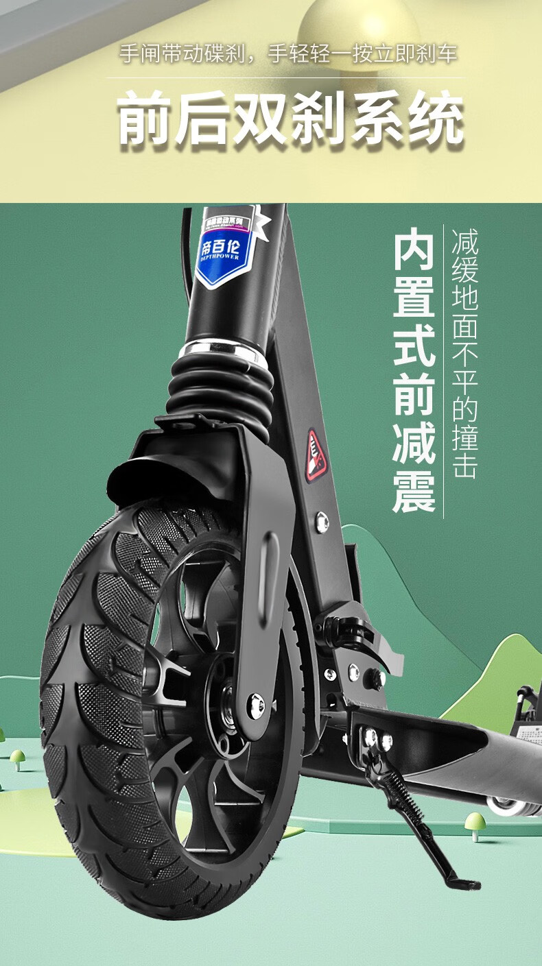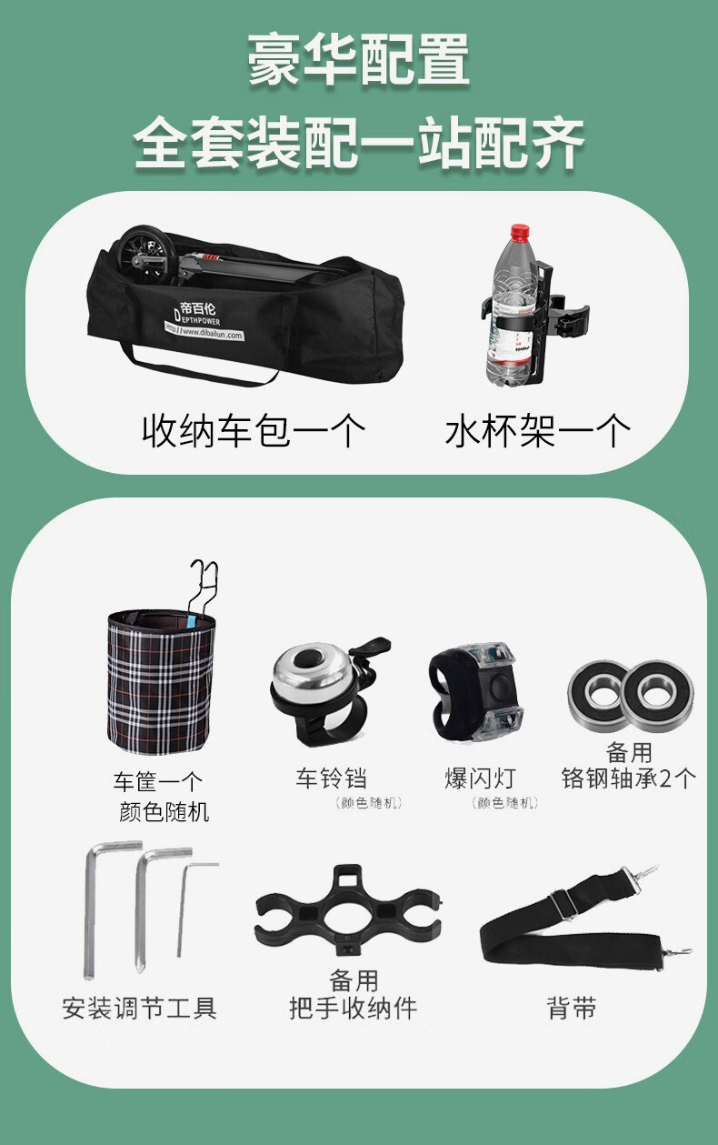 帝百伦(DEPTHPOWER)滑板车成人 代步可折叠 豪华黑【配水杯架+车筐+车包】
