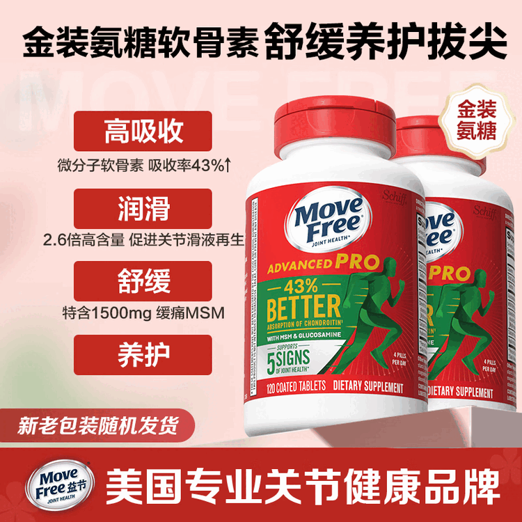旭福益节HIFFMoveFree益节氨糖软骨素钙片维骨力中老年护关节金装绿瓶