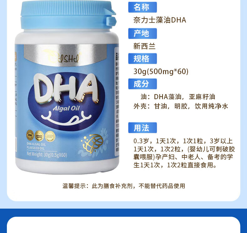 奈力士进口儿童dha青少年6-18岁学生高中生补搭脑提增强神加记孕妇忆力 【买3发4瓶】学习能力提升80%以上宝妈的选择