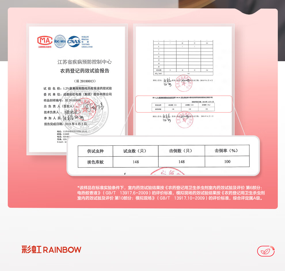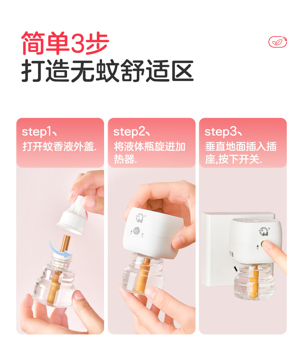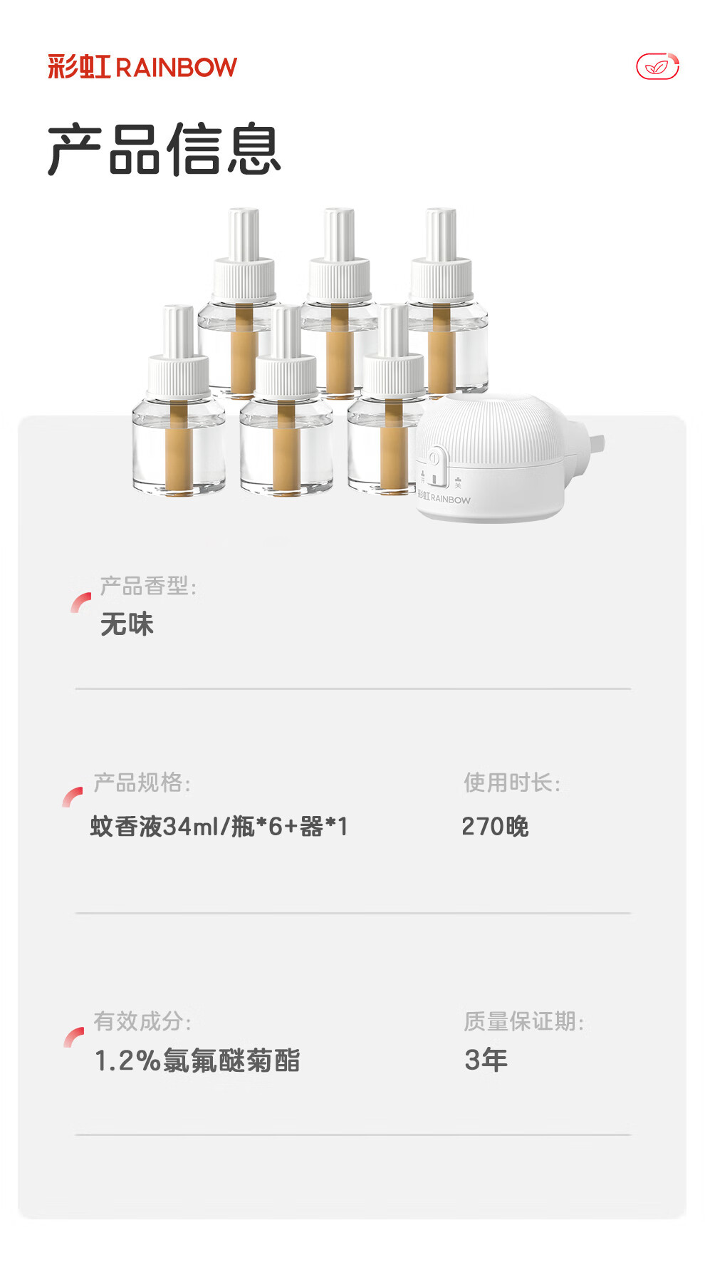 彩虹电热蚊香液驱蚊液(灭蚊液)套装无味驱蚊电蚊香液家用防蚊水通用 45ml*4瓶补充装(可用240晚)