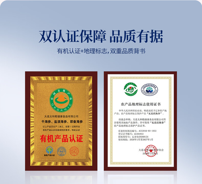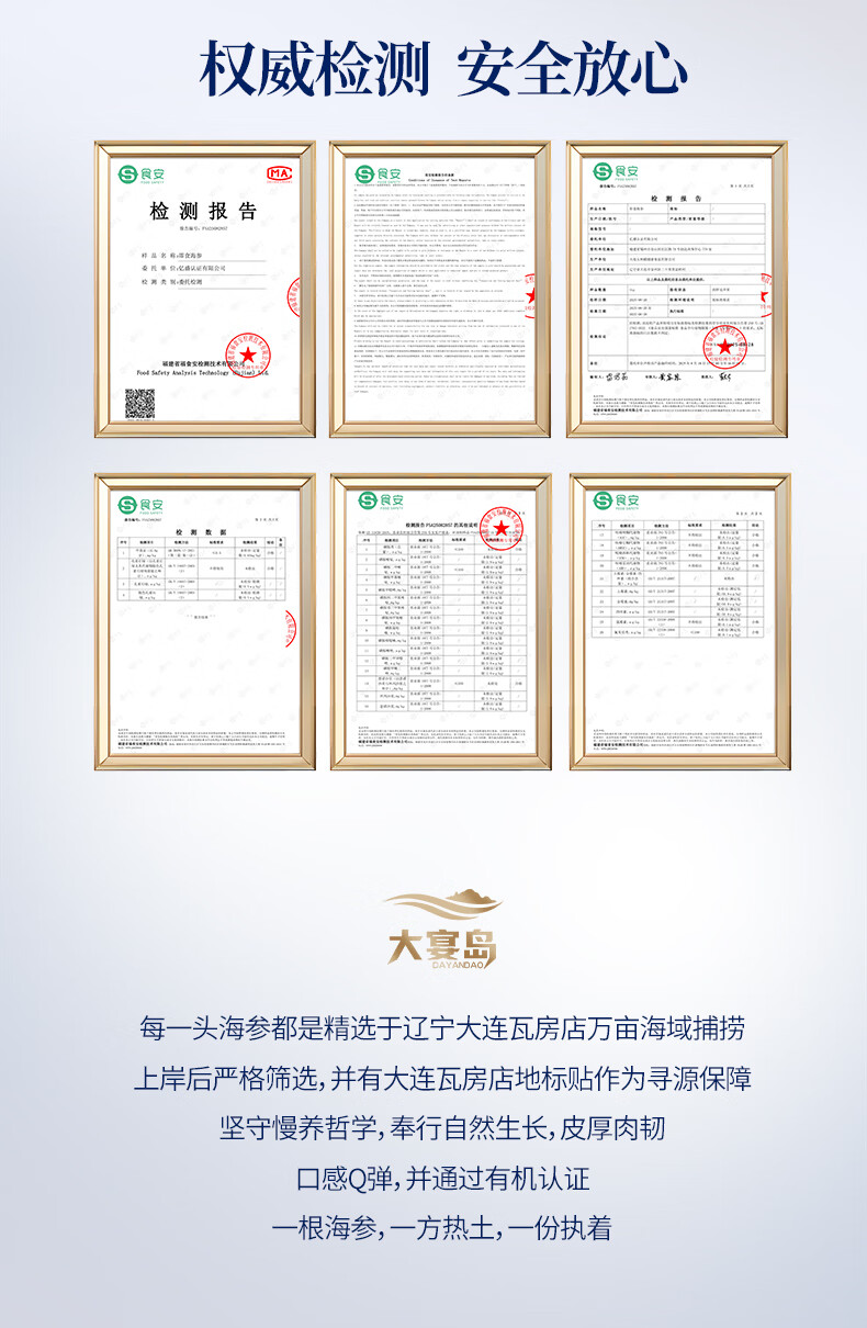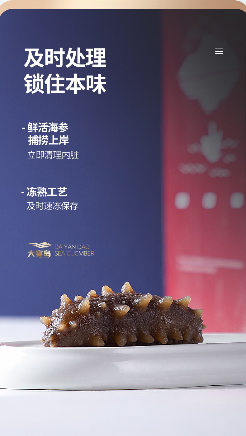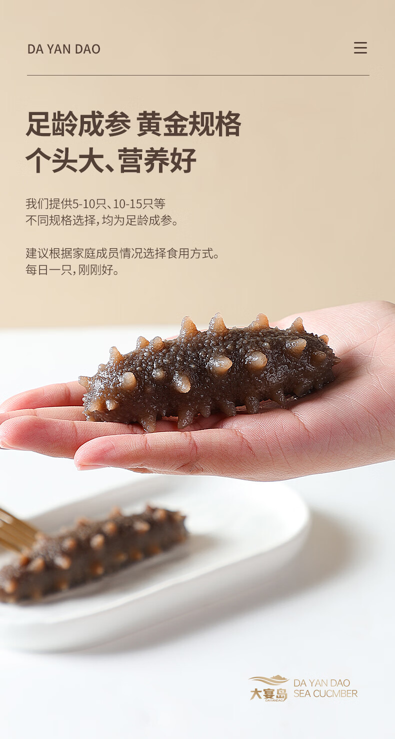 大宴岛大连有机即食海参2斤礼盒装冷冻独立包装生鲜海产滋补固形物80% 2斤/ 20-30头