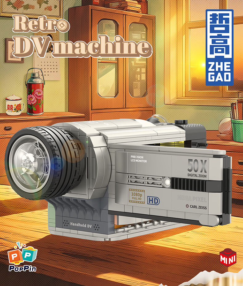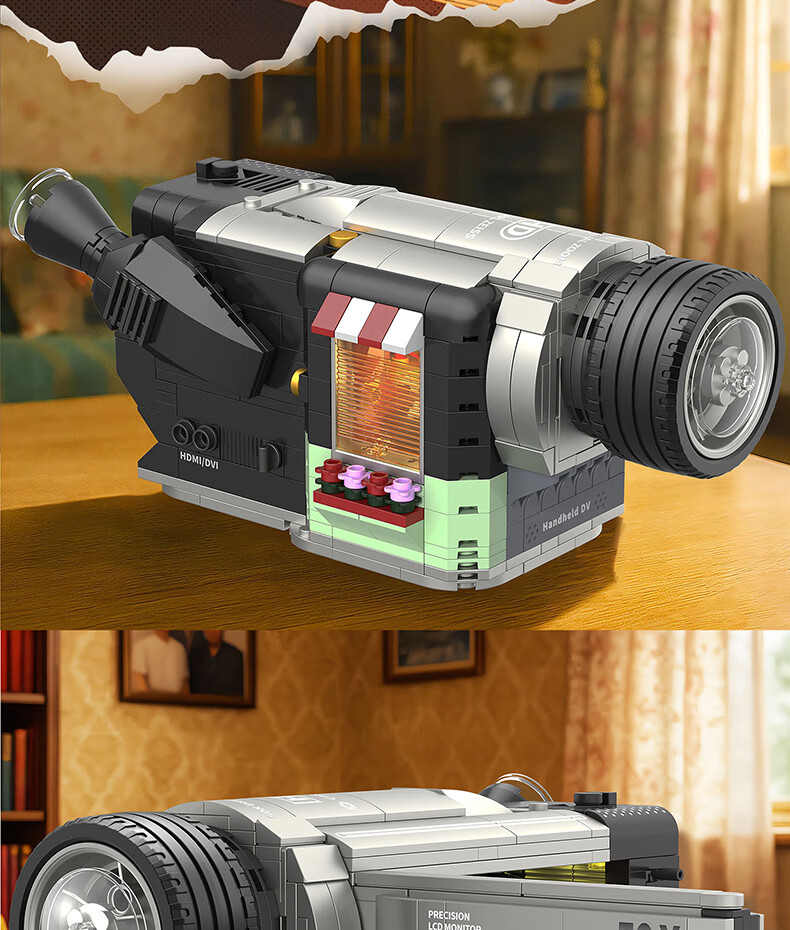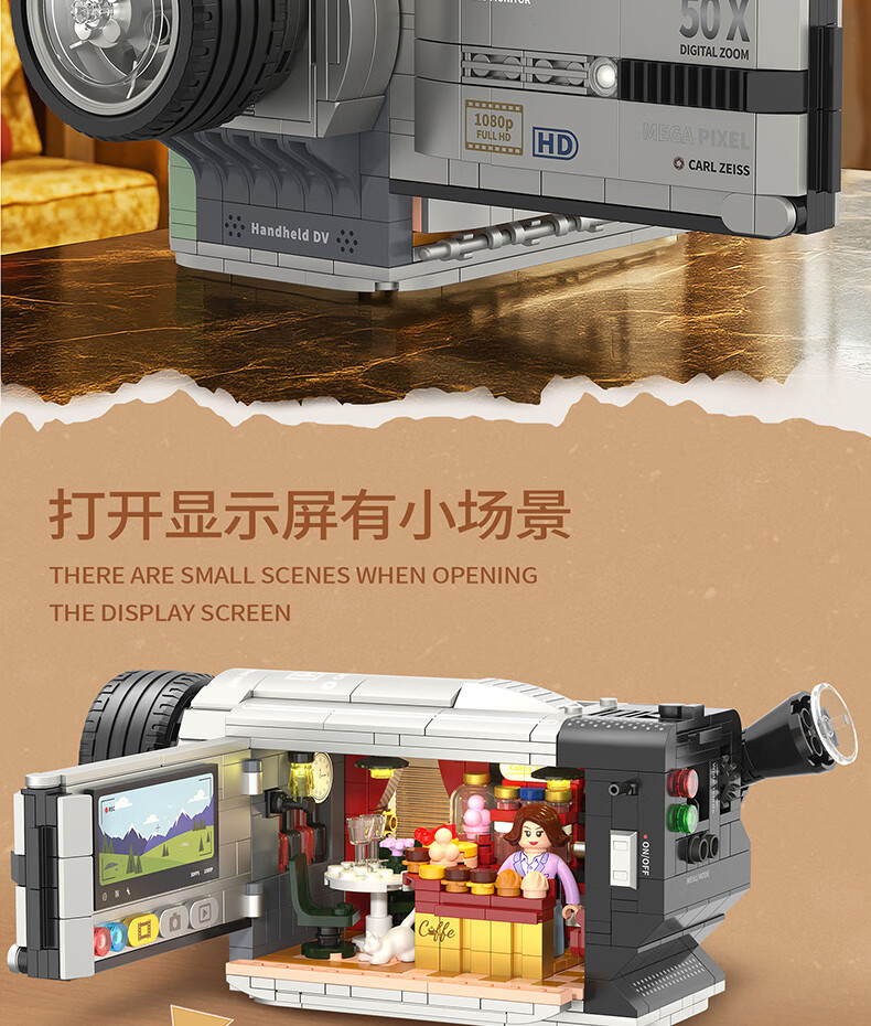 哲高潮流复古咖啡机相机放映机电话经典收藏仿真积木模型摆件礼物 662043-复古咖啡机【618颗粒】