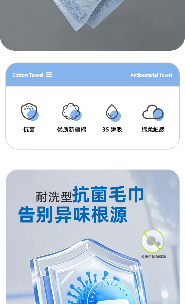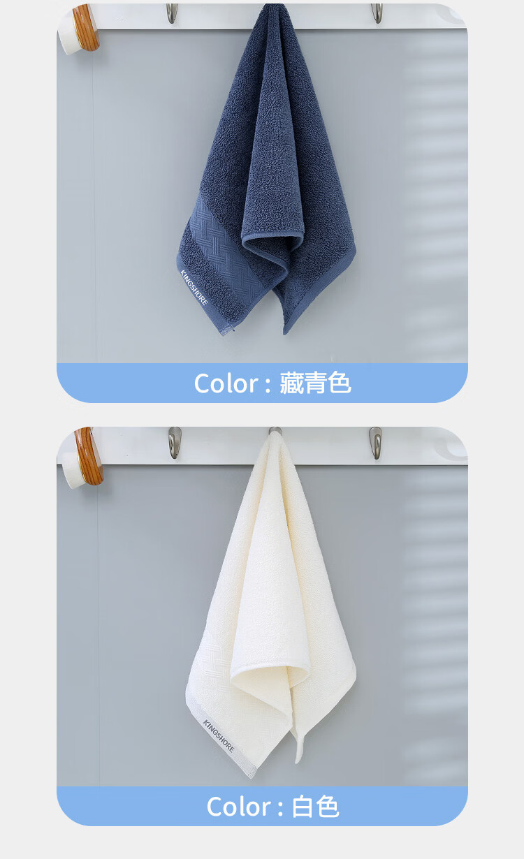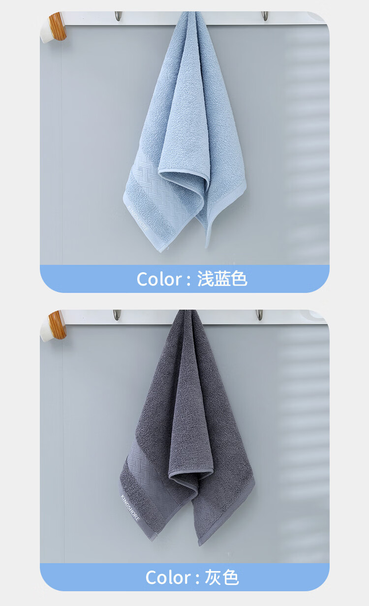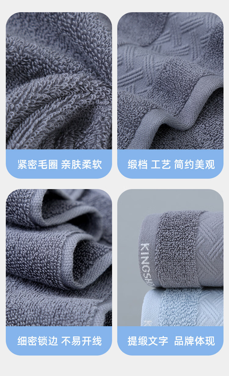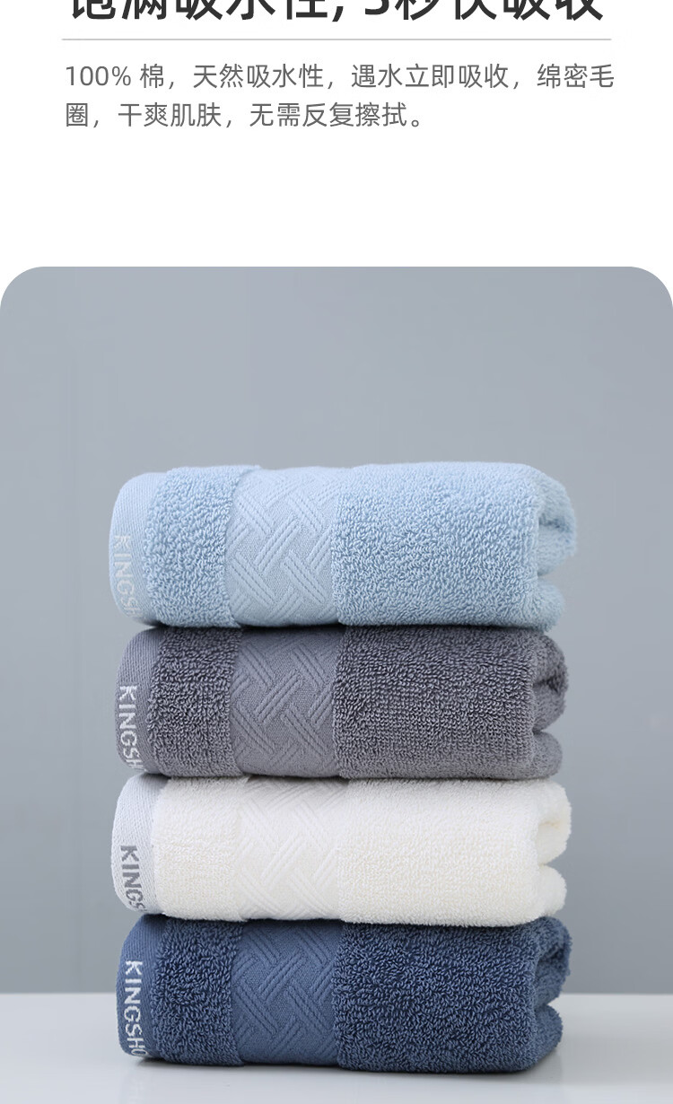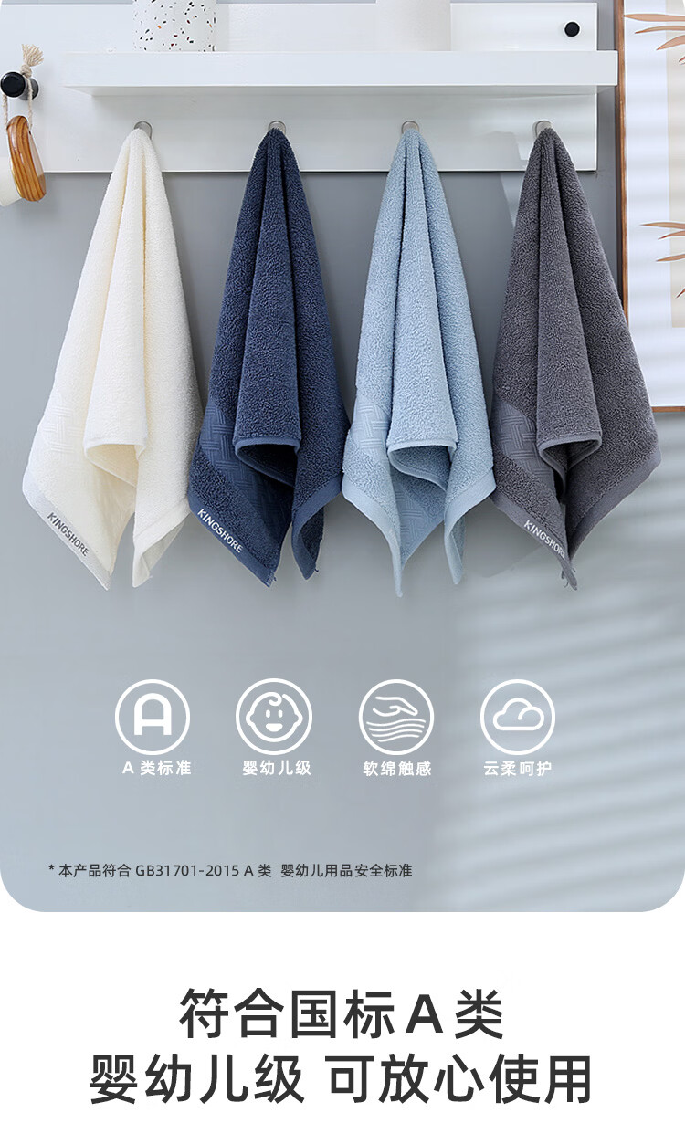 金号(KING SHORE)7A抗菌毛巾防螨抑菌柔软纯棉毛巾防臭吸水简约中巾家用洗脸巾 淡蓝+灰+白+藏蓝【抗菌】 4条