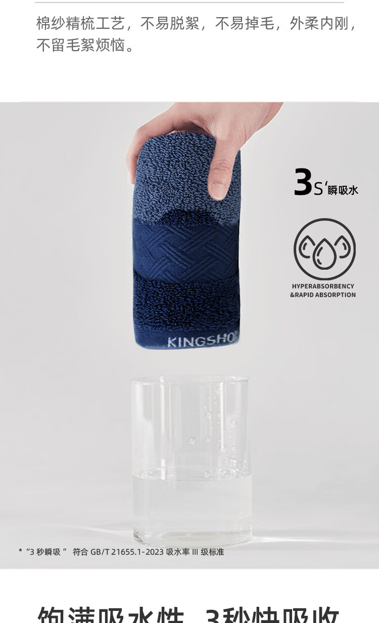 金号(KING SHORE)7A抗菌毛巾防螨抑菌柔软纯棉毛巾防臭吸水简约中巾家用洗脸巾 藏蓝+白+灰【抗菌】 3条