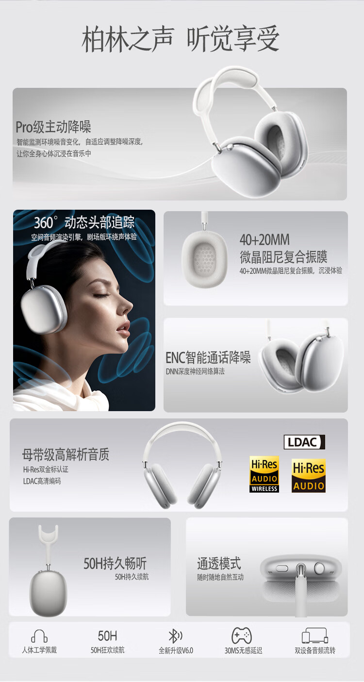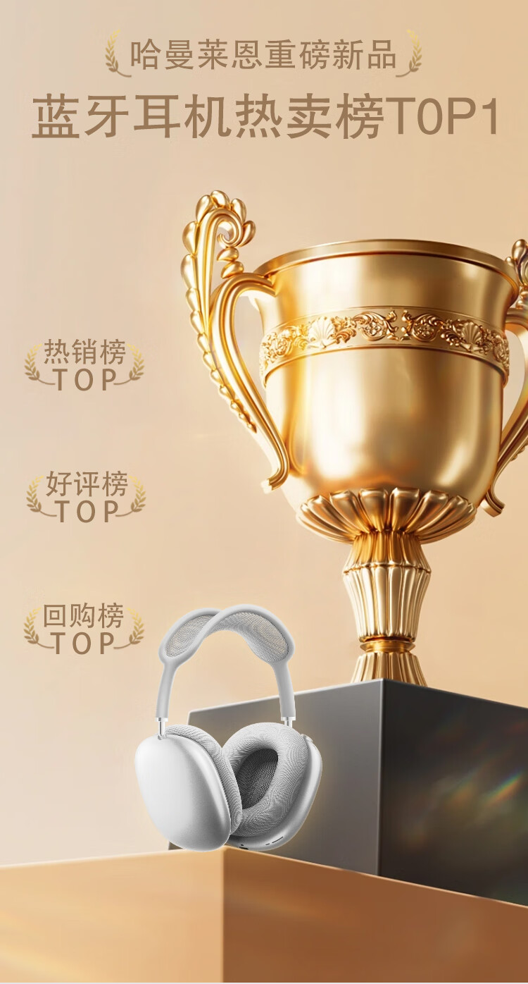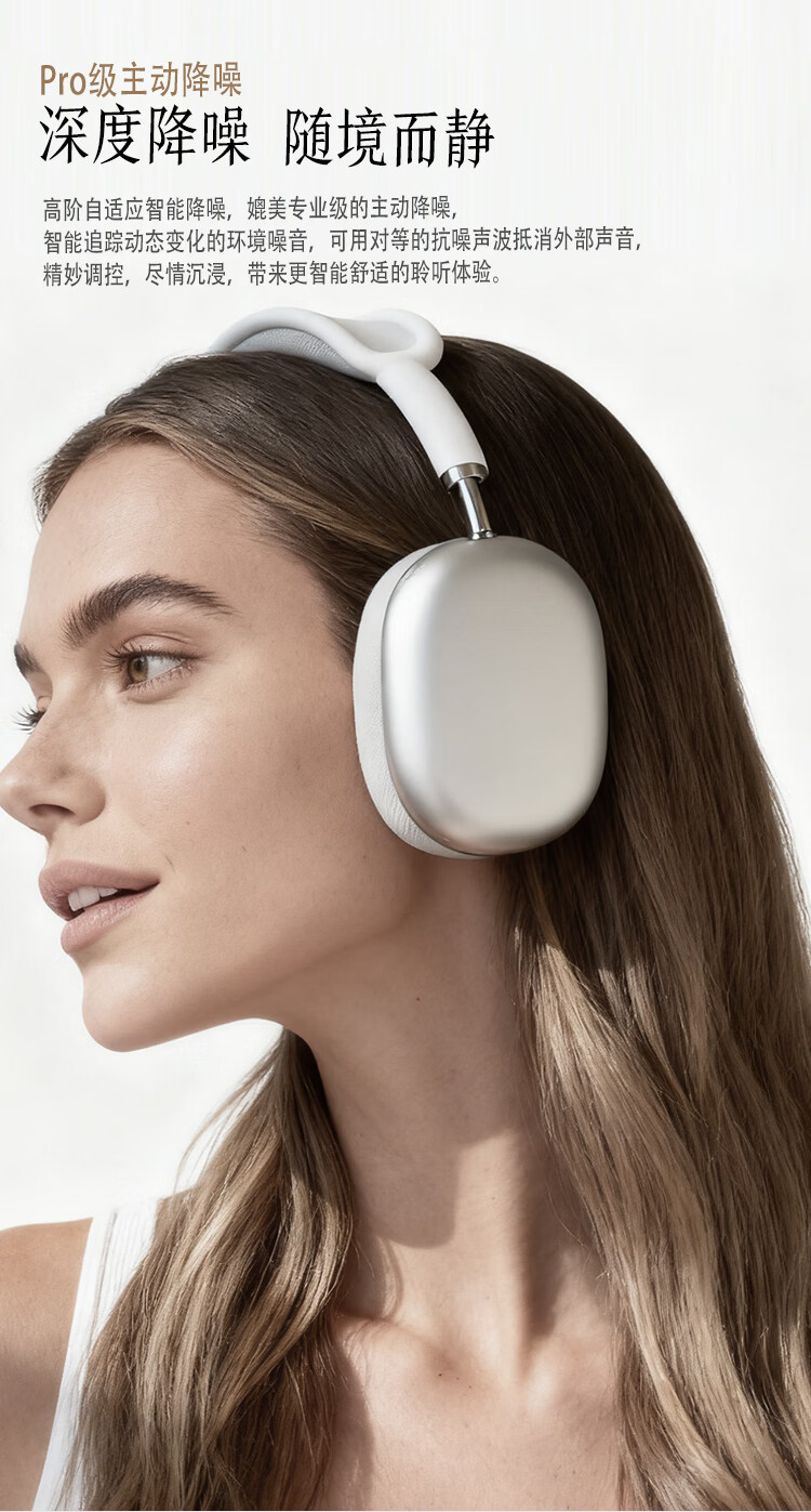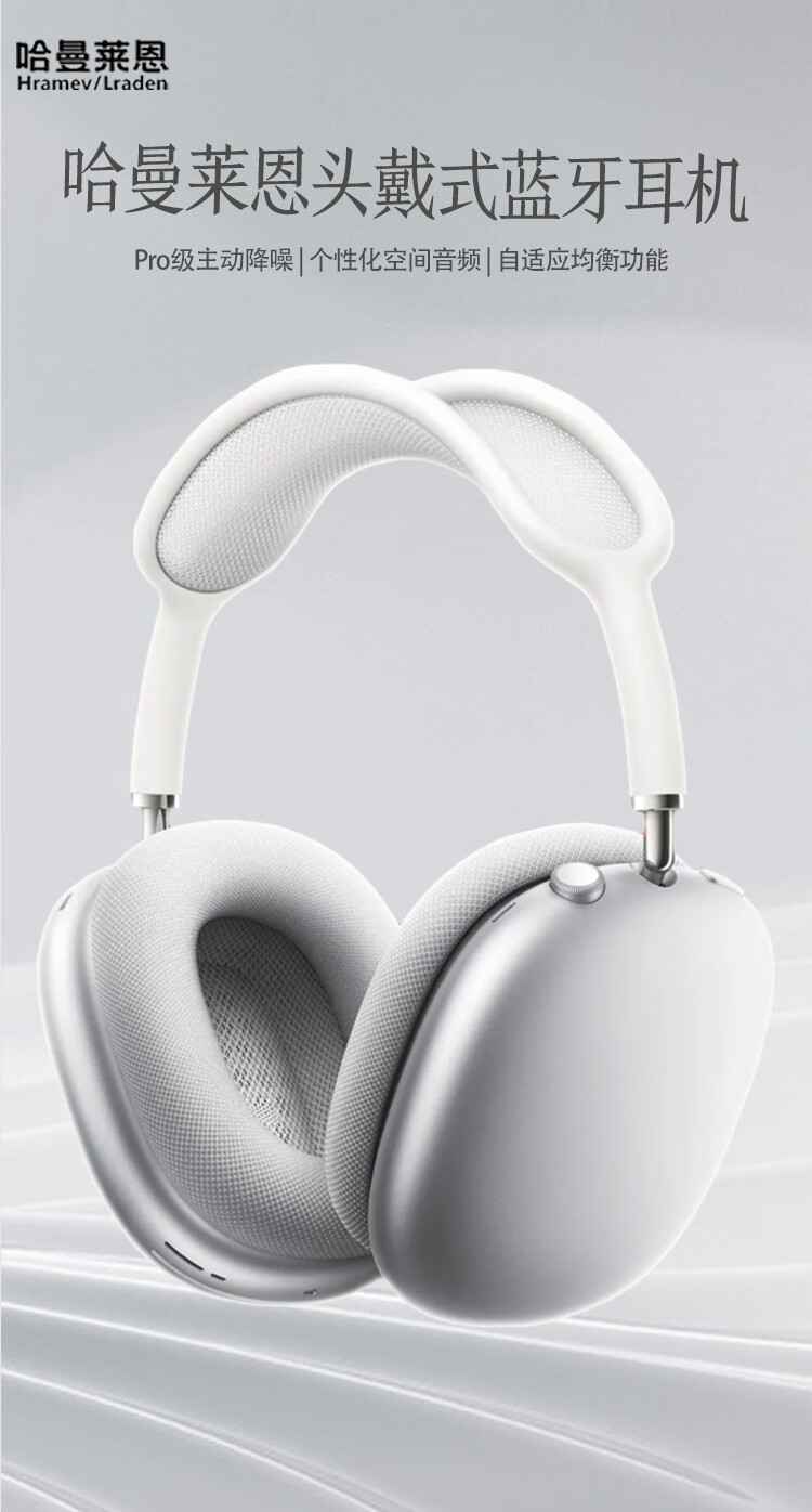 哈曼莱恩 HRAMEV/LRADEN哈曼柏林之声头戴式MAX3无线蓝牙耳机2025新款主动降噪超长续航适配苹果安卓智能设备 银白色 HRAMEV/LRADEN-MAX3 顶配版
