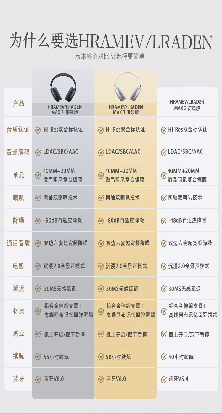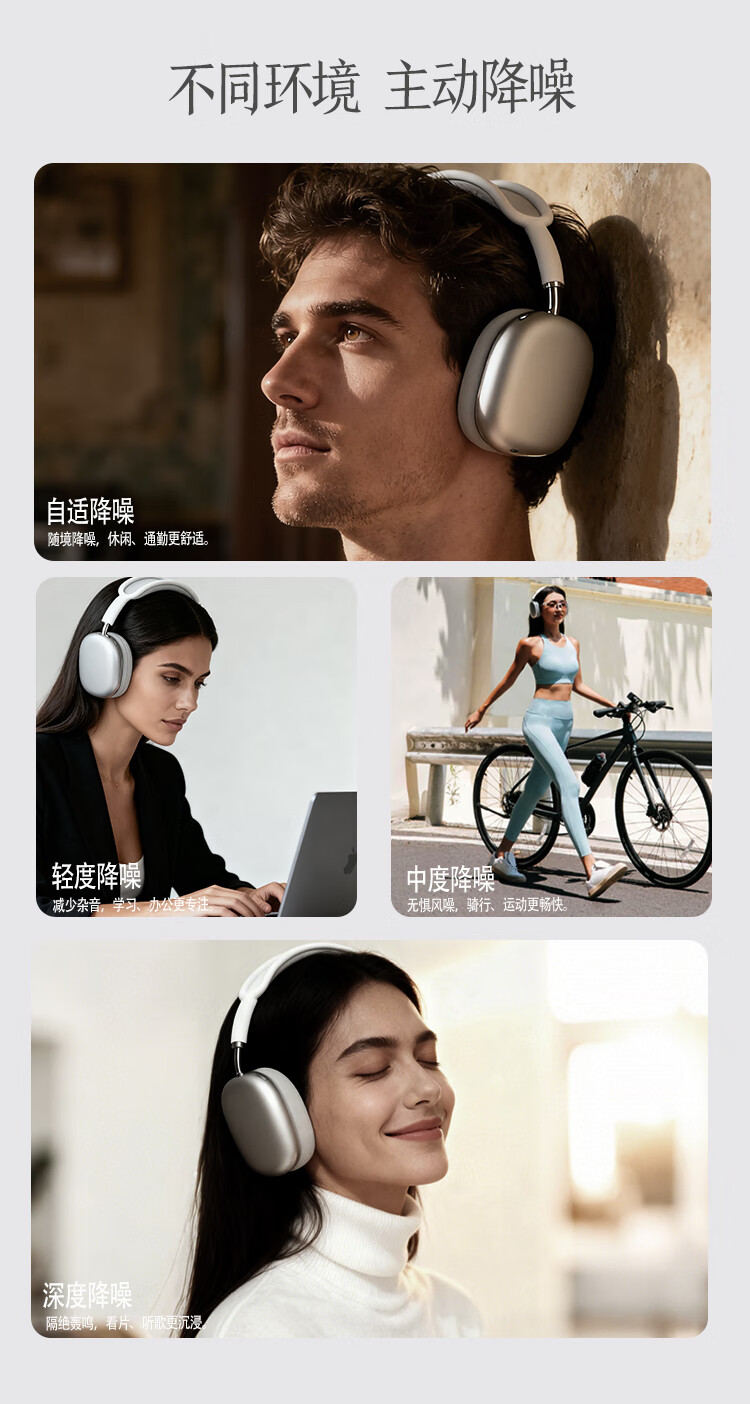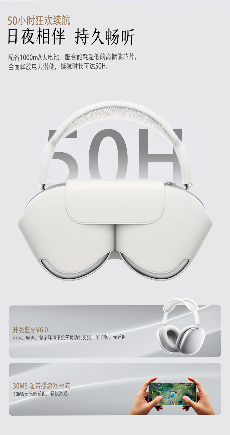 哈曼莱恩 HRAMEV/LRADEN哈曼柏林之声头戴式MAX3无线蓝牙耳机2025新款主动降噪超长续航适配苹果安卓智能设备 银白色 HRAMEV/LRADEN-MAX3 顶配版