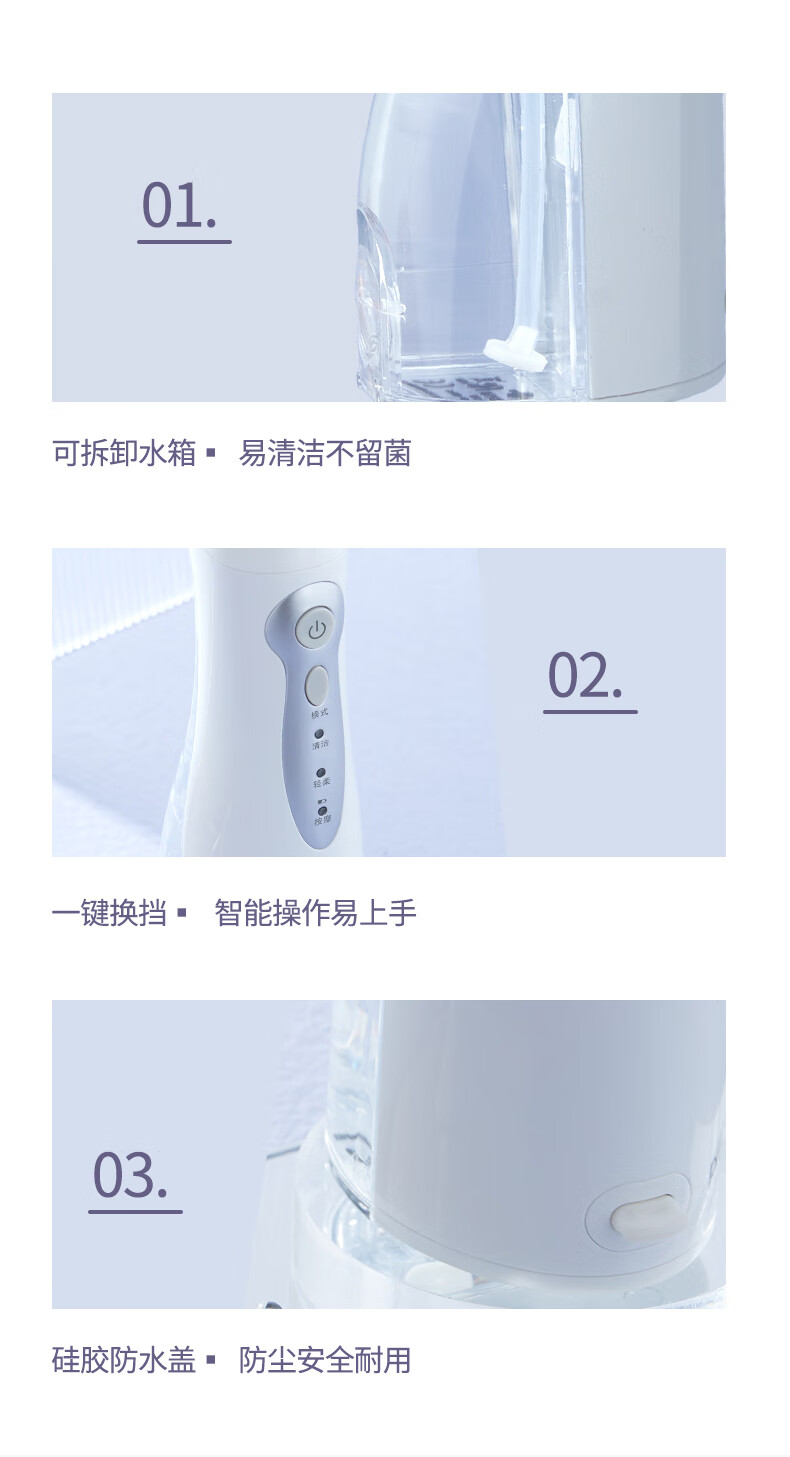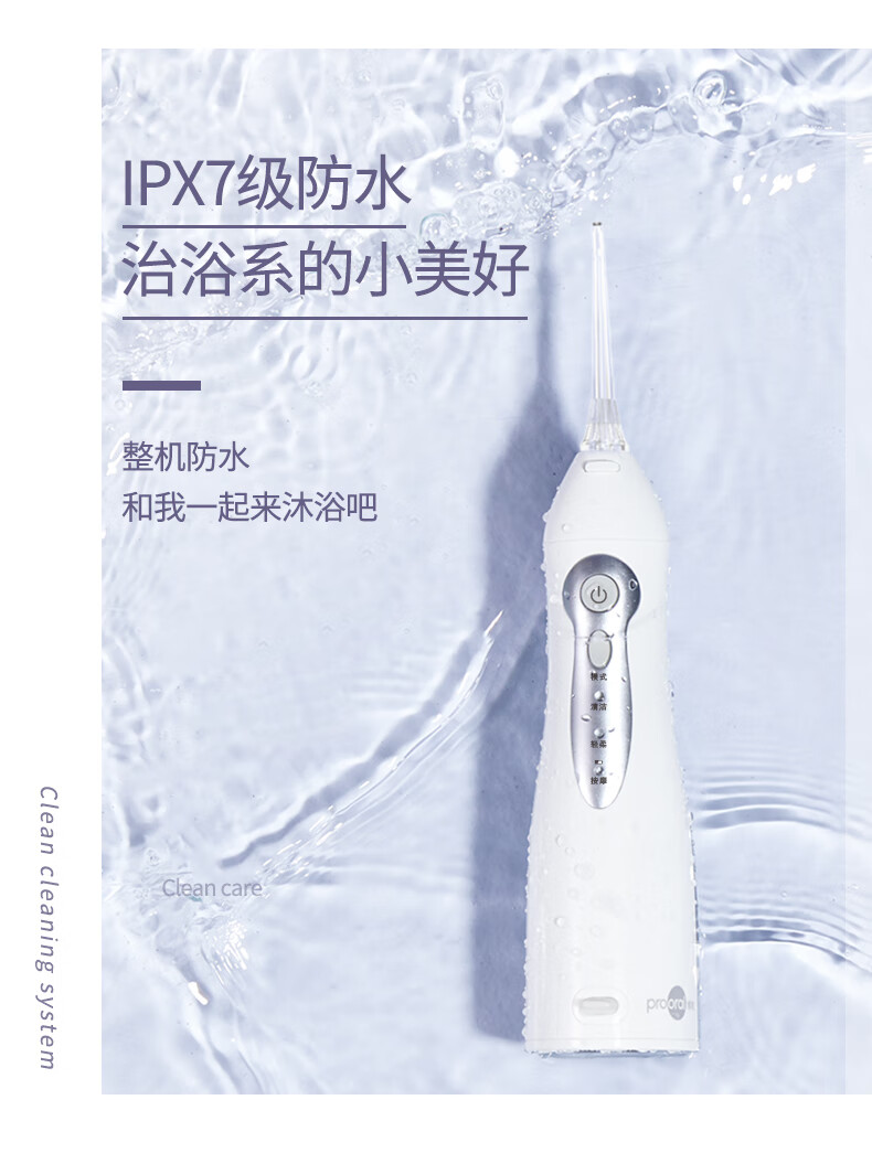 博皓(prooral)电动冲牙器便携式洗牙器家用水牙线冲洗器牙齿清洁器正畸口腔护理牙缝洁牙器去牙垢牙结石实用礼物 F38 白色| 300ML大水箱