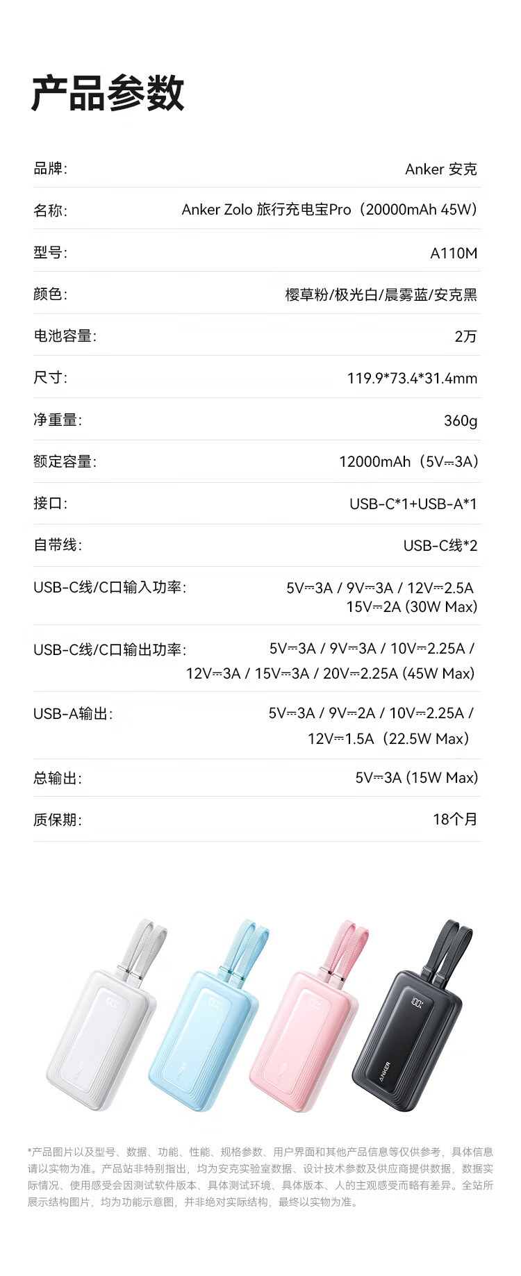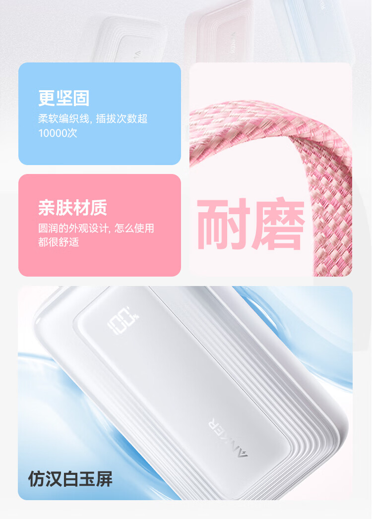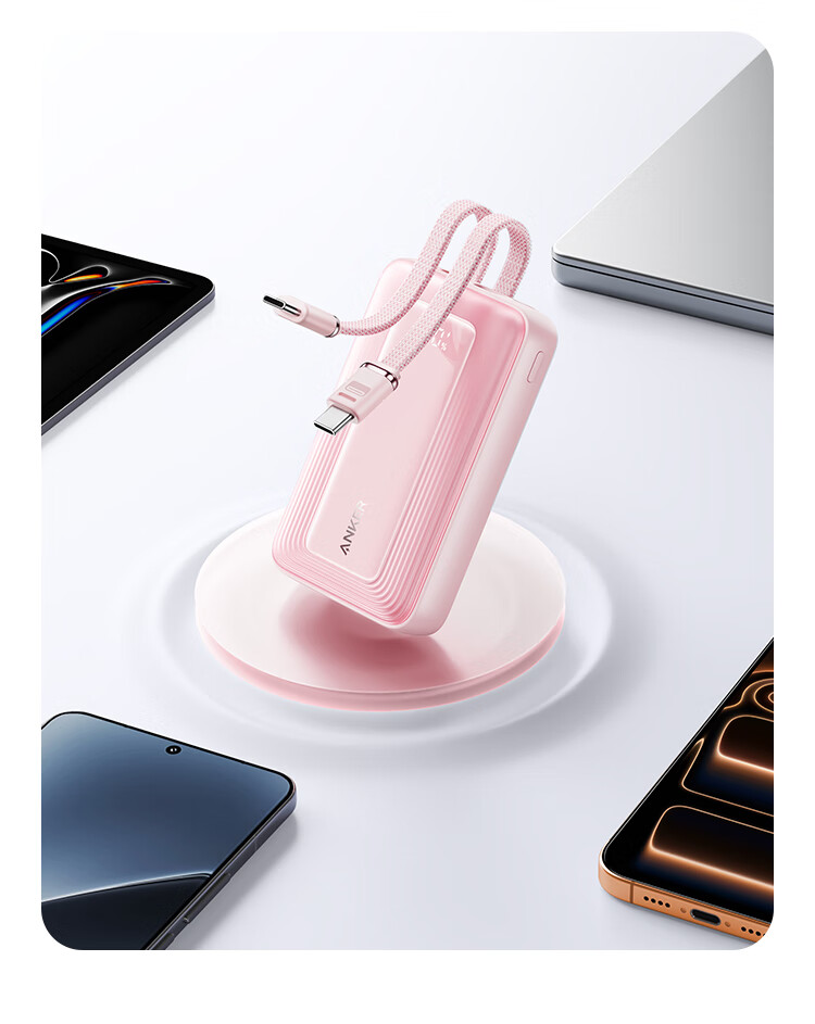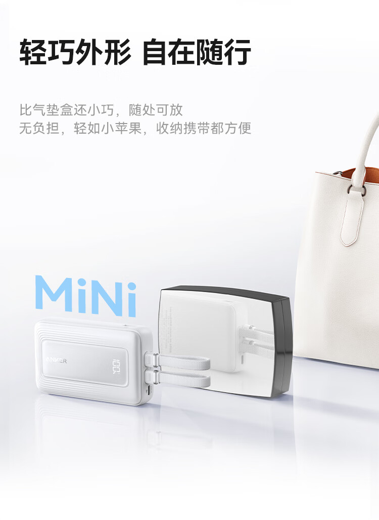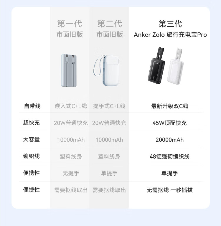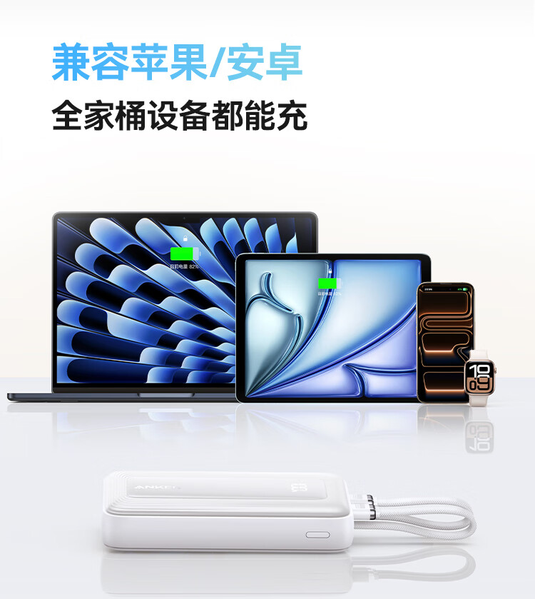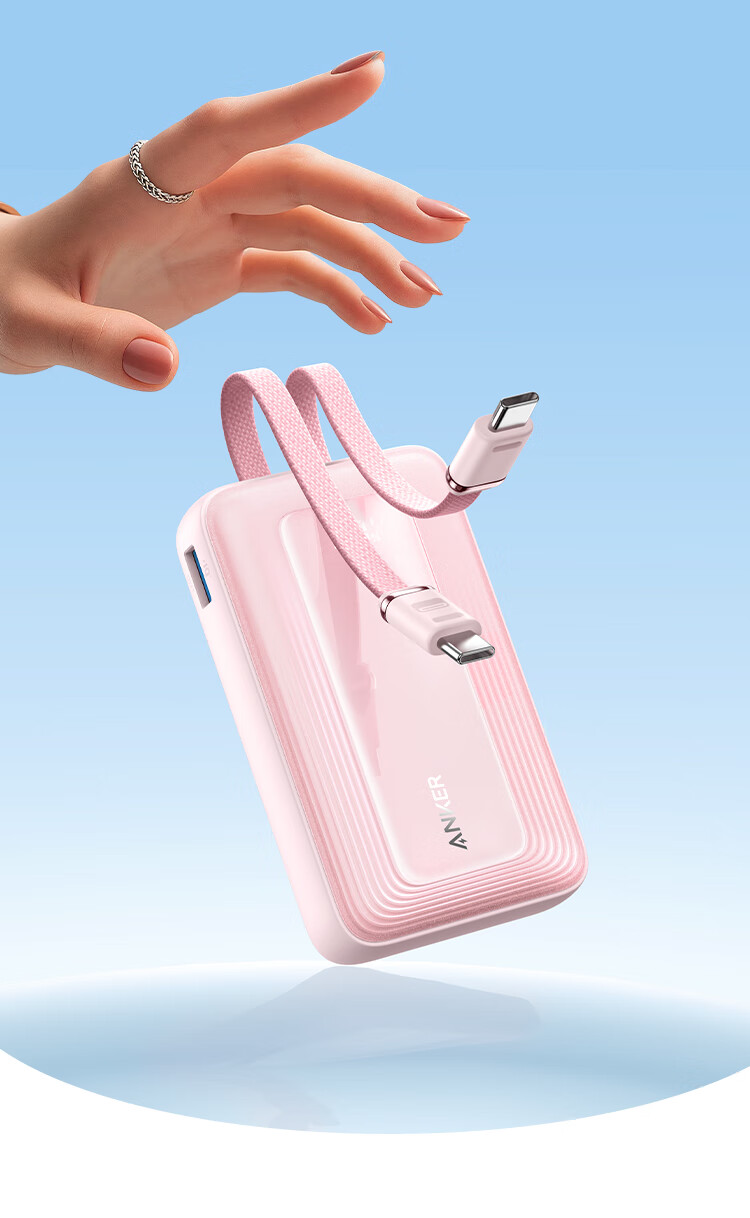 ANKER 安克【3C认证可上飞机】旅行充电宝自带双c线45W20000毫安mAh大容量超快充移动电源安卓苹果 蓝