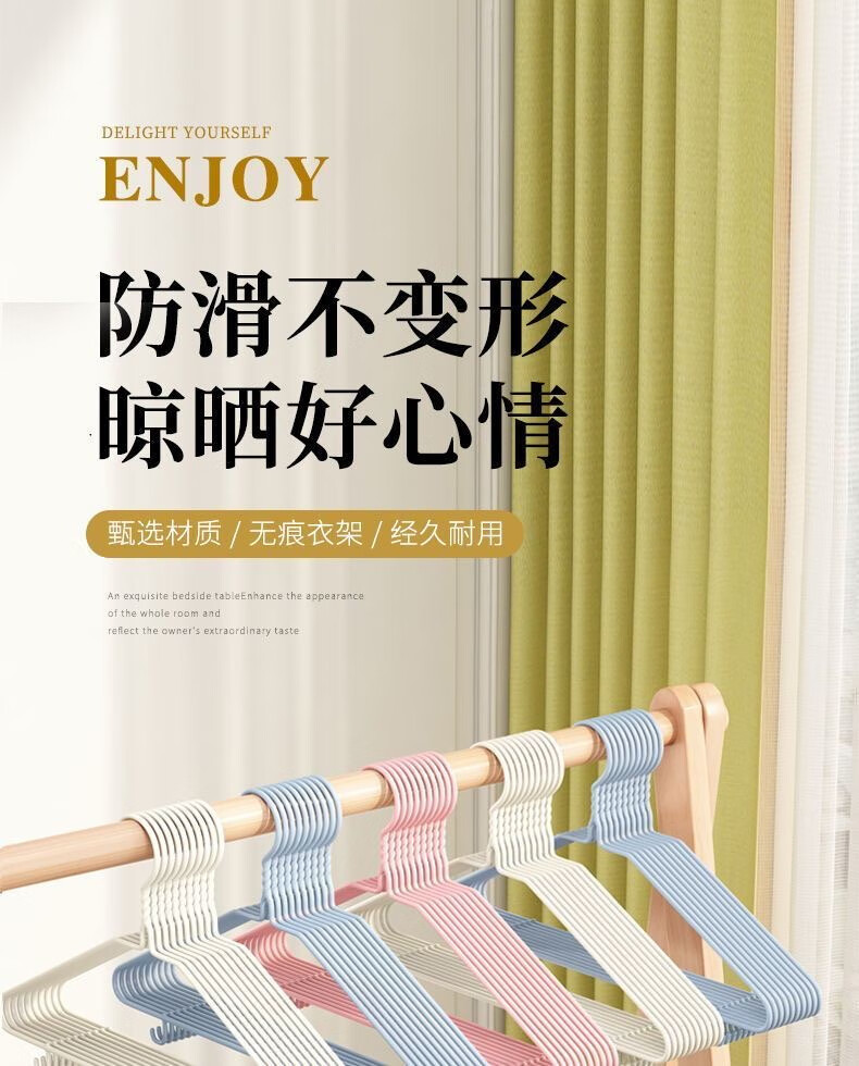 衣架成人加粗防滑加厚学生宿舍无痕挂衣架家用衣服晾衣架撑子衣挂 43cm加粗凹槽(四季款) 5支装(颜色随机)