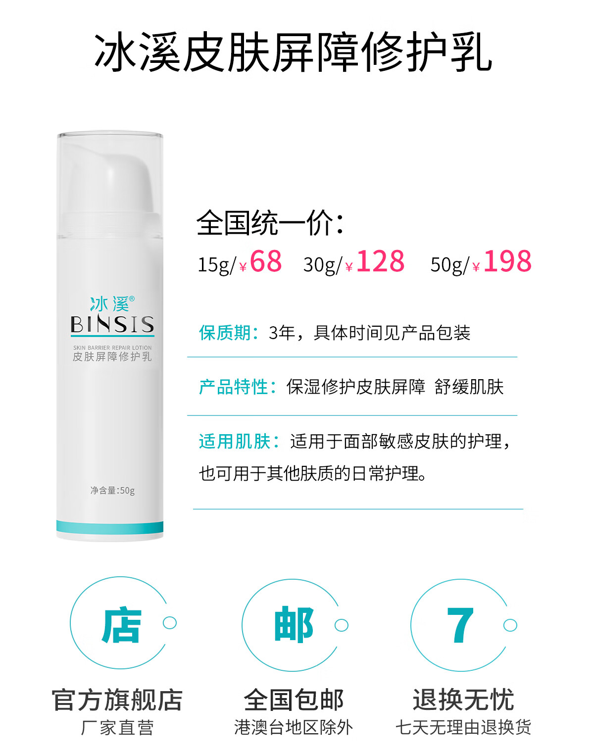 冰溪皮肤屏障修护乳舒缓不刺激修护敏感肌肤补水保湿乳液面霜护肤品 50g