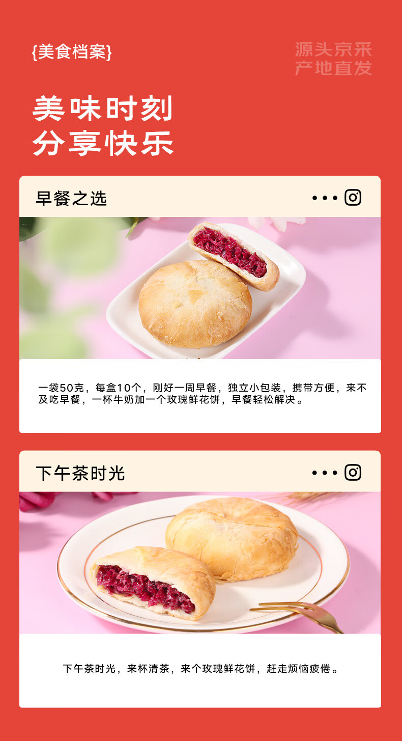 潘祥记 手工现烤玫瑰鲜花饼 云南特产糕点零食下午茶 50g*10枚 源头直发