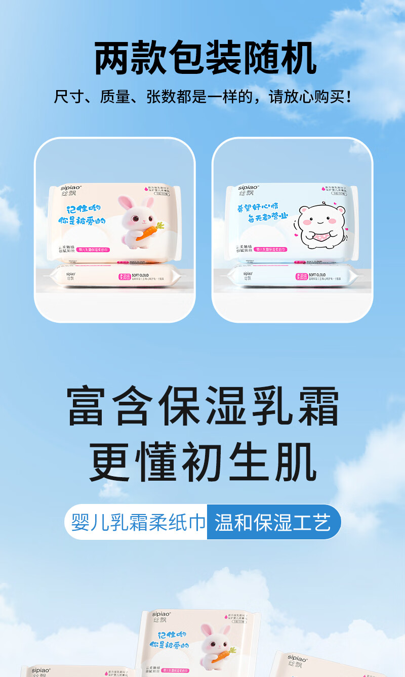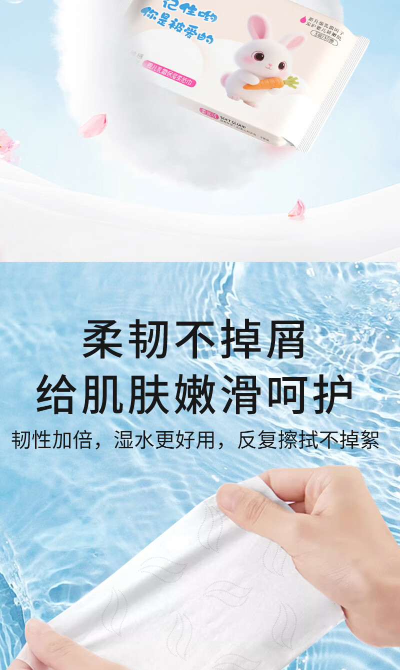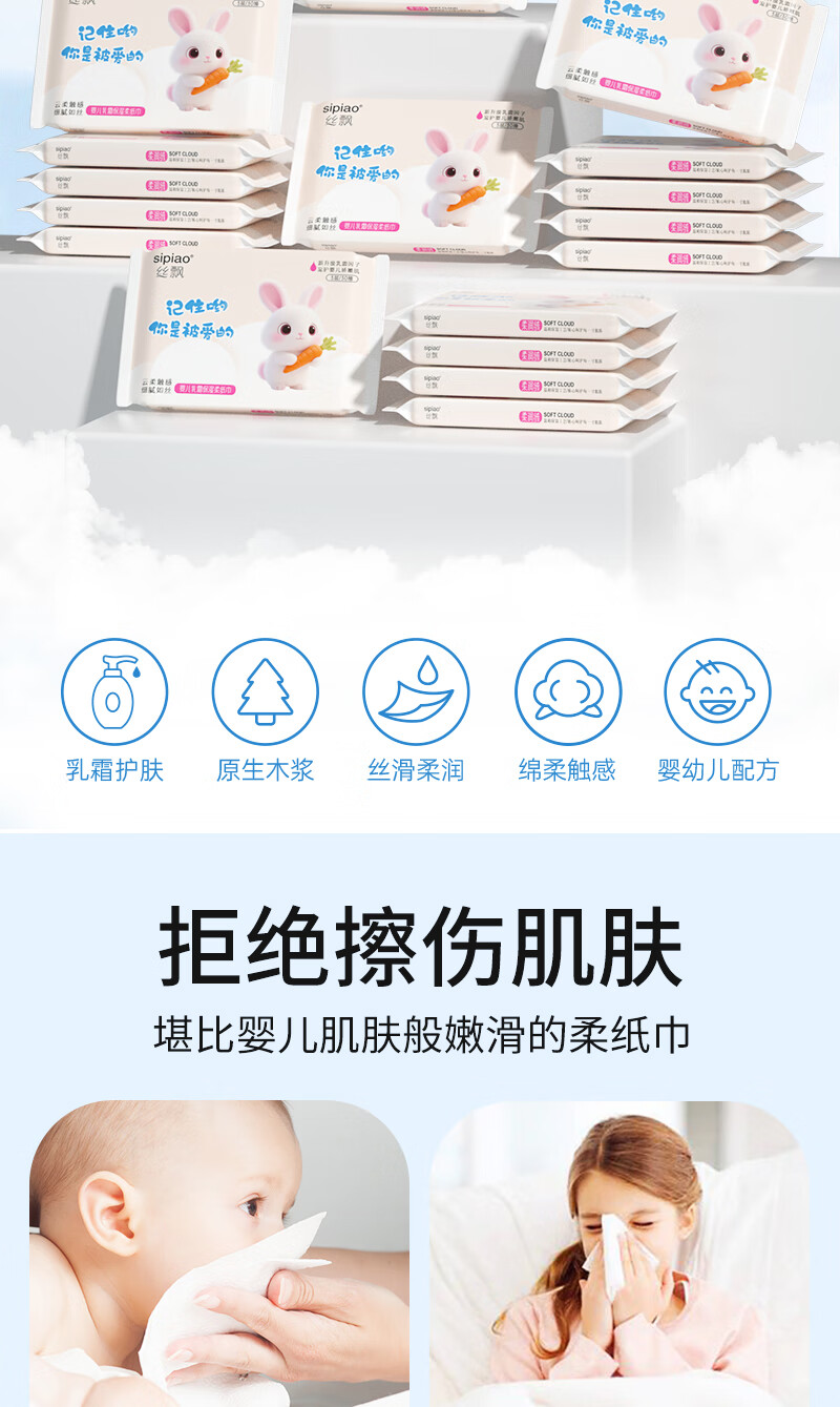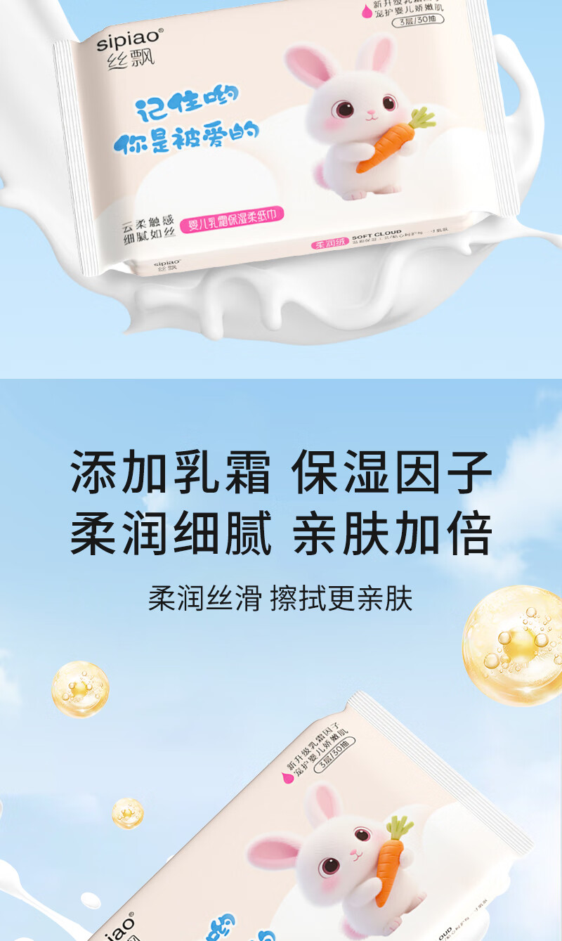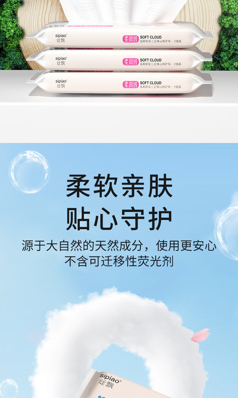 丝飘婴儿云柔纸巾乳霜纸柔润保湿3层宝宝专用抽纸亲肤面巾便携家用 母婴保湿纸乳霜纸 3层 30抽*3包