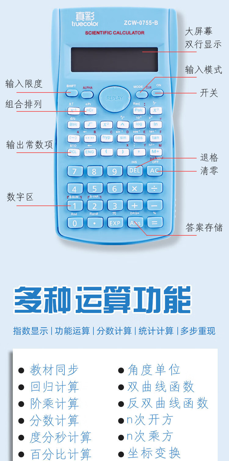 真彩(TRUECOLOR)科学计算器考试学生专用大学生会计函数电子计算机小学四年级注会金融财管上册数学财务多功能cpa 少女粉