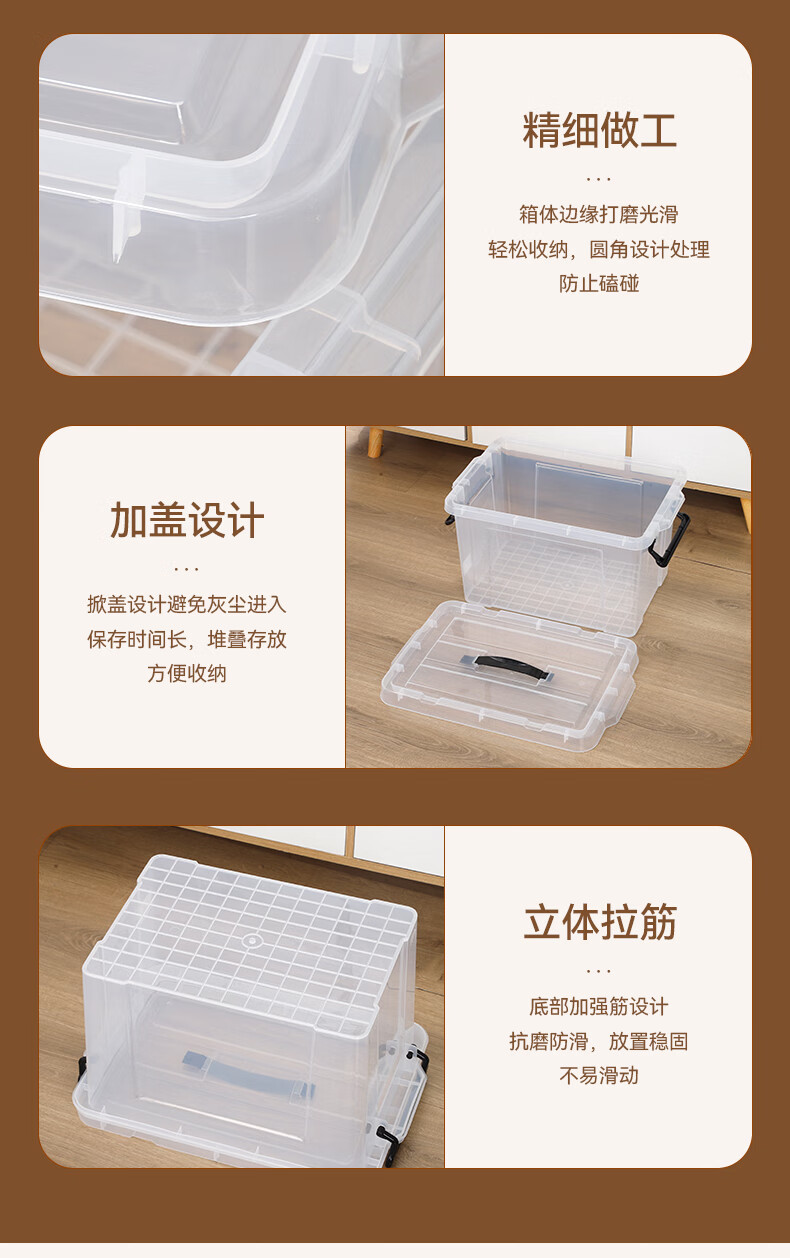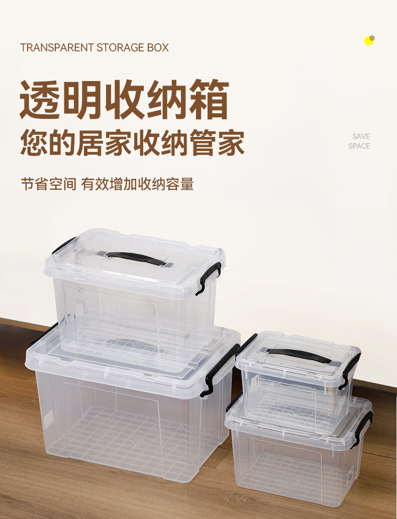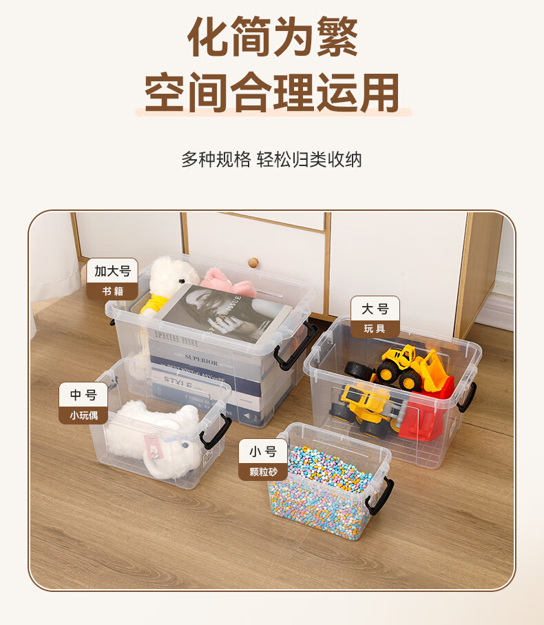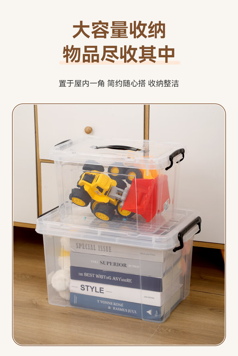 京东物流 塑料衣物收纳整理箱塑料储物箱全透明玩具医药箱收纳箱 加大号-加厚高透 43*29*25cm