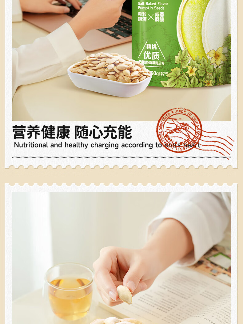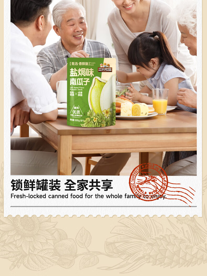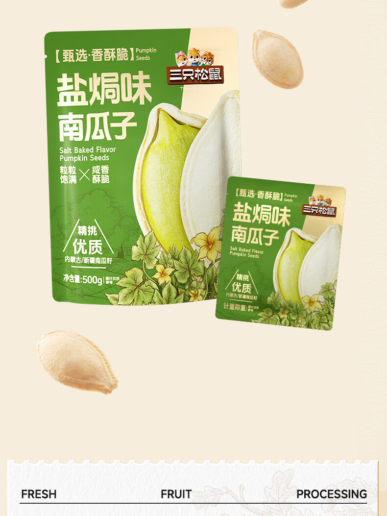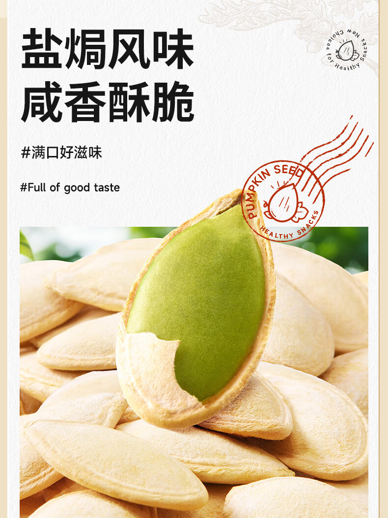 三只松鼠盐焗味南瓜子500g/袋 新疆内蒙南瓜籽炒货独立小包装新年年货零食
