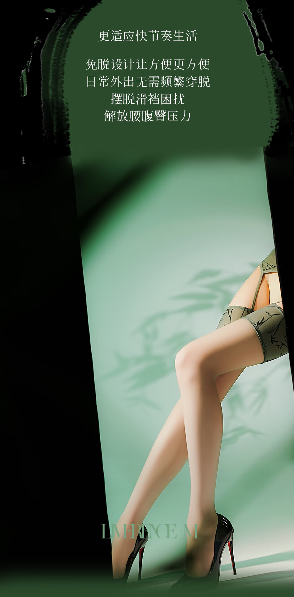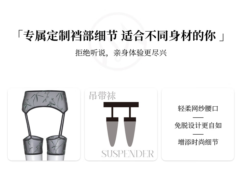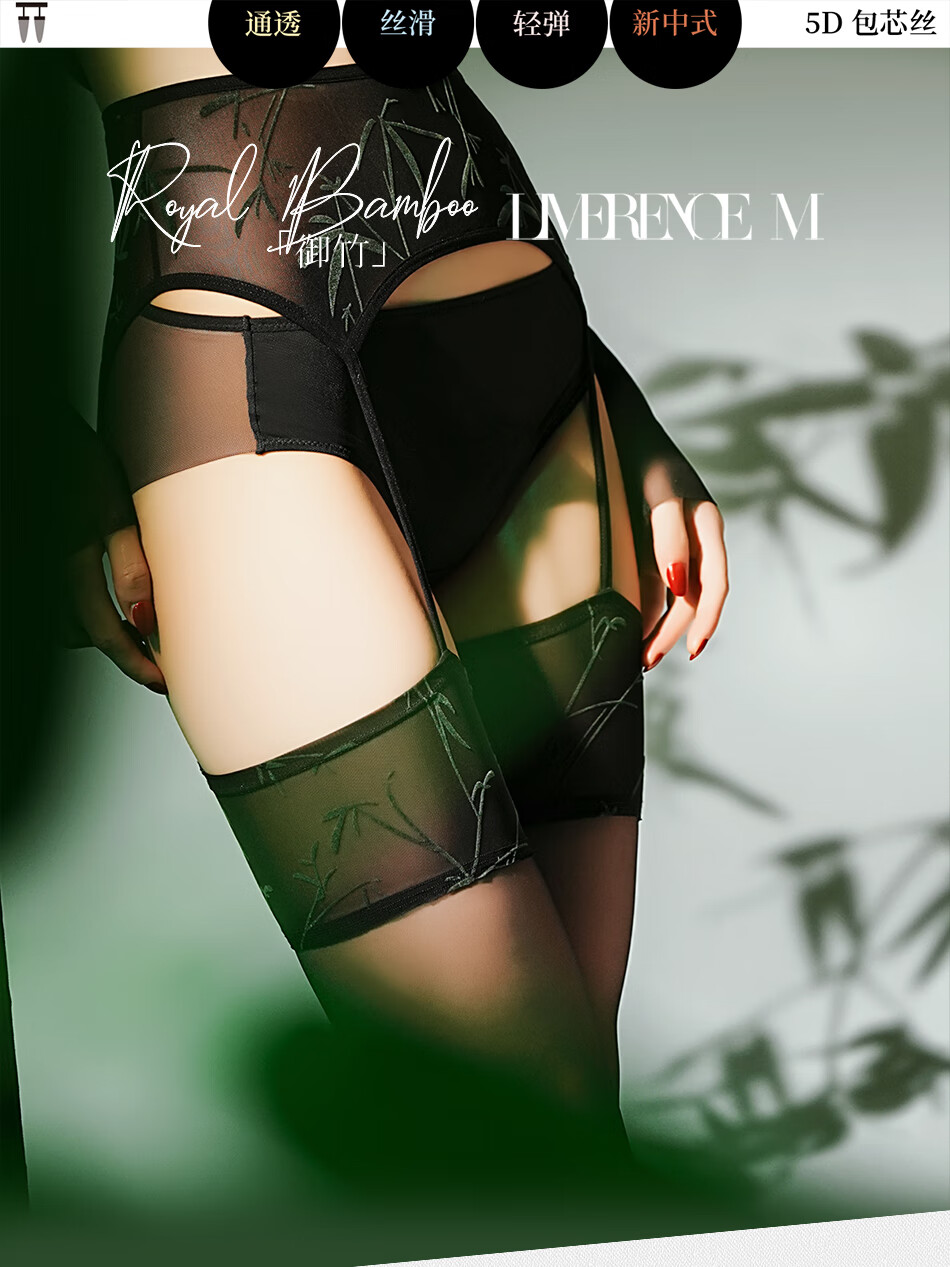 涞觅「御竹」四面开裆吊带袜新中式免脱性感情趣黑丝袜 竹青 均码