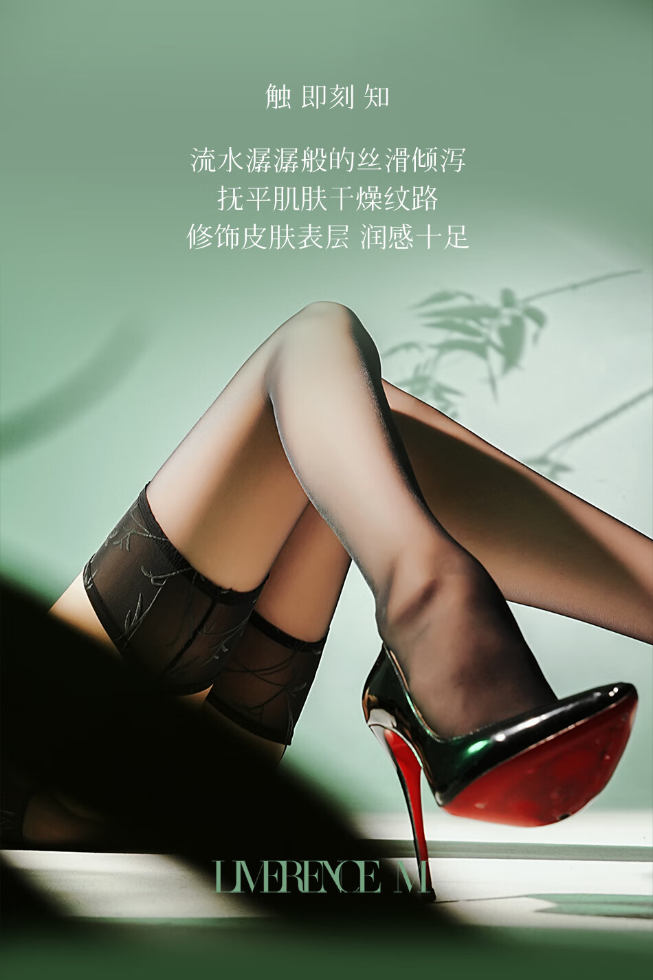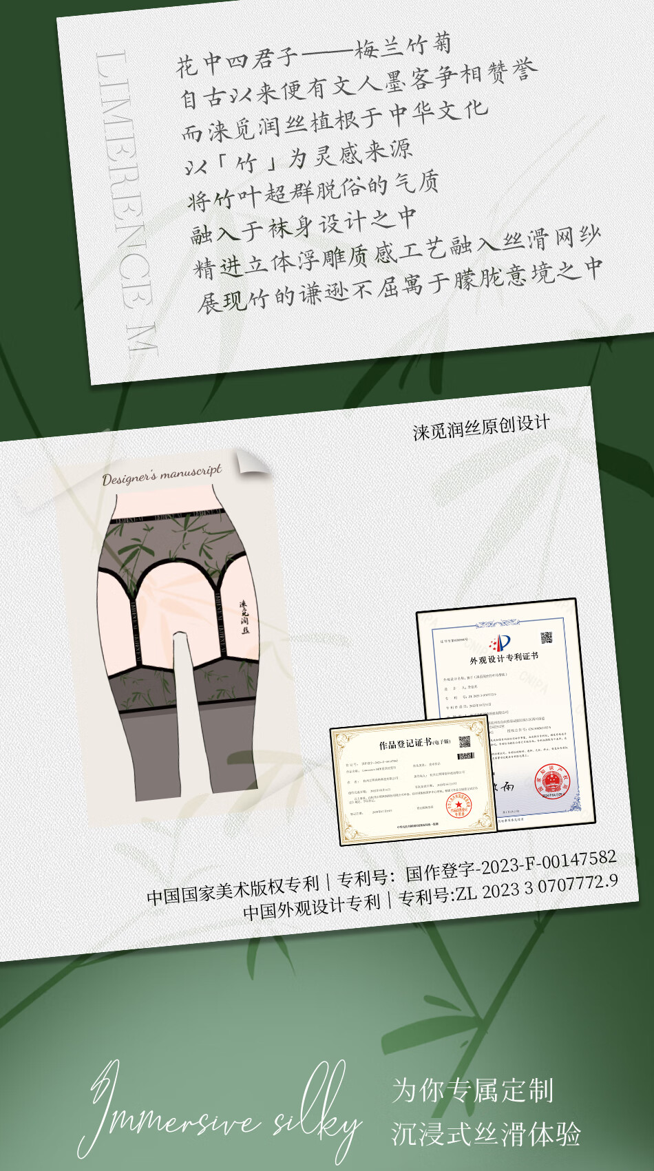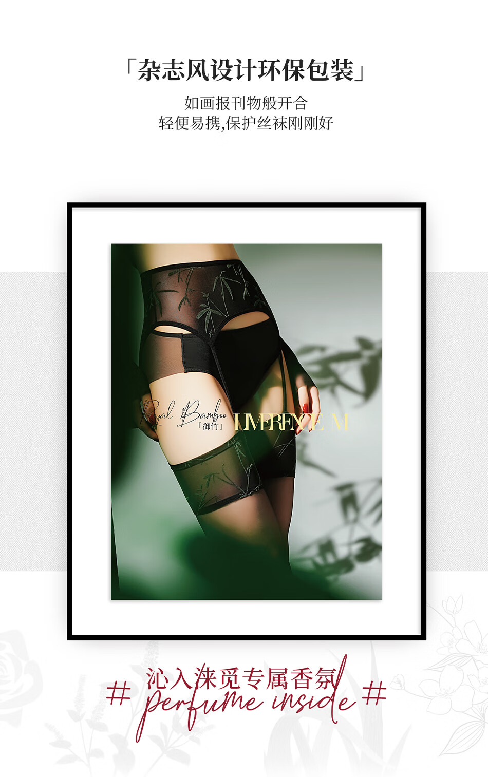 涞觅「御竹」四面开裆吊带袜新中式免脱性感情趣黑丝袜 竹青 均码
