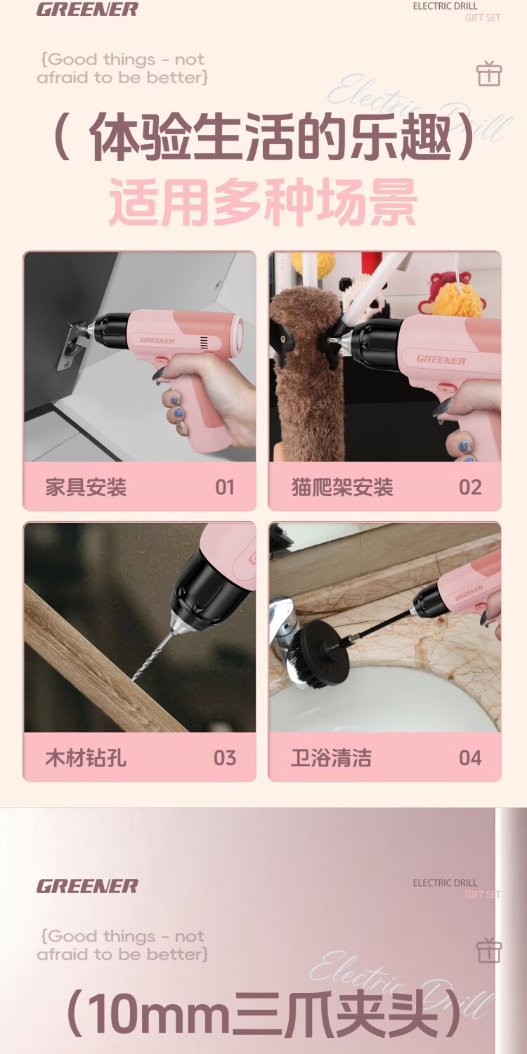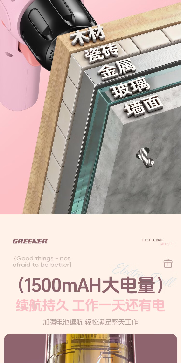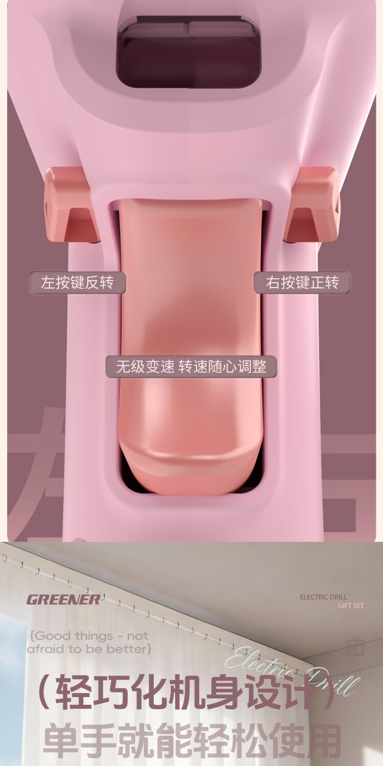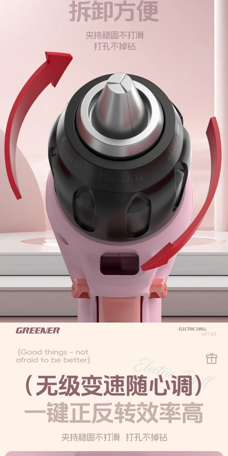 绿林电钻小粉钻手电钻女生粉家用小型手枪钻锂电充电多功能拧螺丝 44件粉钻礼盒-女神专属&搞定拆装